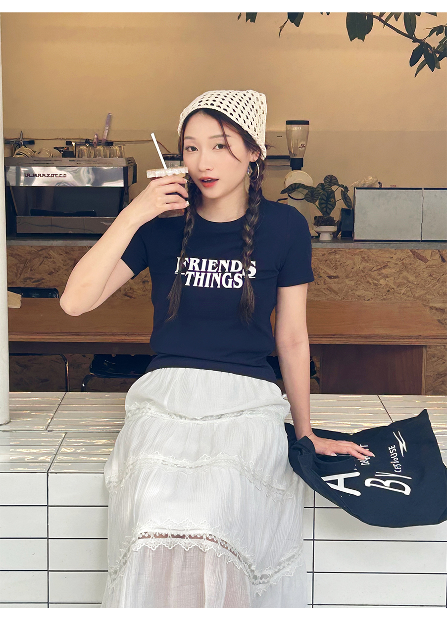 P&X设计师2025夏季修身显瘦正肩训练辣妹风T恤825202229 蓝色