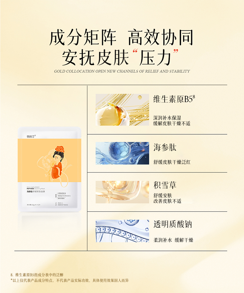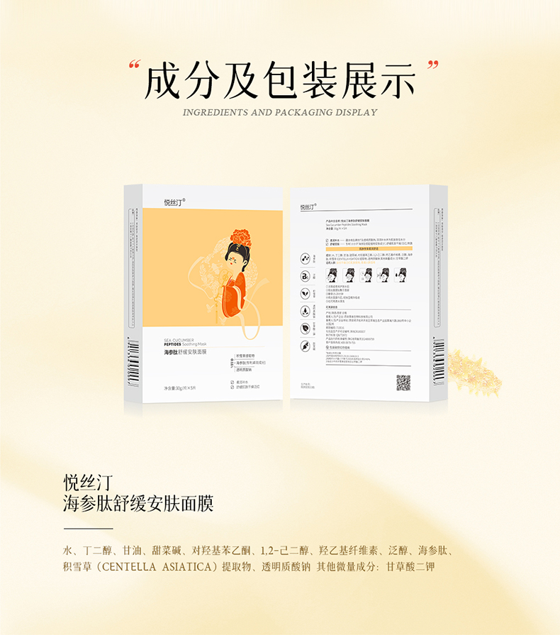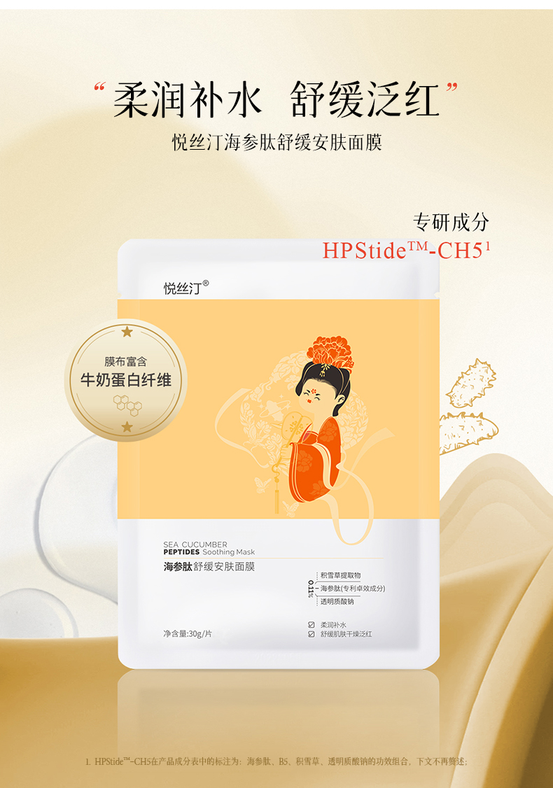 悦丝汀 海参肽舒缓安肤面膜深润补水保湿改善干燥泛红5片/盒