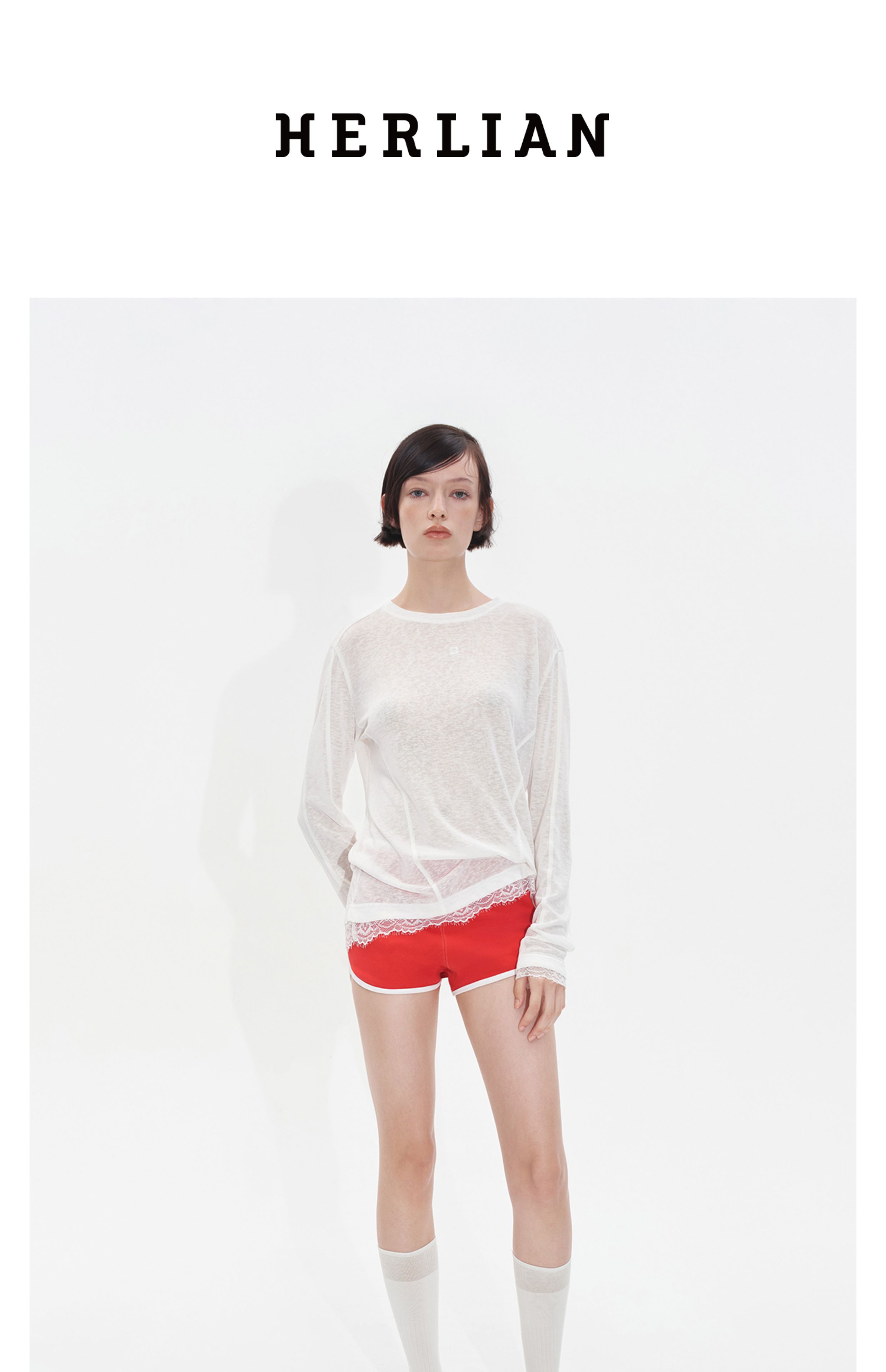 Herlian2025年秋季新品女士轻薄简约logo装饰oversize罩衫T恤衫