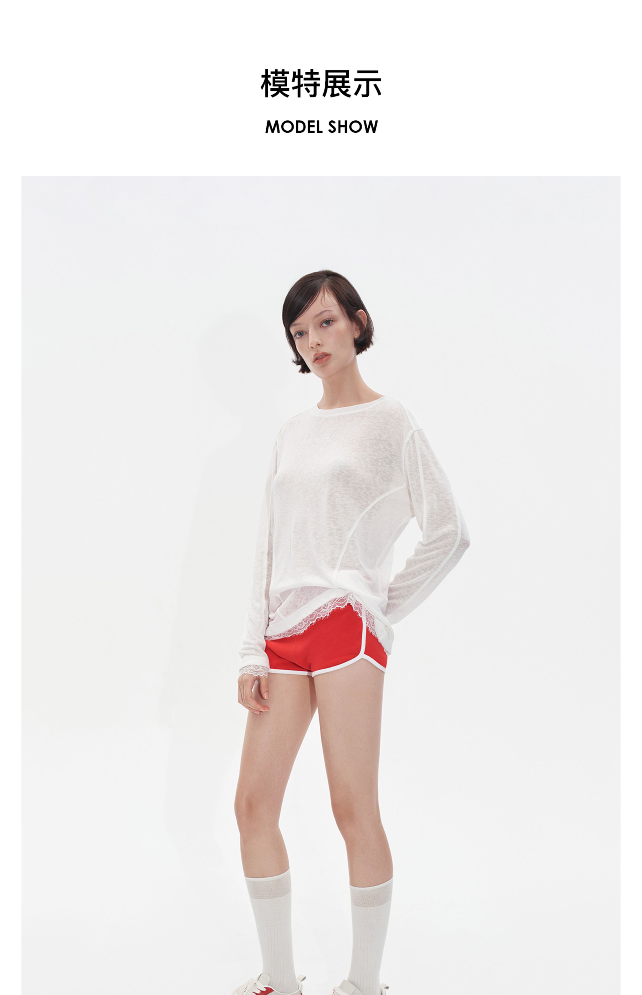 HL2CAWSH1017 钉珠logo蕾丝边裤裙