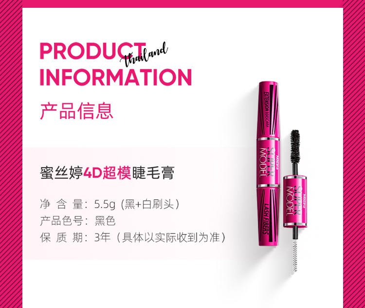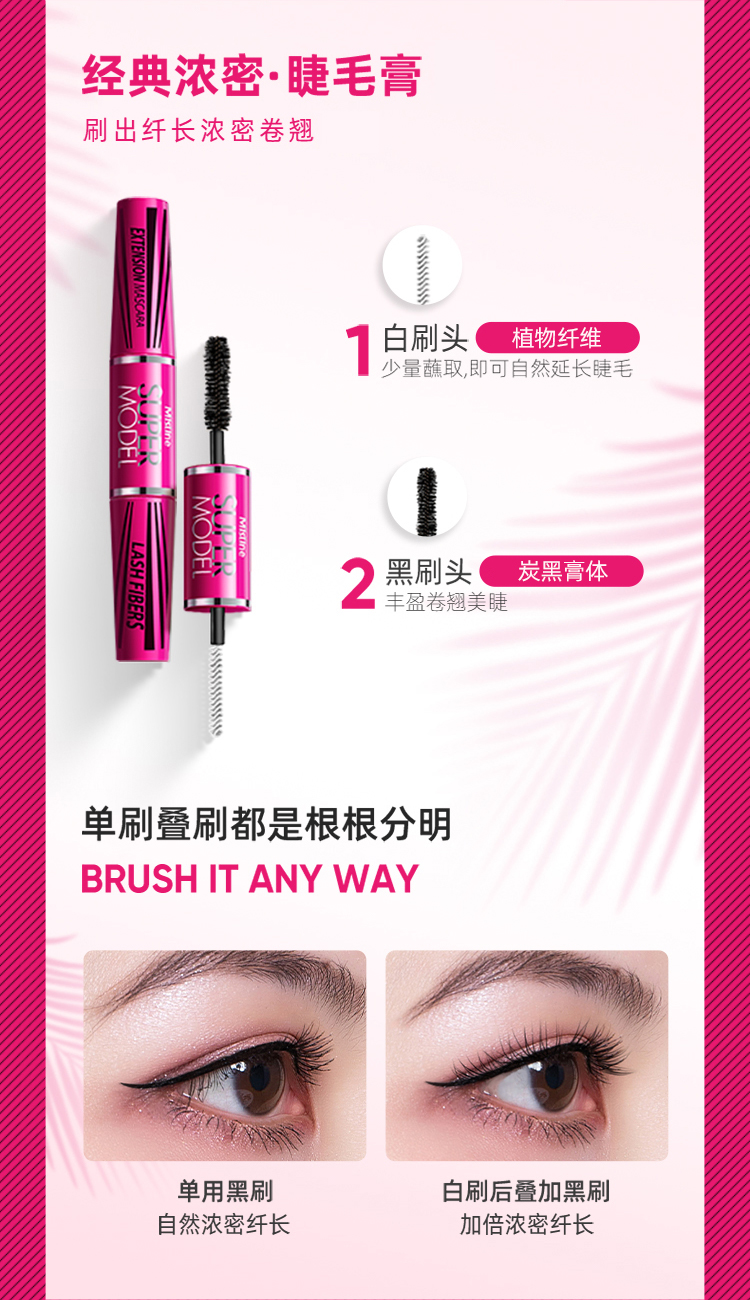 【品牌官方直营】MISTINE蜜丝婷 眼睫毛膏双头4D防水纤长卷翘浓密打底定型不晕染