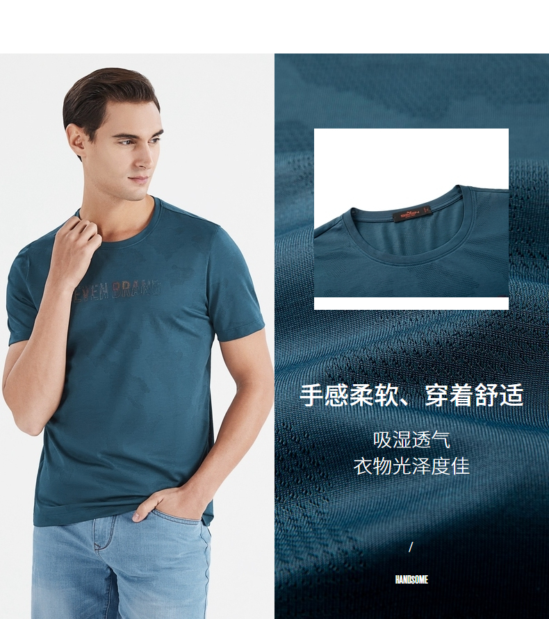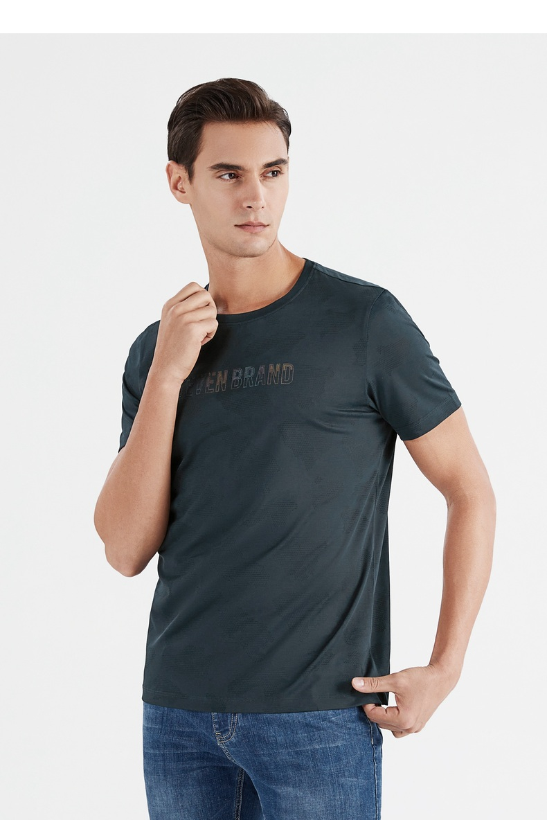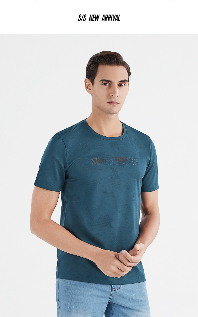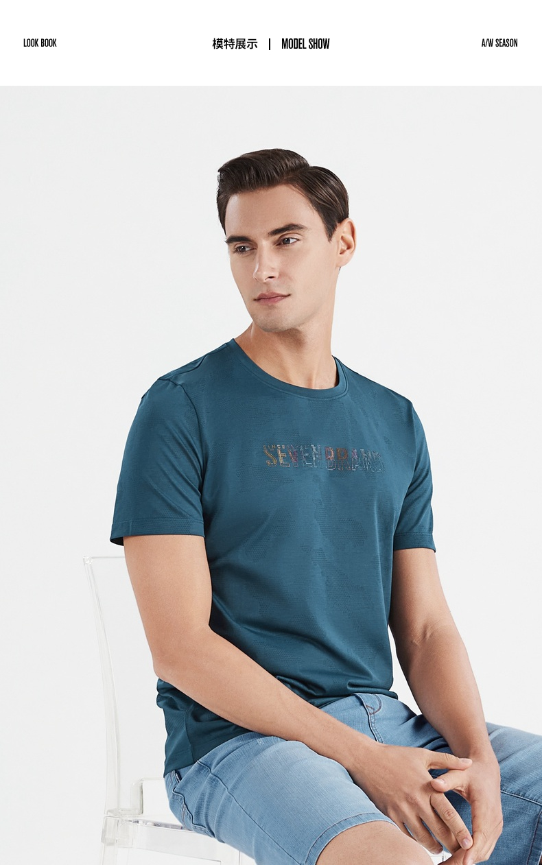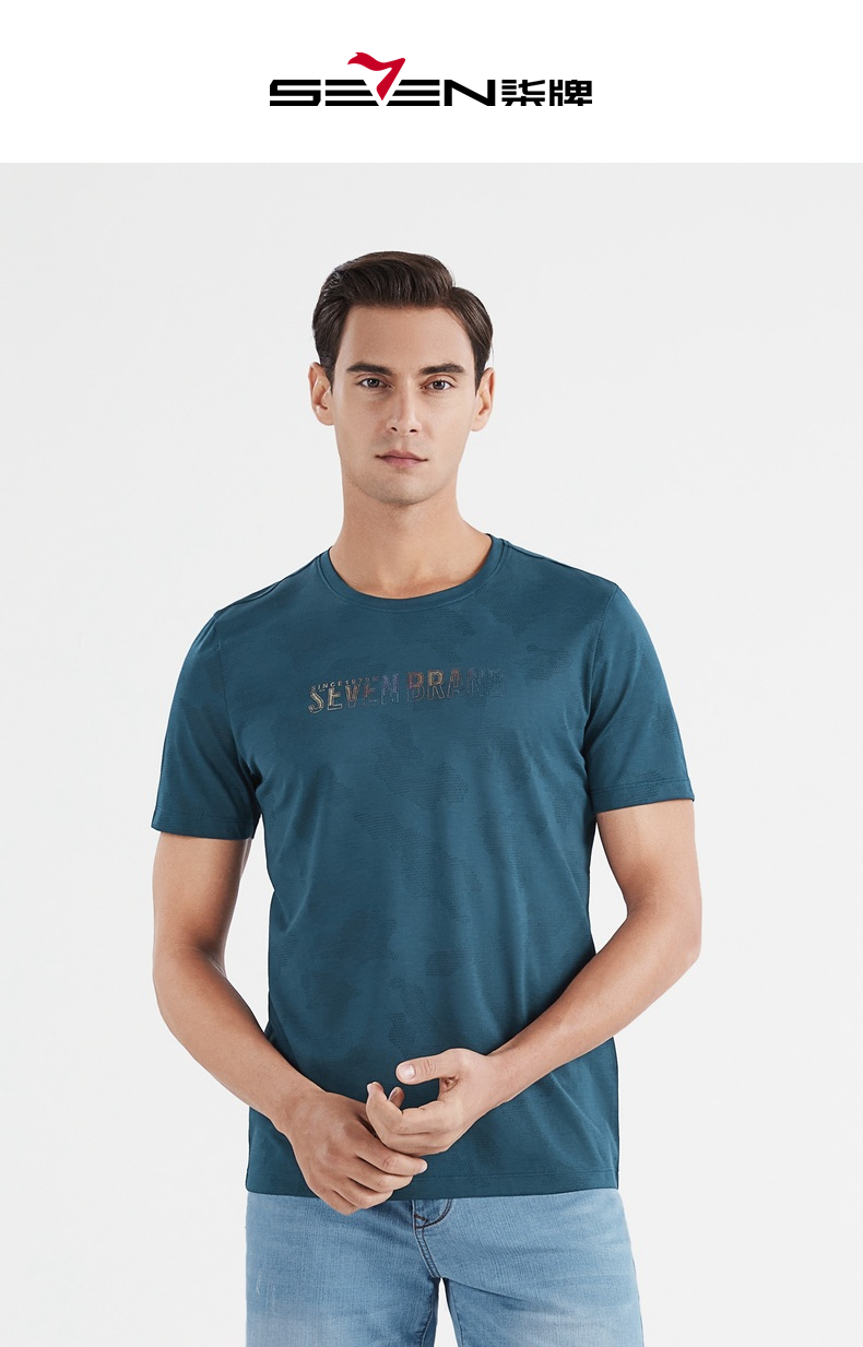 柒牌男士短袖t恤夏季新款时尚休闲不规则提花圆领体恤上衣薄 122T71130