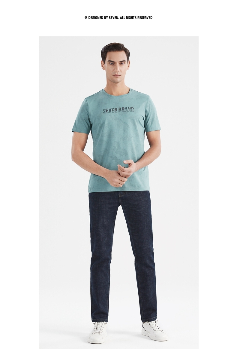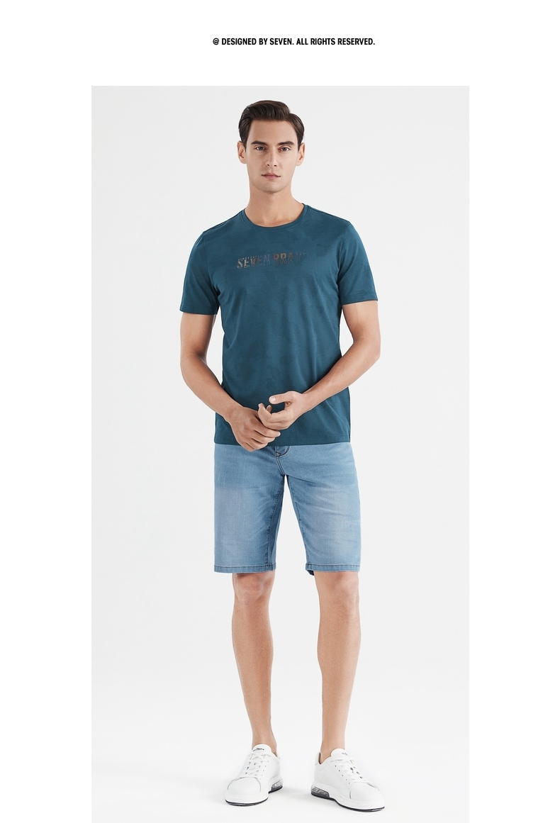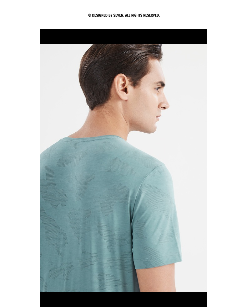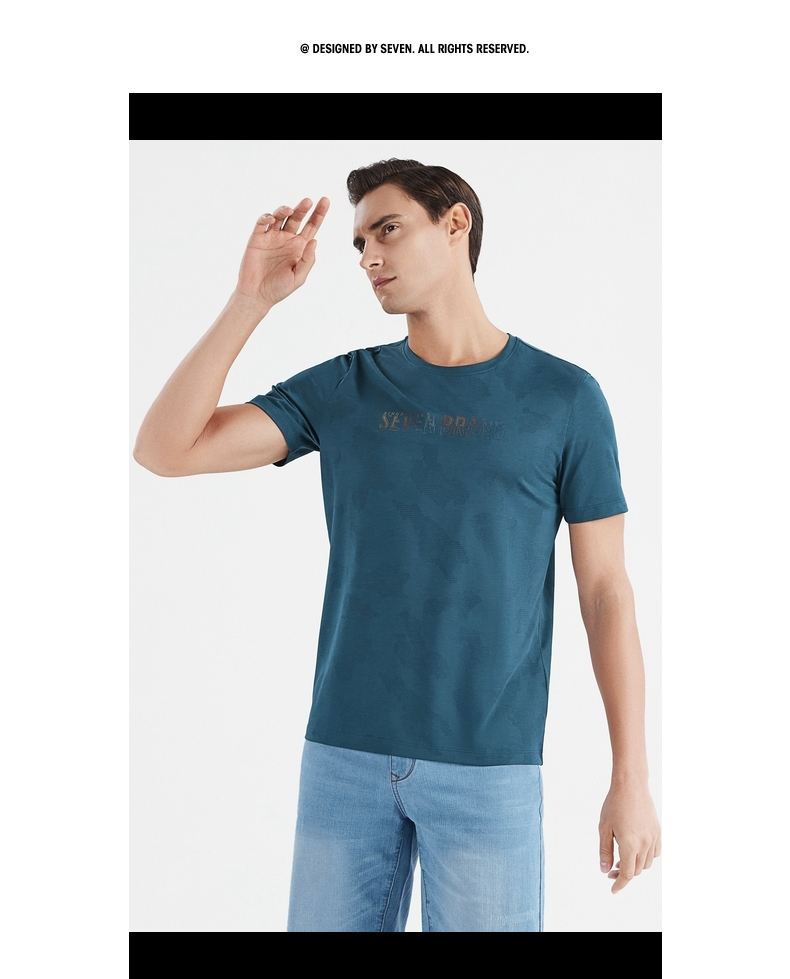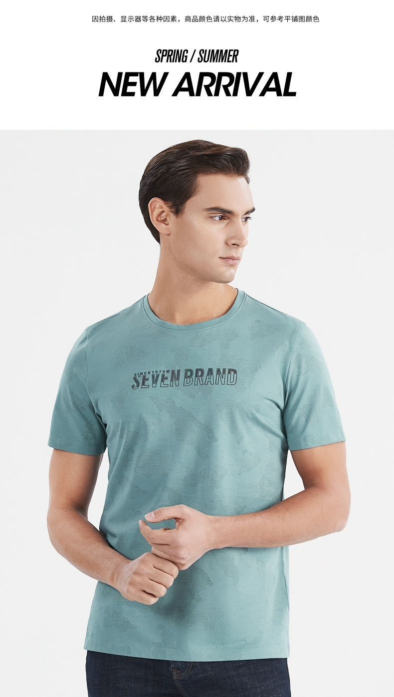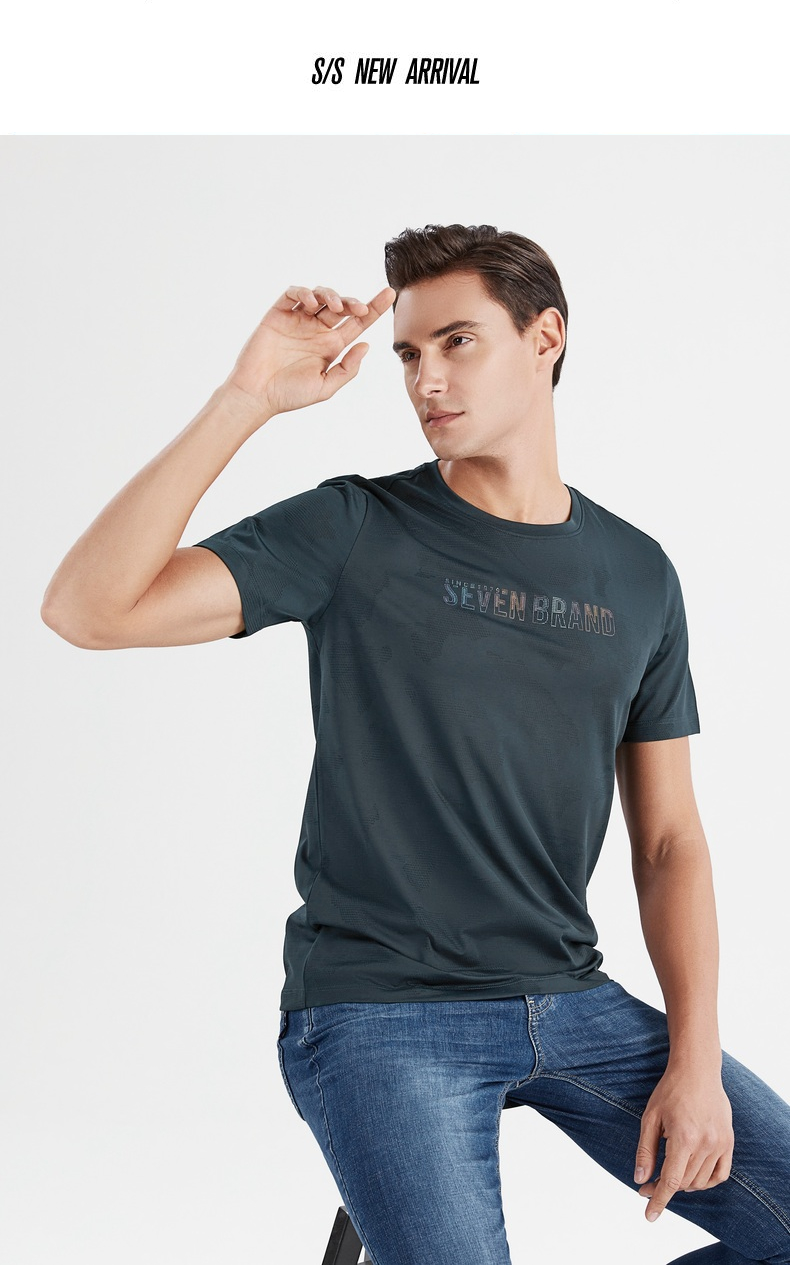 柒牌男士短袖t恤夏季新款时尚休闲不规则提花圆领体恤上衣薄 122T71130