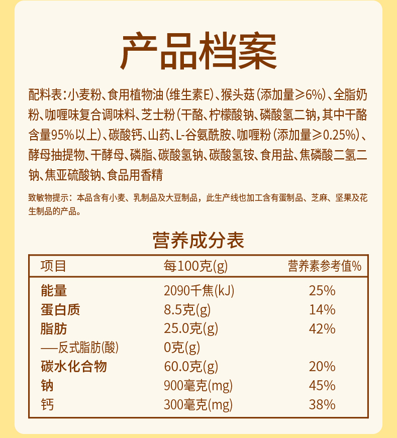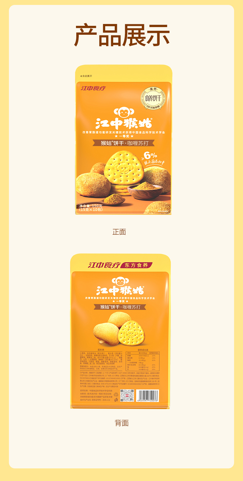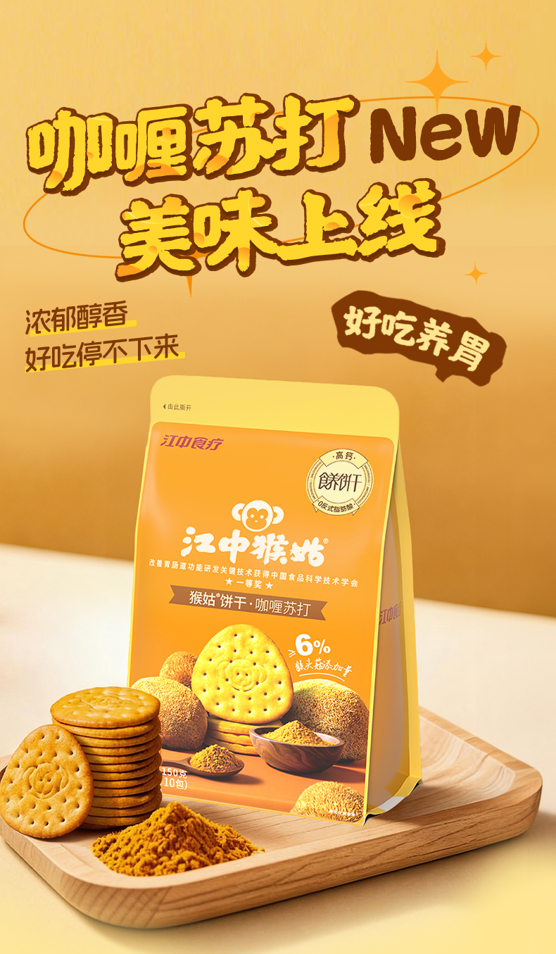 江中猴姑猴姑饼干咖喱苏打饼干150g/袋 15g*10包/袋保质期至2026年9月【新人特价专享,限购2件】
