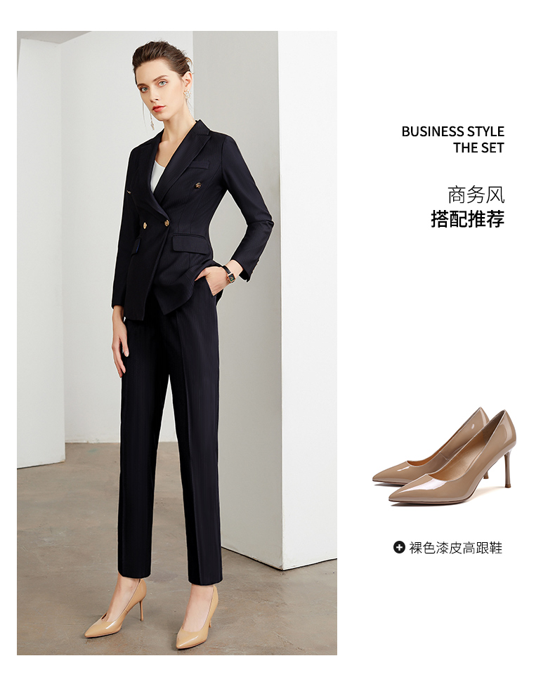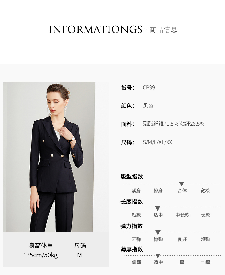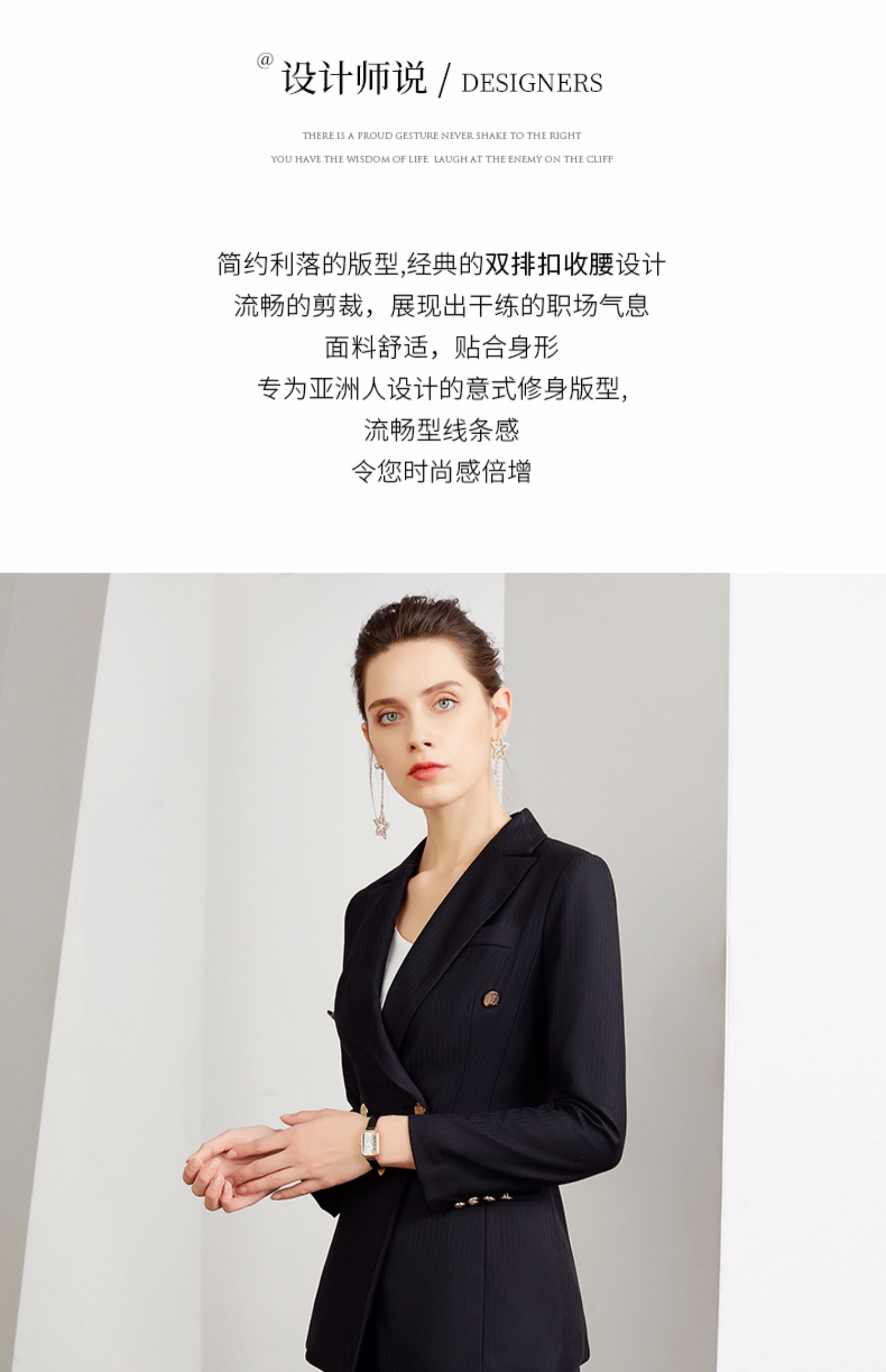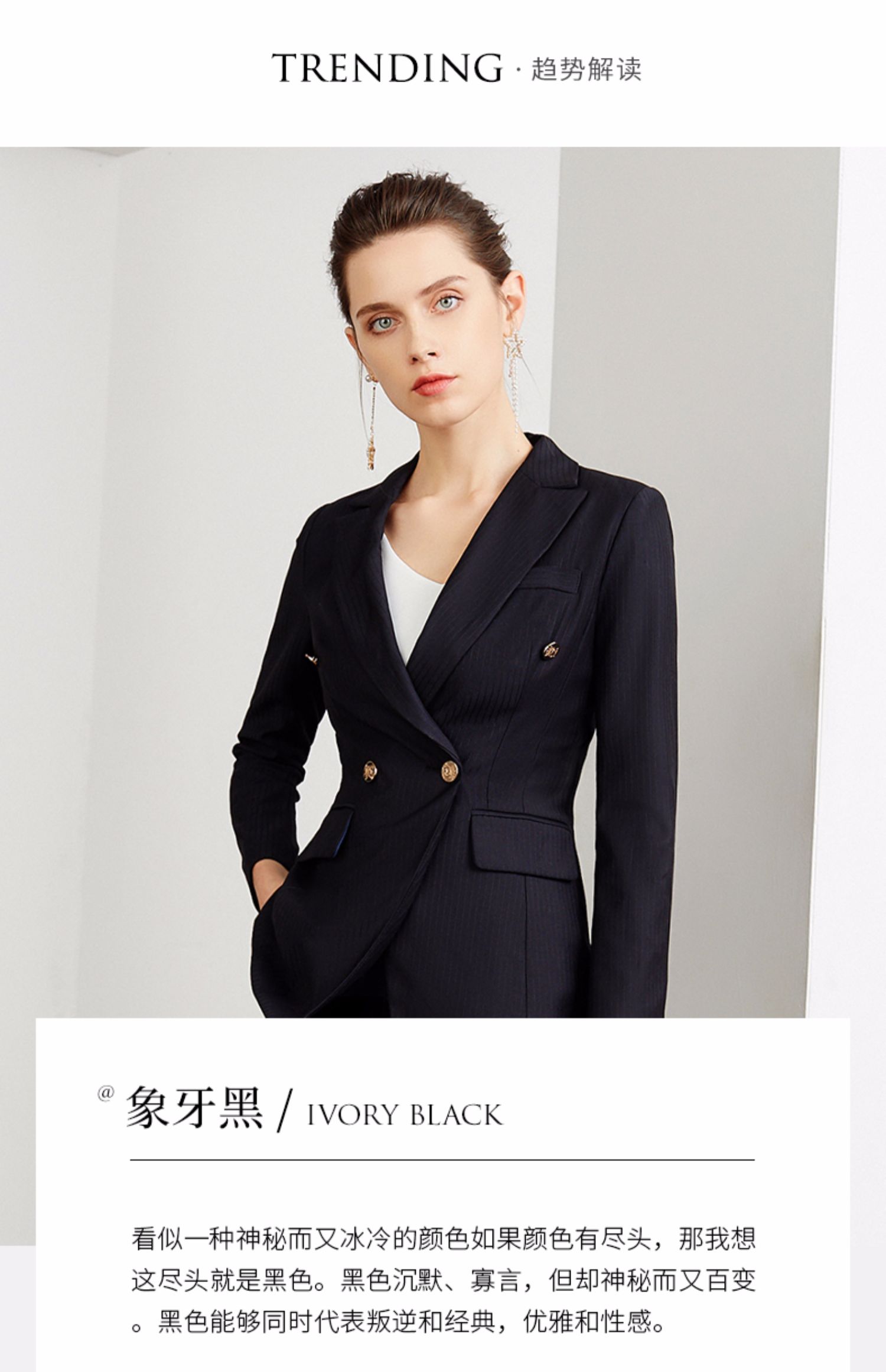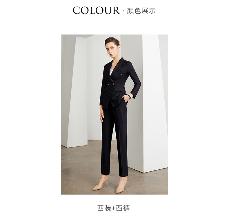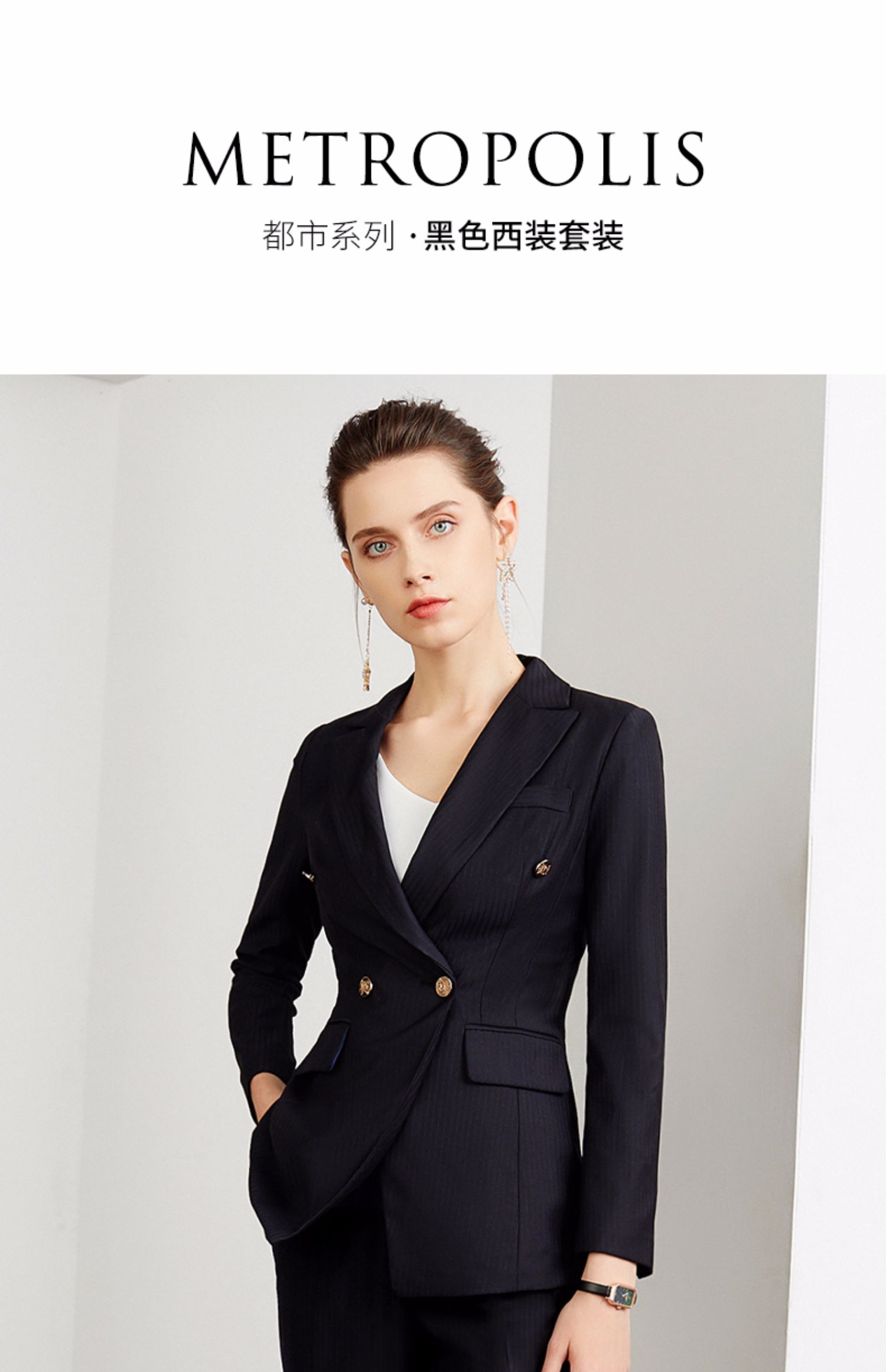 法小曼*子珍专款/通勤风黑色毛呢西装套装女修身收腰呢子职业套裙气质秋冬款