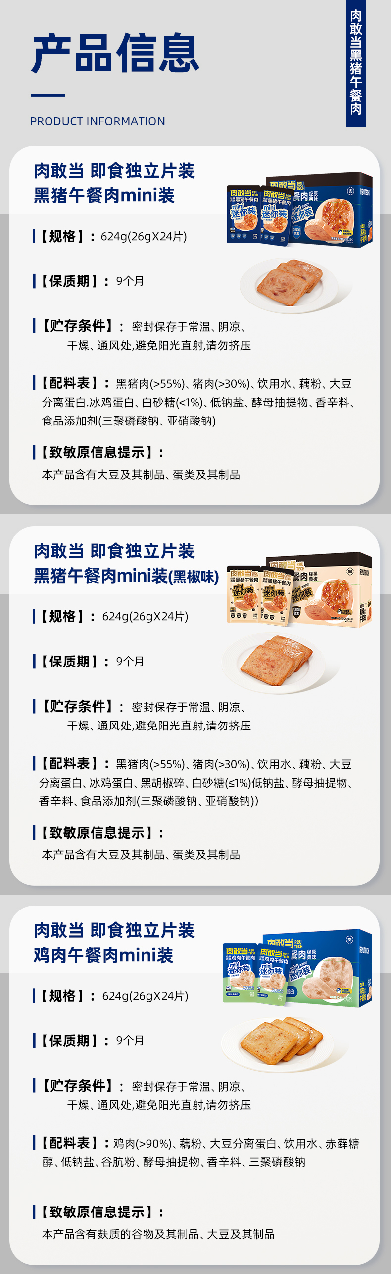 肉敢当 量贩装黑猪/鸡肉mini午餐肉(原味/黑椒)624g