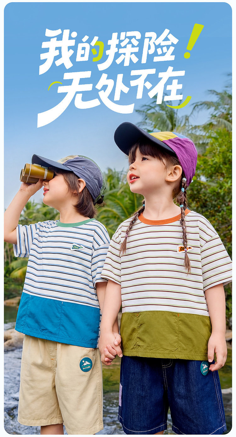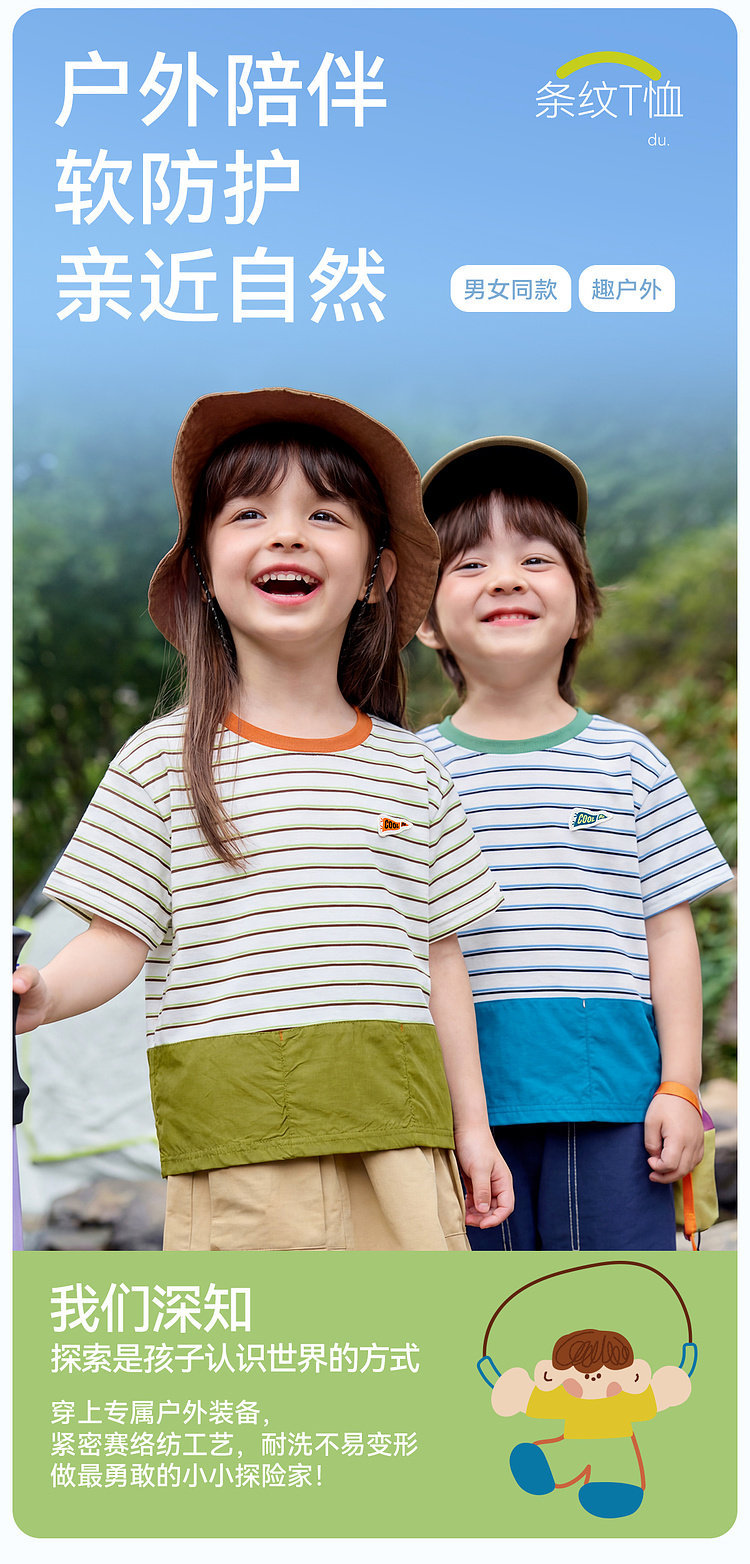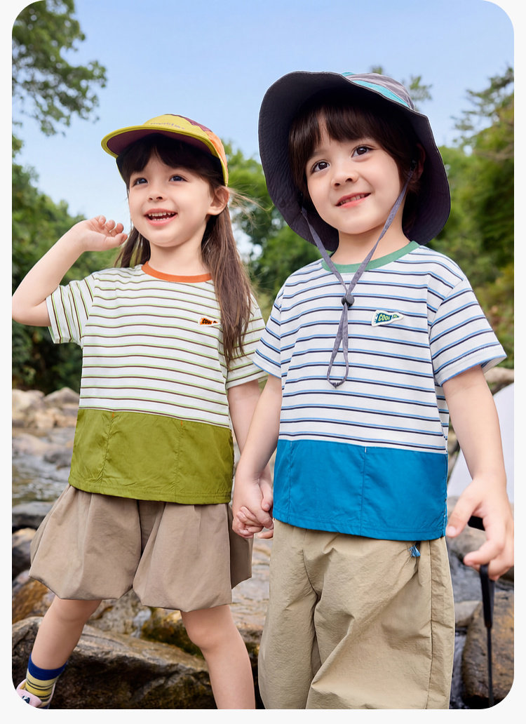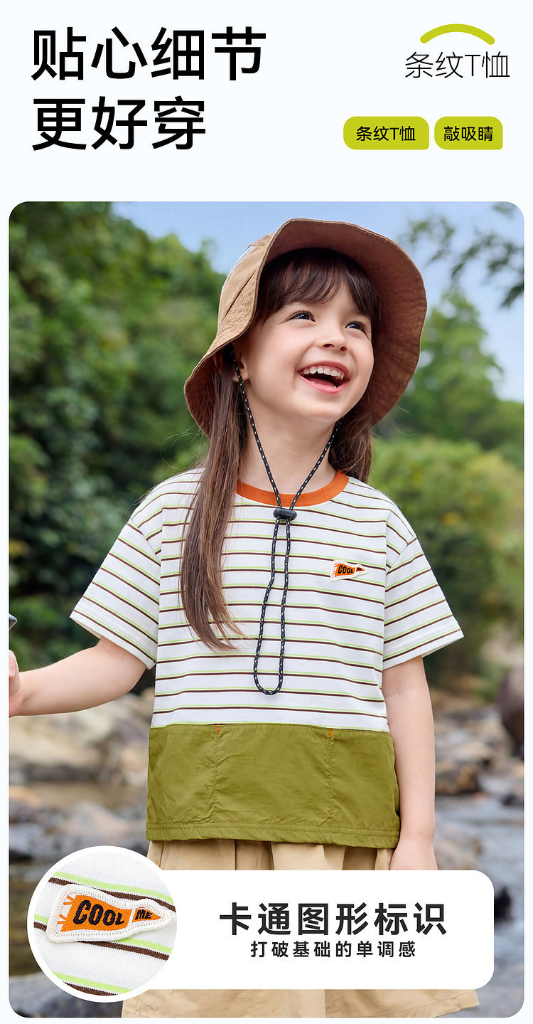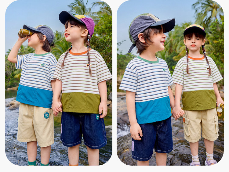 嘟嘟家男童条纹T恤儿童短袖拼接女童上衣t恤夏季宝宝童装洋气衣服F6BTX250