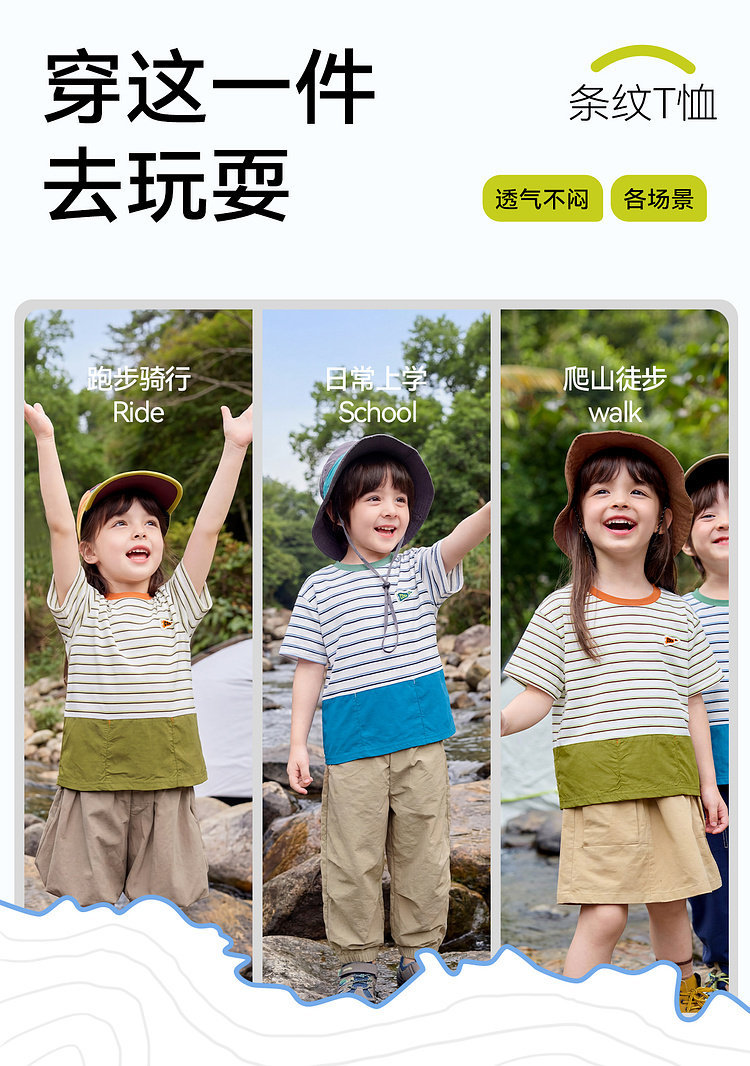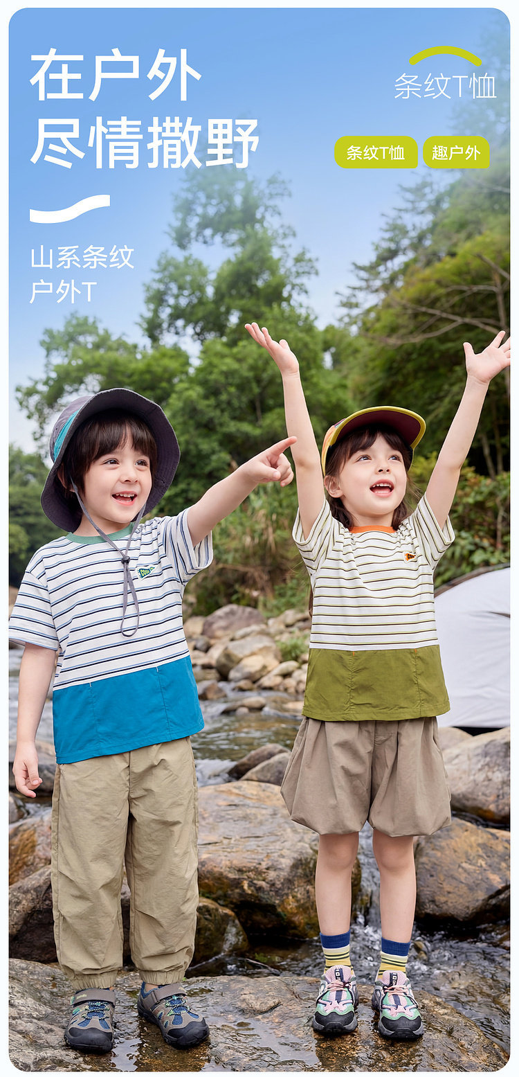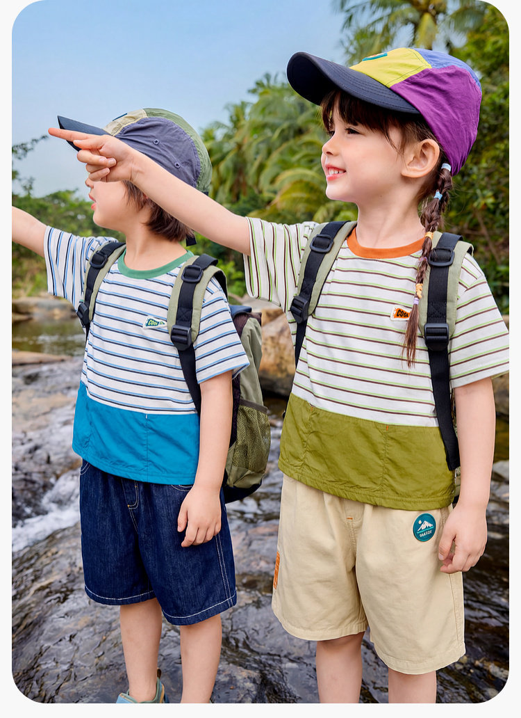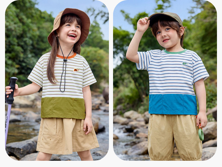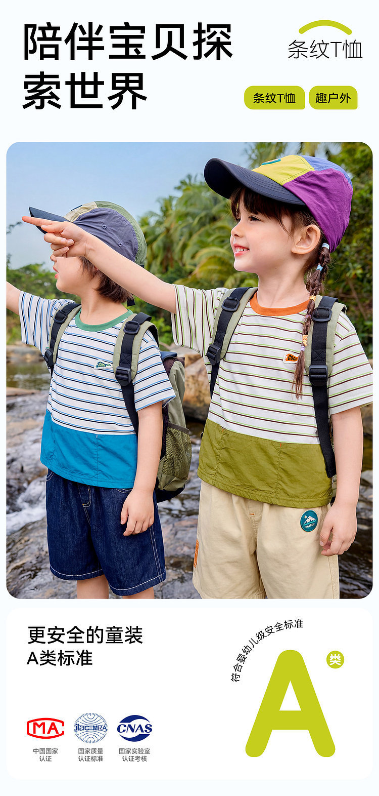 嘟嘟家男童条纹T恤儿童短袖拼接女童上衣t恤夏季宝宝童装洋气衣服F6BTX250