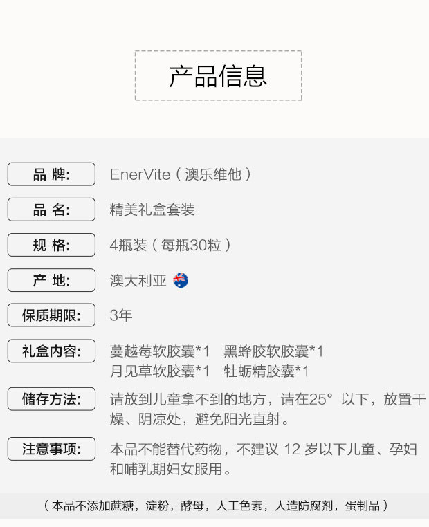 【保税仓】澳洲Enervite澳乐维他 礼盒装(蔓越莓月见草牡蛎精黑蜂胶)