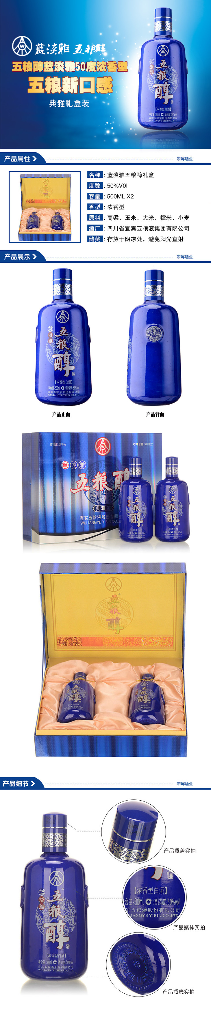 50度蓝淡雅五粮醇礼盒500ml×2×5