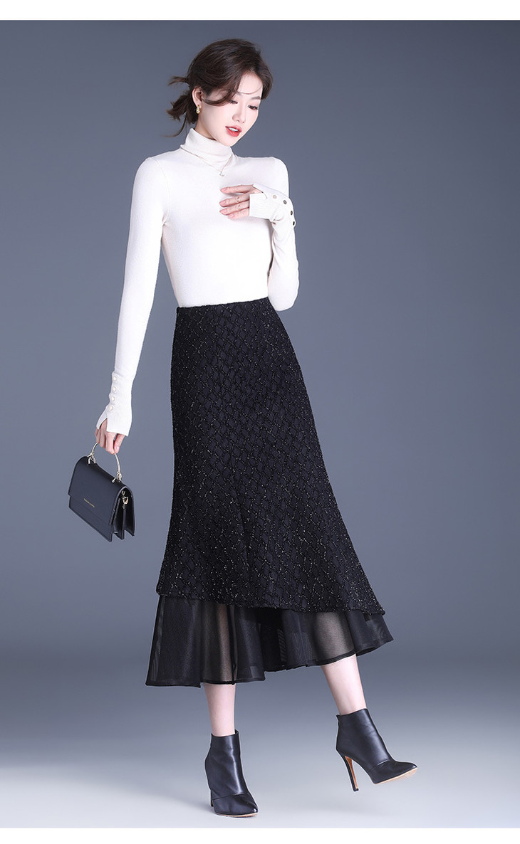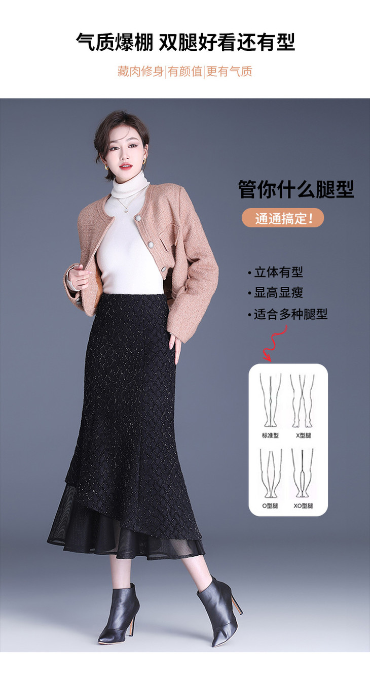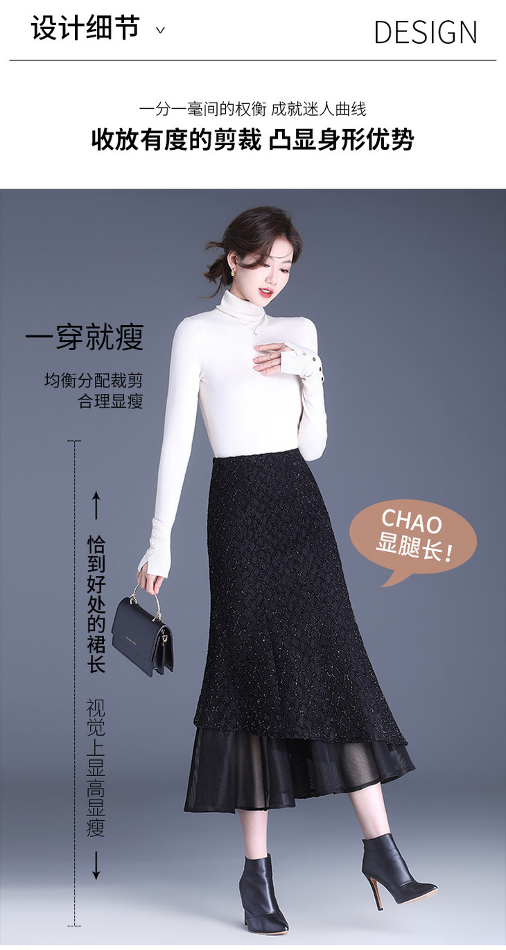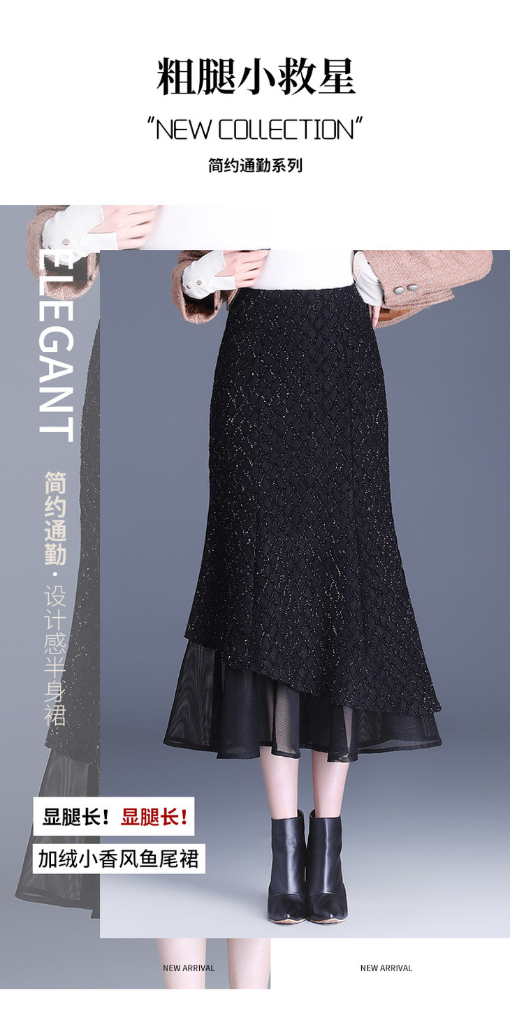 网纱边鱼尾包臀裙半身裙秋冬2024新款高腰显瘦遮胯气质一步裙子YK-MTYR2385