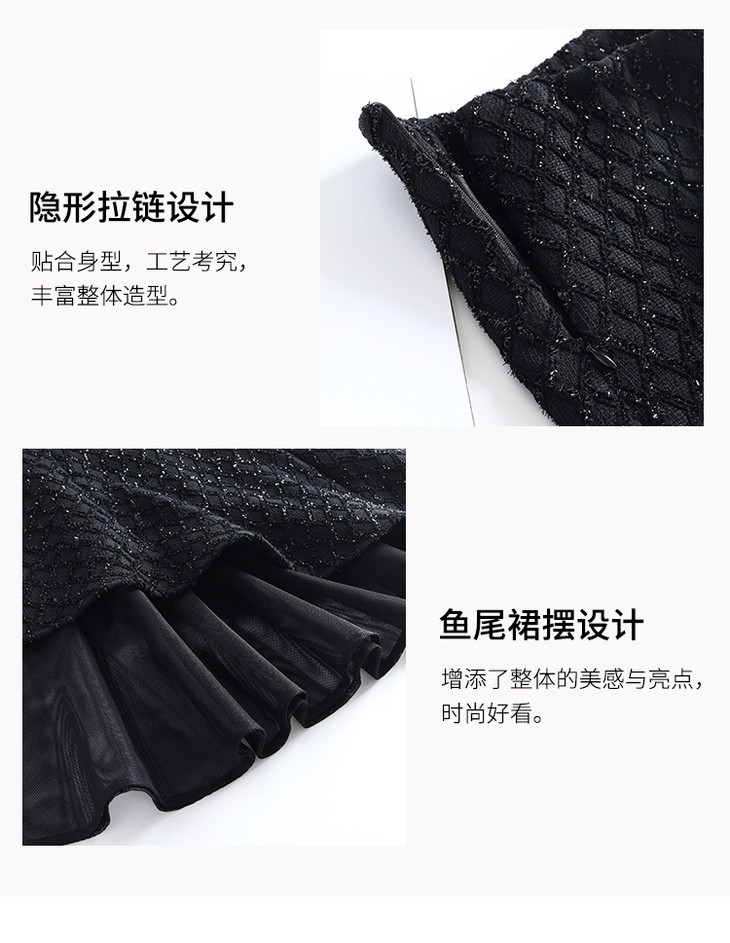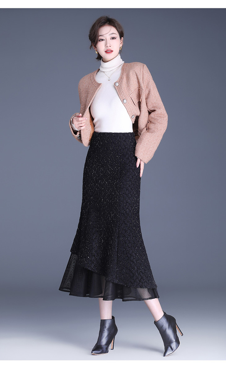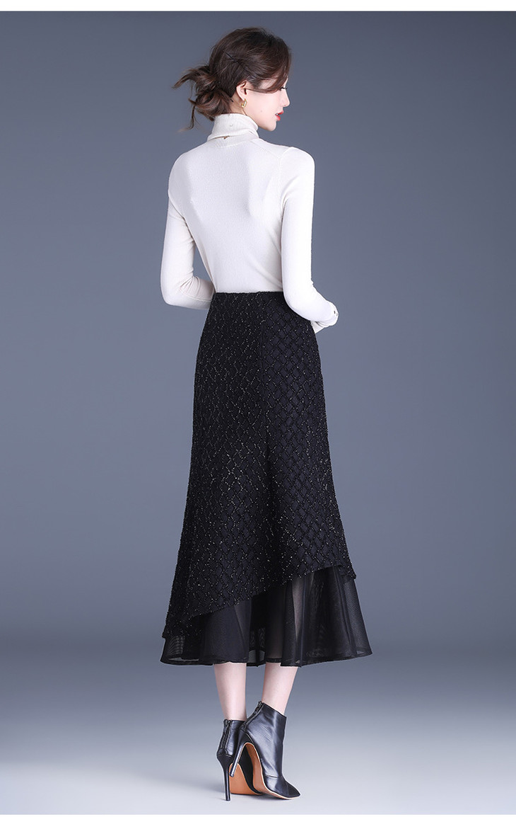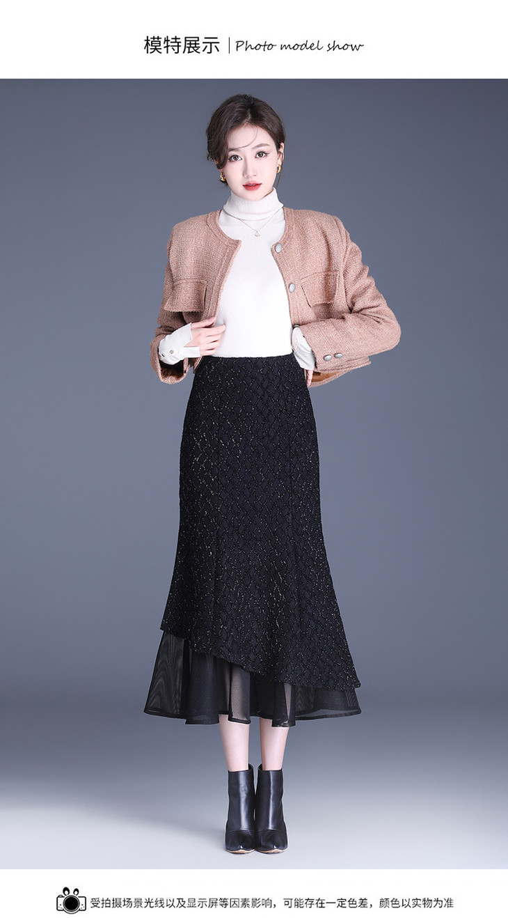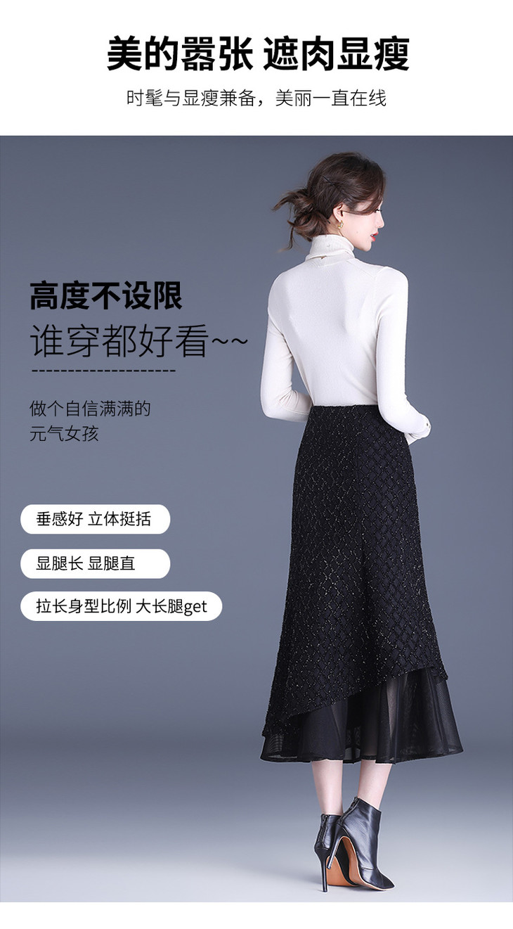网纱边鱼尾包臀裙半身裙秋冬2024新款高腰显瘦遮胯气质一步裙子YK-MTYR2385