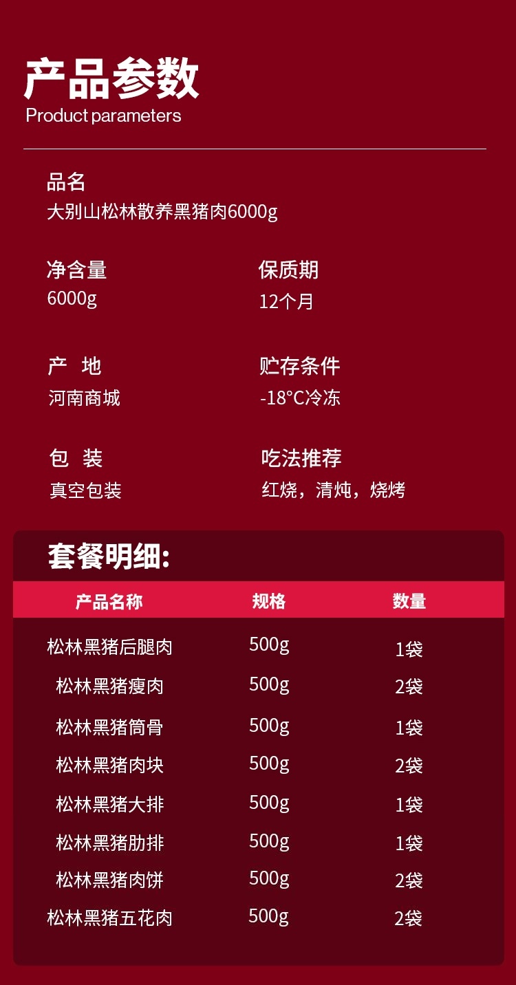 【发出后不支持拦截退货】牧森甄 大别山松林黑猪肉1036型 6000g