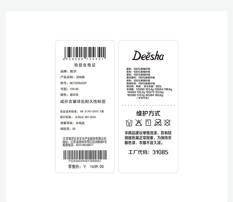 笛莎Deesha 童装女童亮面羽绒服2025年冬季新款女孩儿童时尚保暖外套