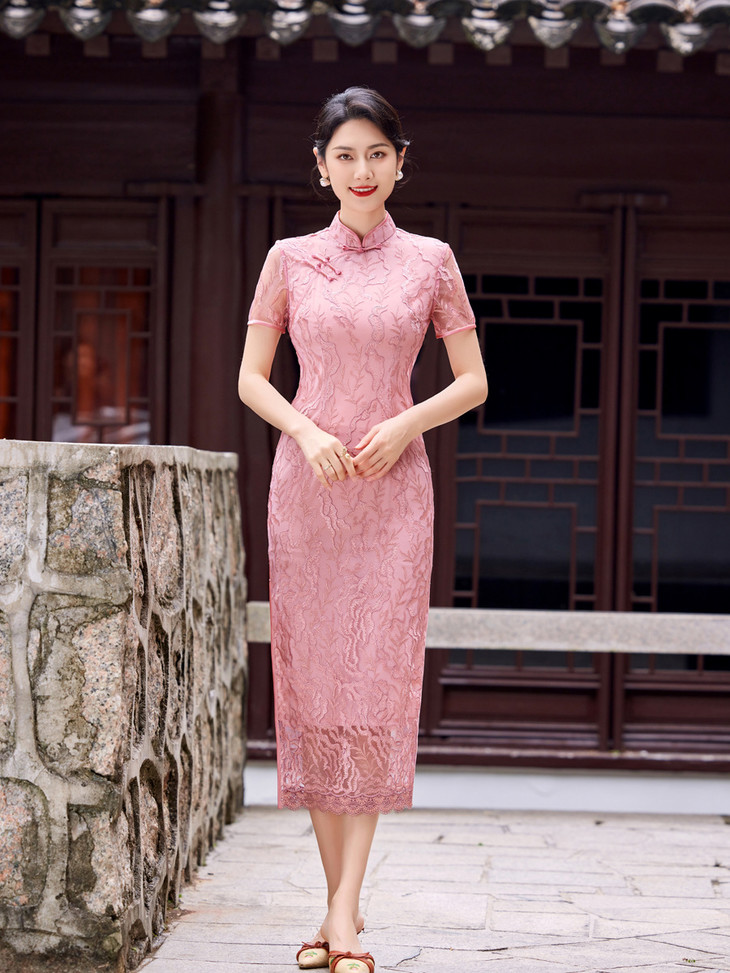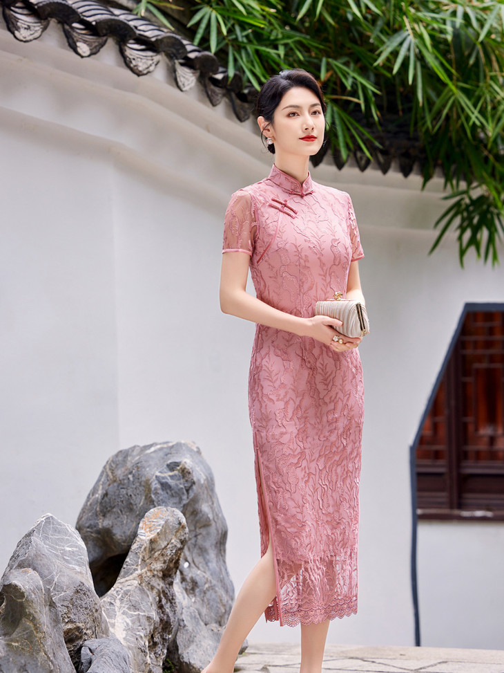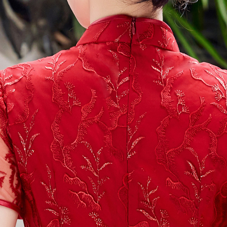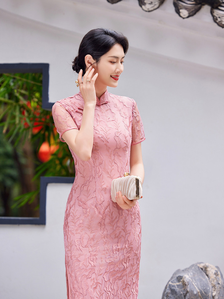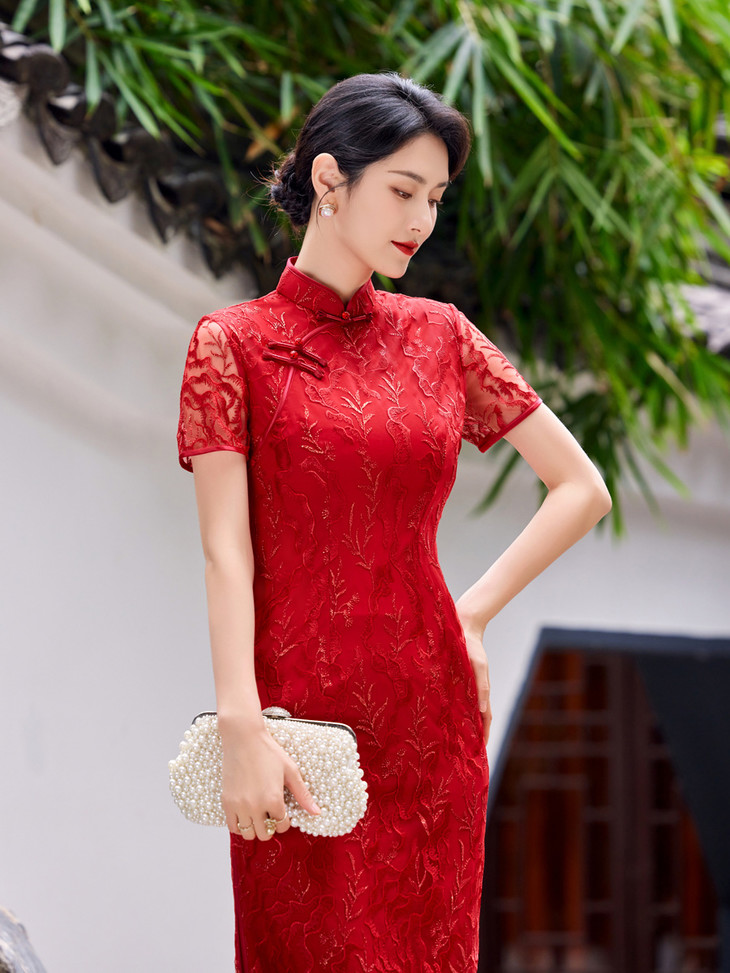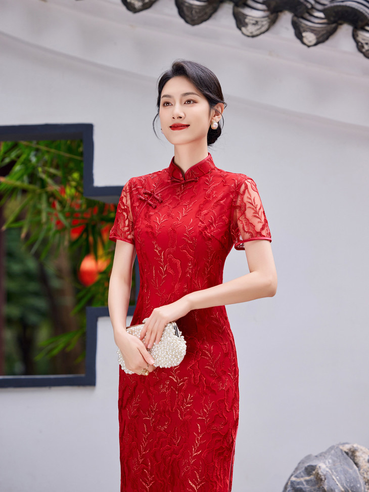 新中式国风改良日常旗袍连衣裙,夏款立体绣花蕾丝长裙高级XS-K666