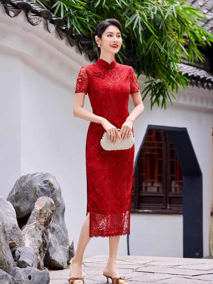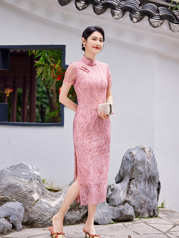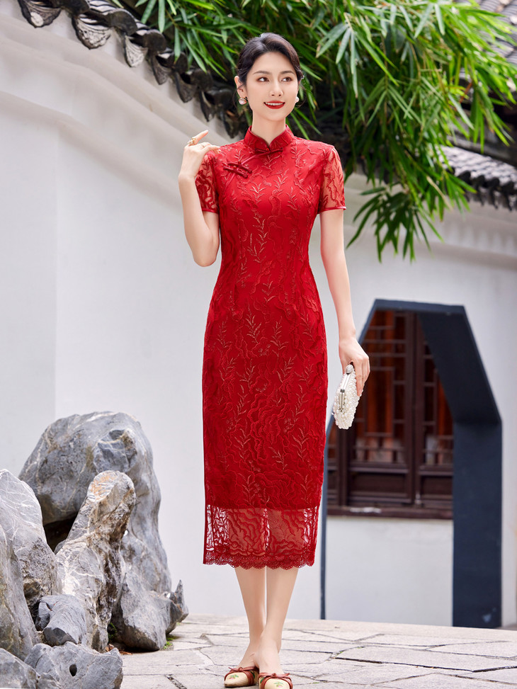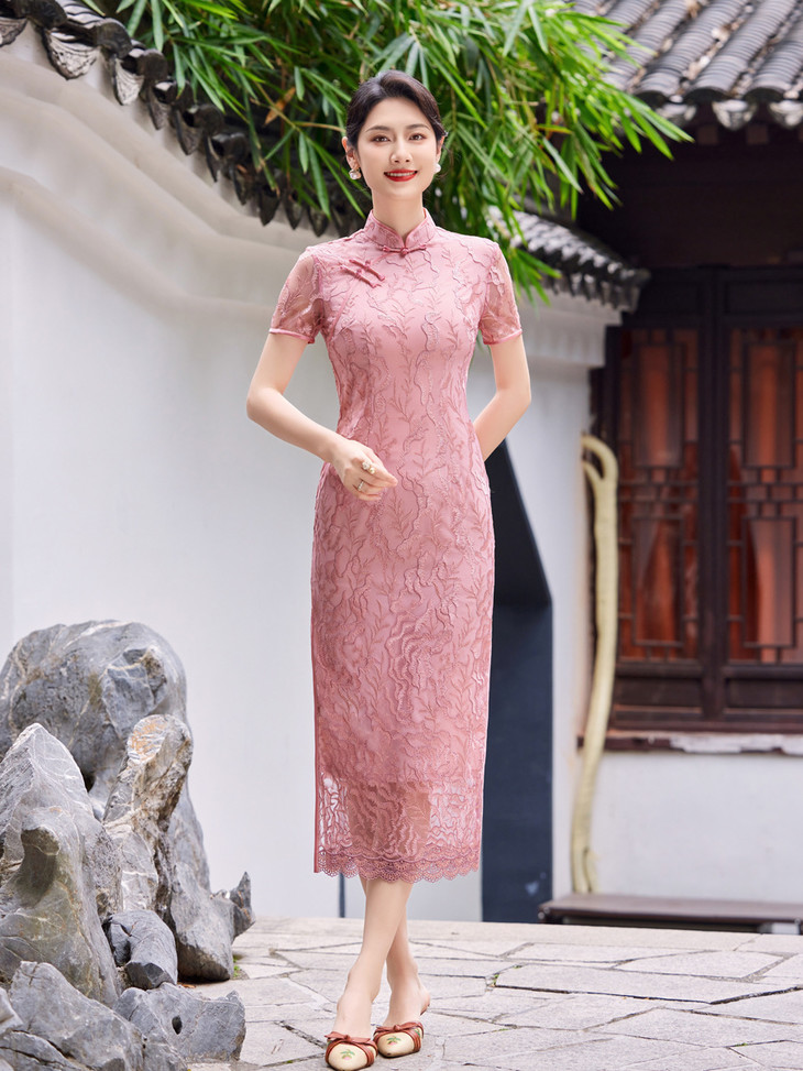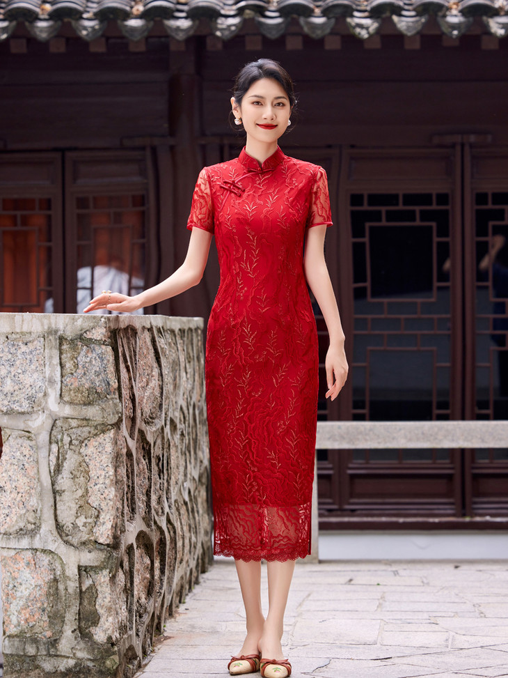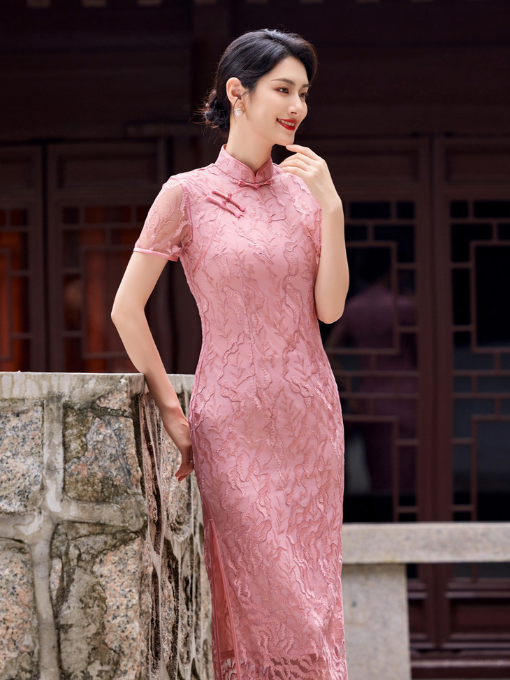 新中式国风改良日常旗袍连衣裙,夏款立体绣花蕾丝长裙高级XS-K666