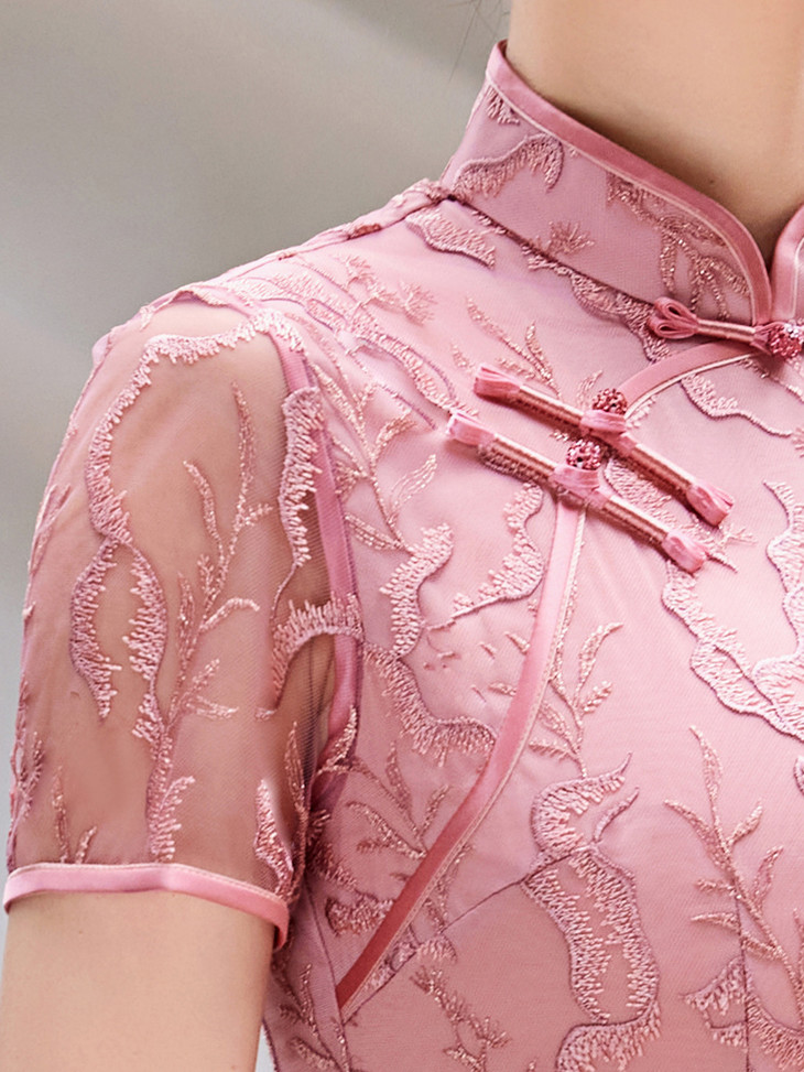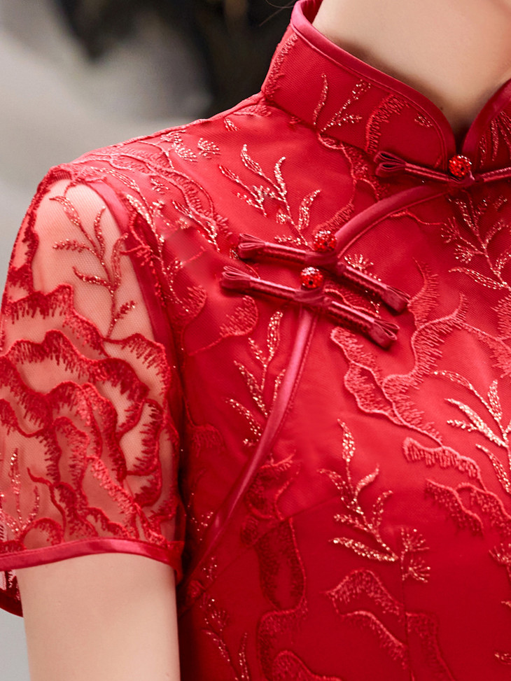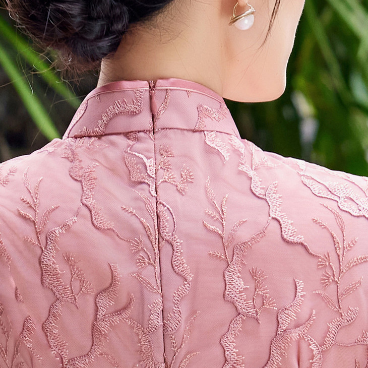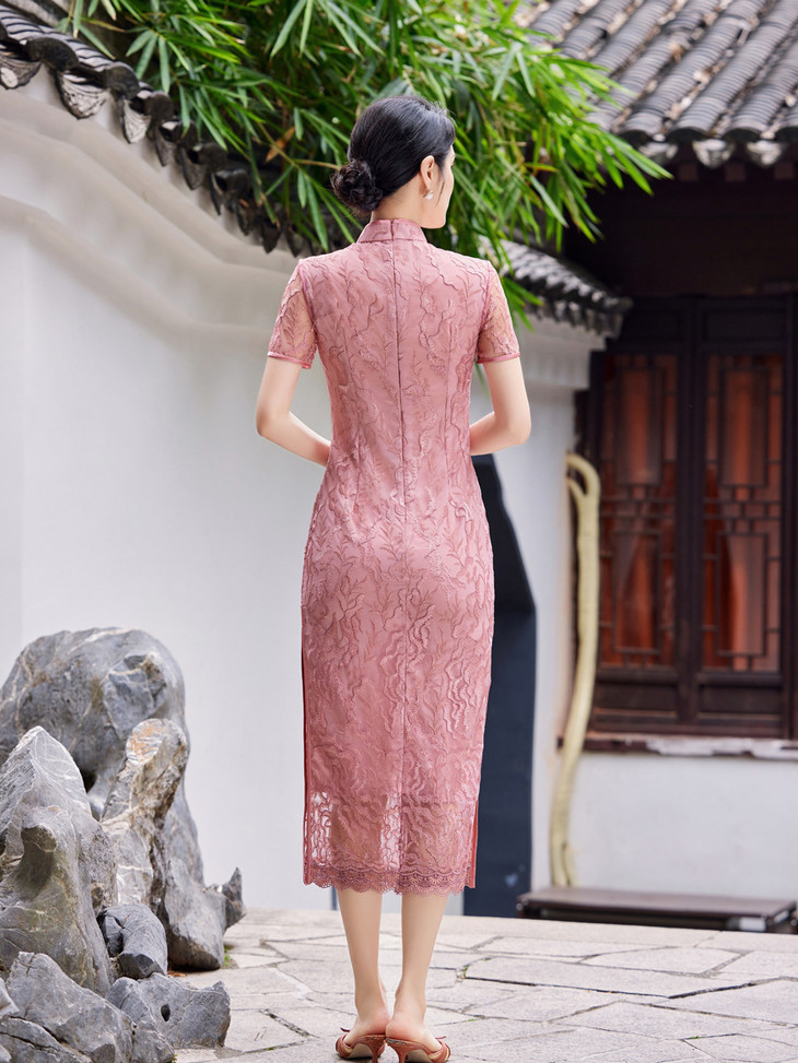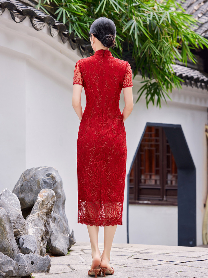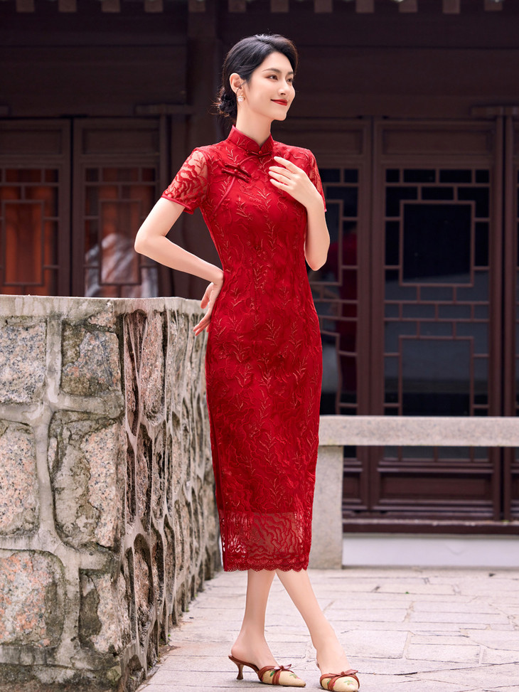 新中式国风改良日常旗袍连衣裙,夏款立体绣花蕾丝长裙高级XS-K666