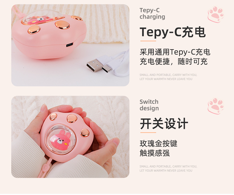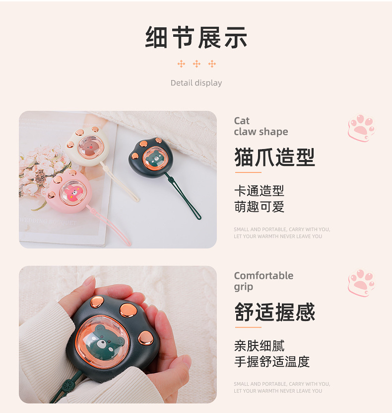 【萌趣猫爪造型、两档恒温可调】抖音同款便携防爆猫爪暖手宝冬季萌宠迷你电暖手宝 USB充电暖手宝.TA