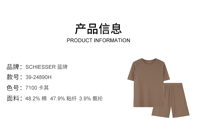 【华夫格棉粘纤】SCHIESSER/德国舒雅男士华夫格棉粘纤混纺宽松家居套装39/24890H