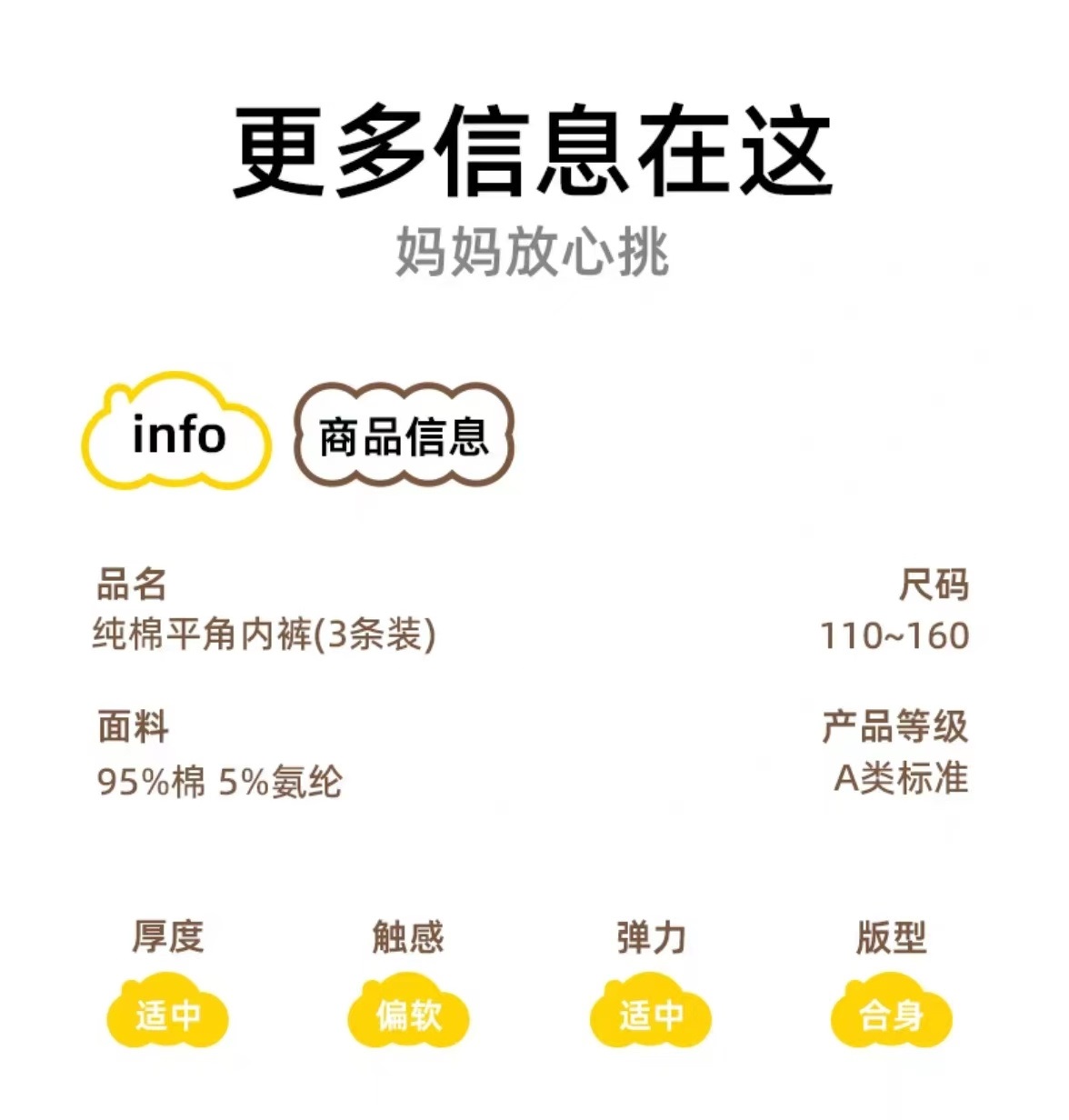 儿童内裤:面料:95%棉 5%氨纶 里档:95%棉5%