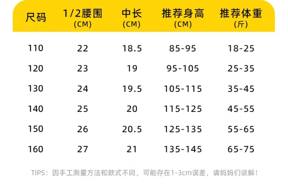 110码 建议身高85-95cm18-25斤