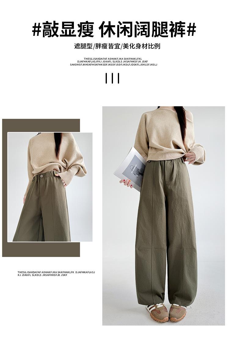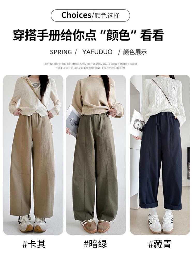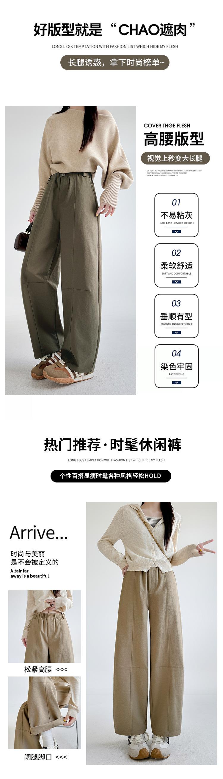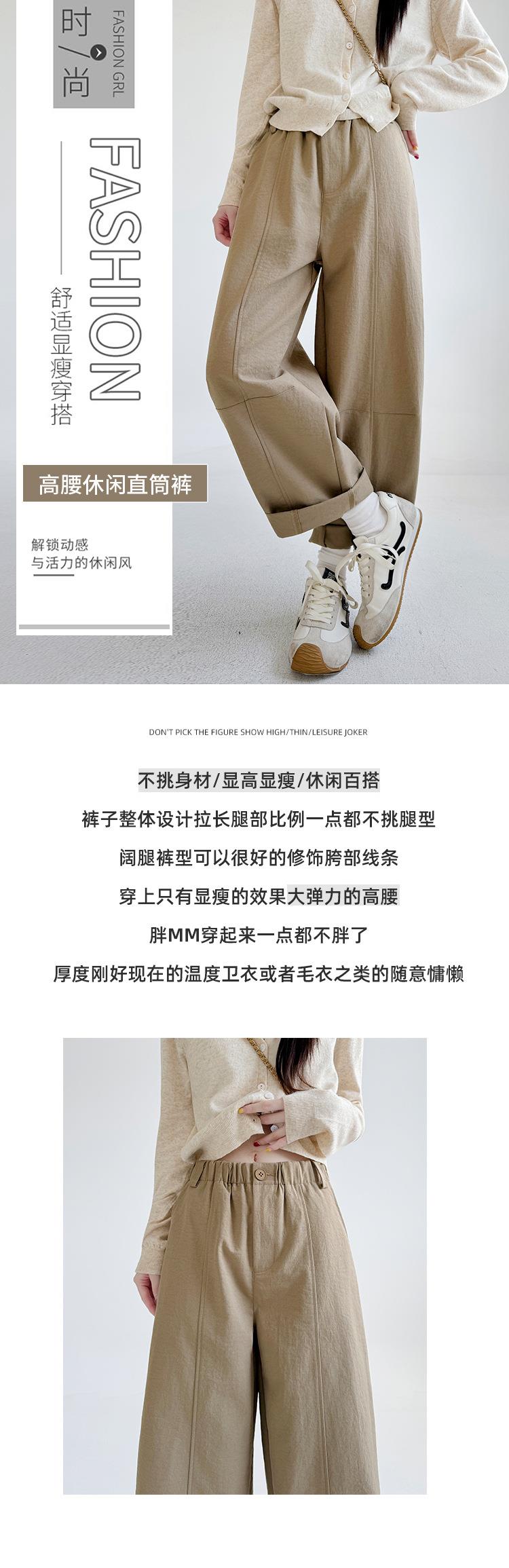 卡其色高腰直筒裤女裤子春秋新款显瘦九分休闲裤小个子韩版阔腿裤