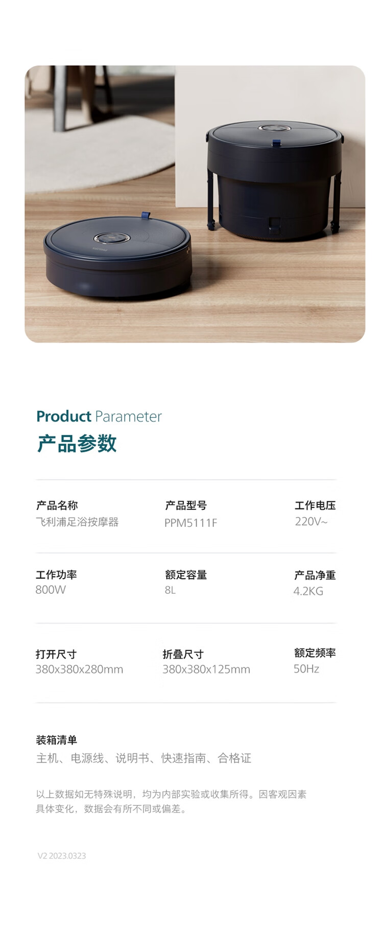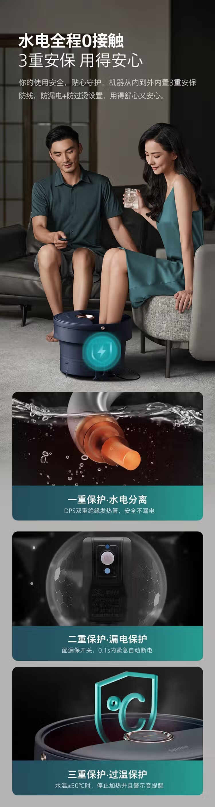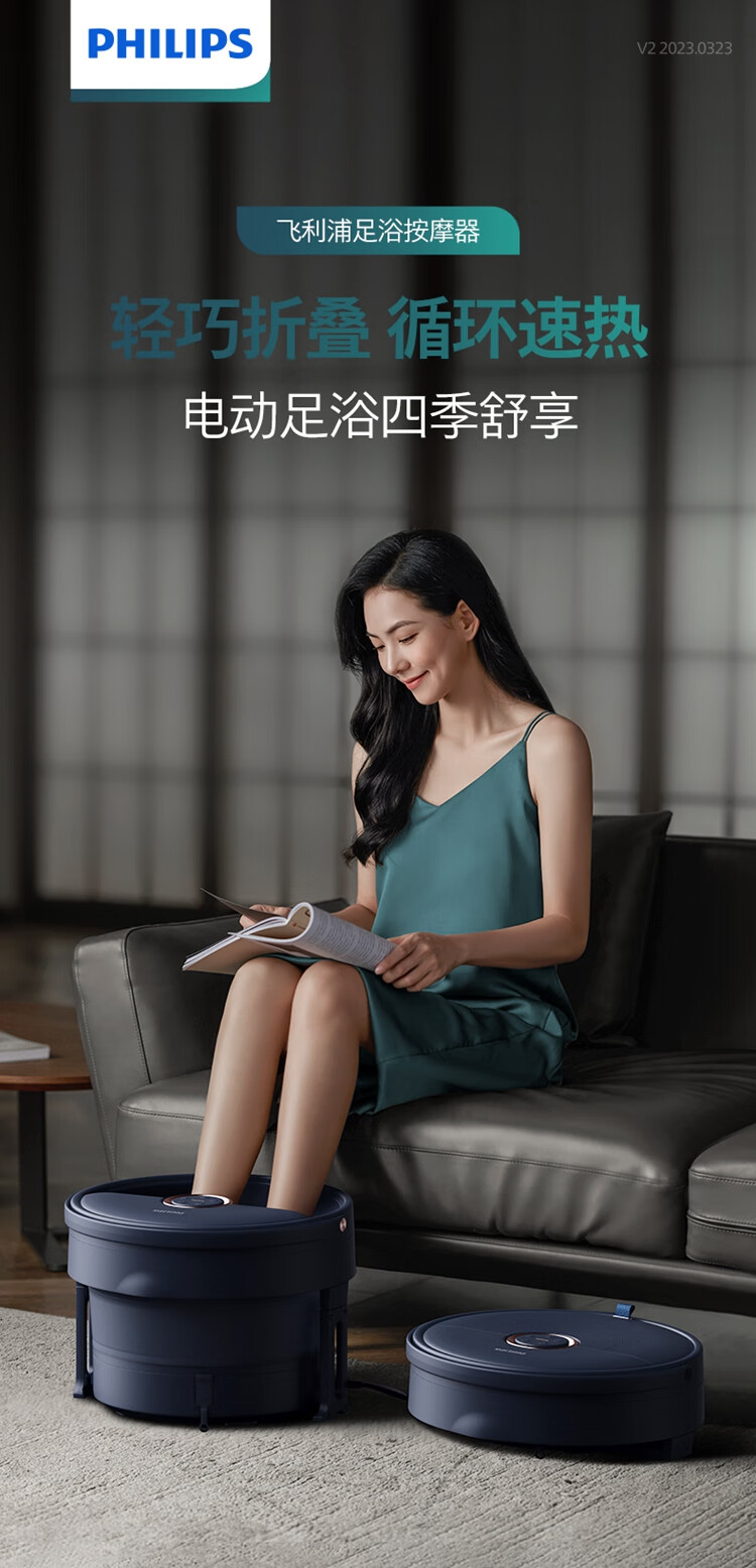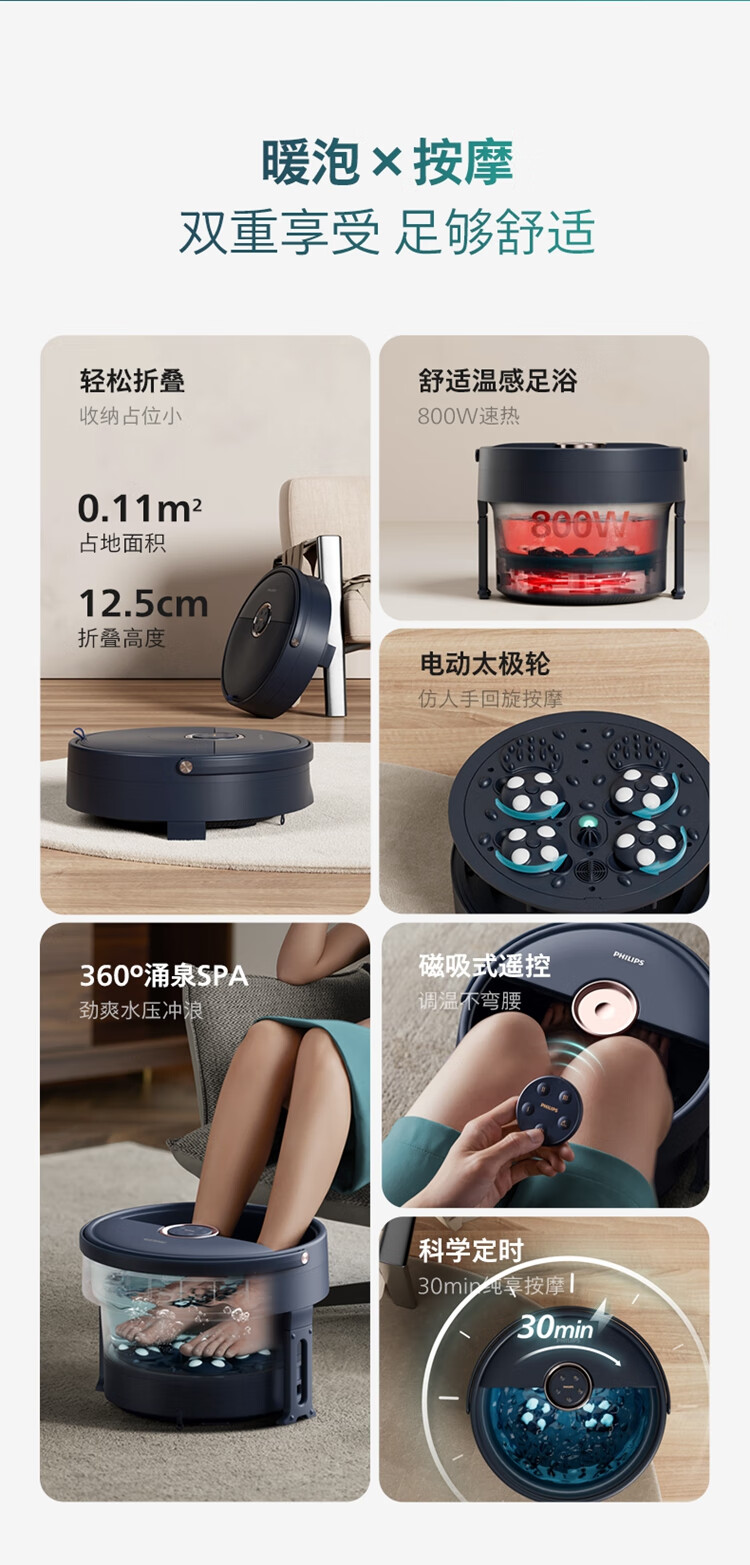 飞利浦(PHILIPS)折叠泡脚桶加热恒温自动按摩洗脚盆 揉捏足疗暖脚足浴盆泡脚桶 PPM5111F 生日礼物节日礼品送爸爸妈妈