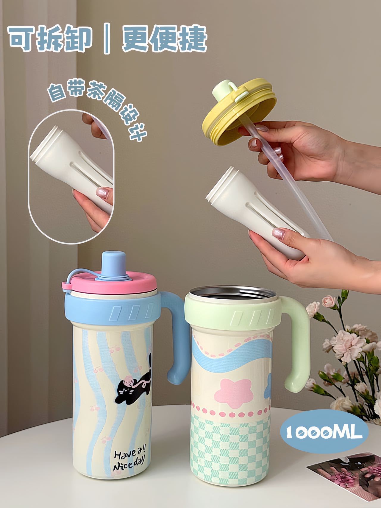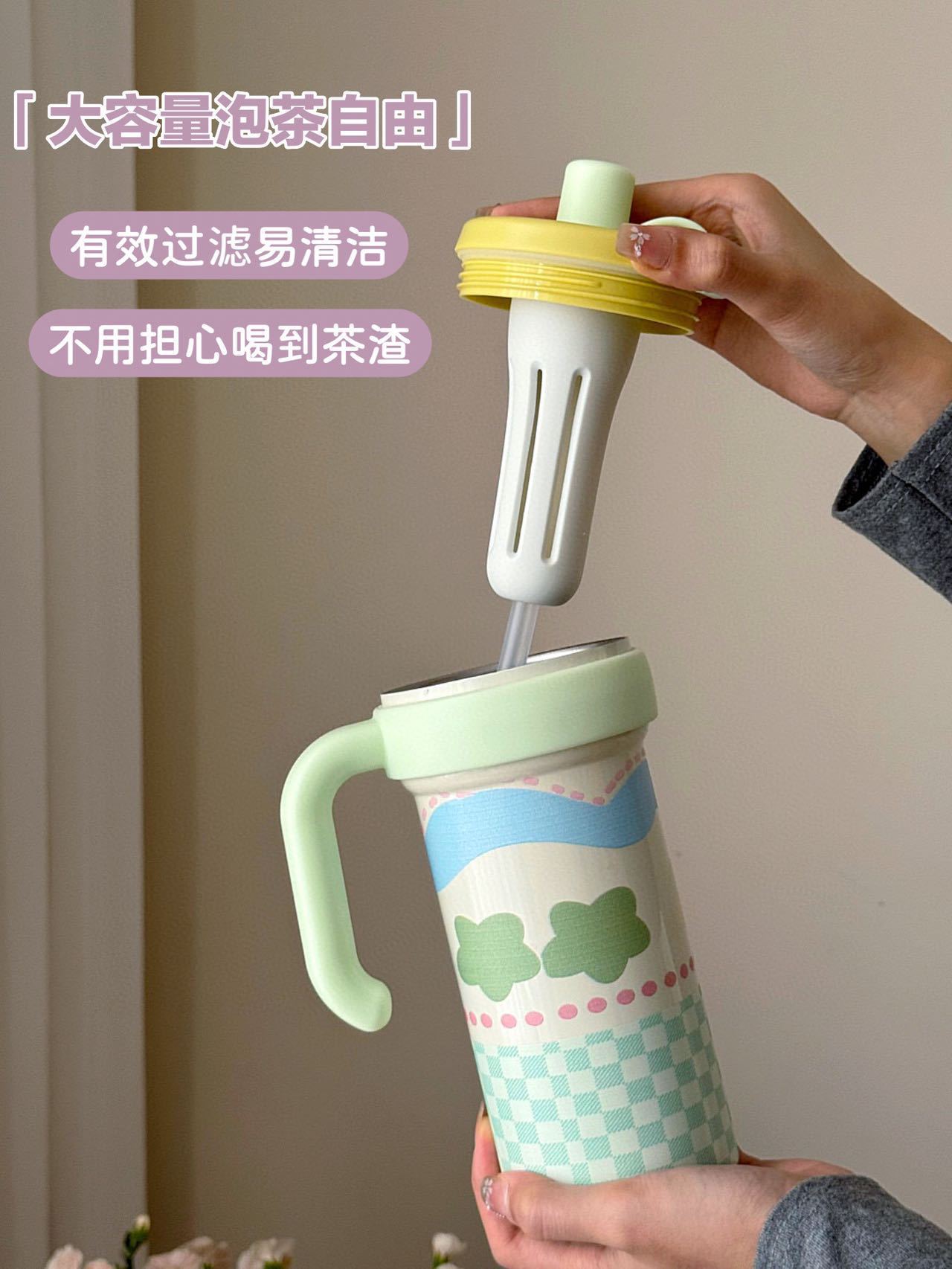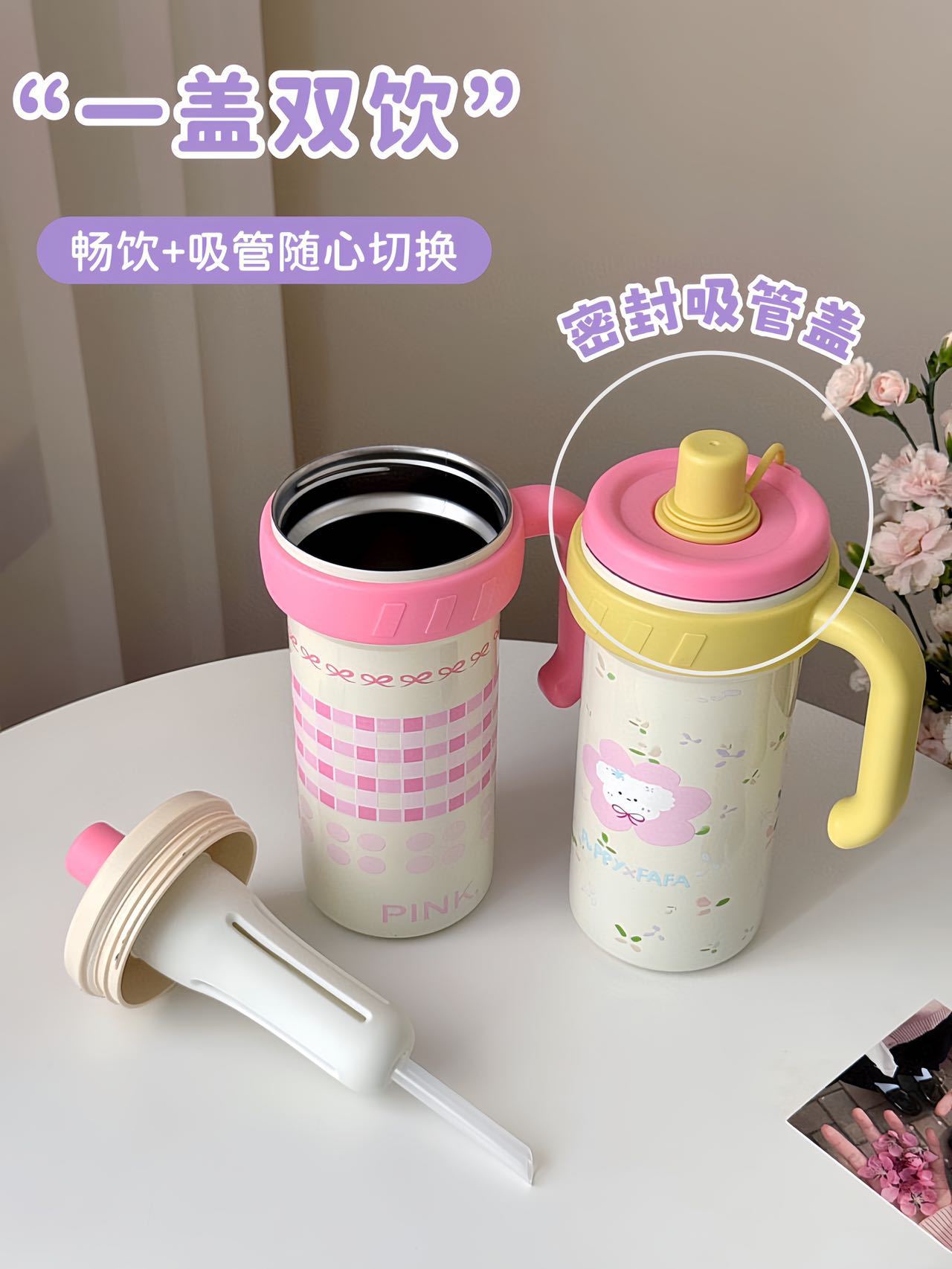 【内316材质❗️手柄方便握持】新款冰霸杯保温杯子摔不烂大容量带茶隔女生高颜值吸管学生上学用。jc