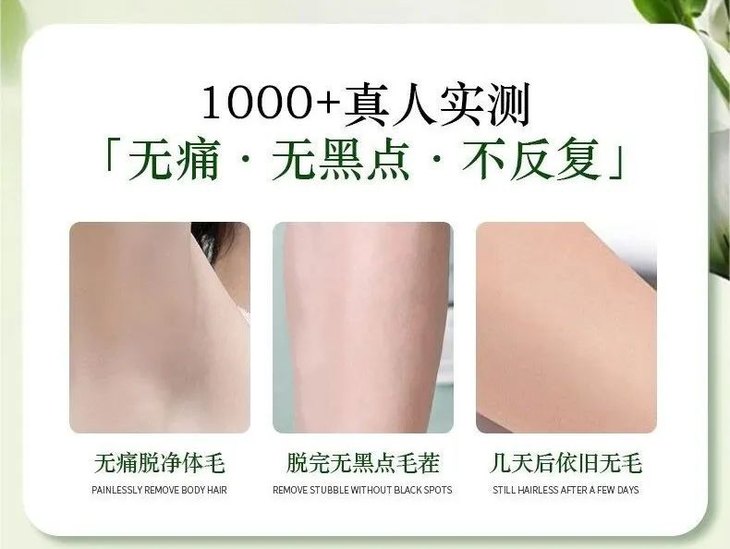 他家脱毛膏算国内 少数拥有K敏舒缓的脱毛产品 配方温和,脱得干净不留黑点毛渣 而且越用毛发会越细软。