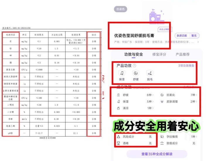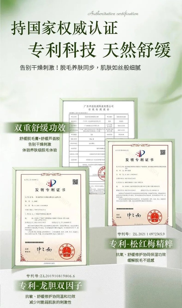 无酒精无风险成分 保湿+舒缓+脱毛,功效多,且安全~ 通过了国家quan威机构的质量检测。