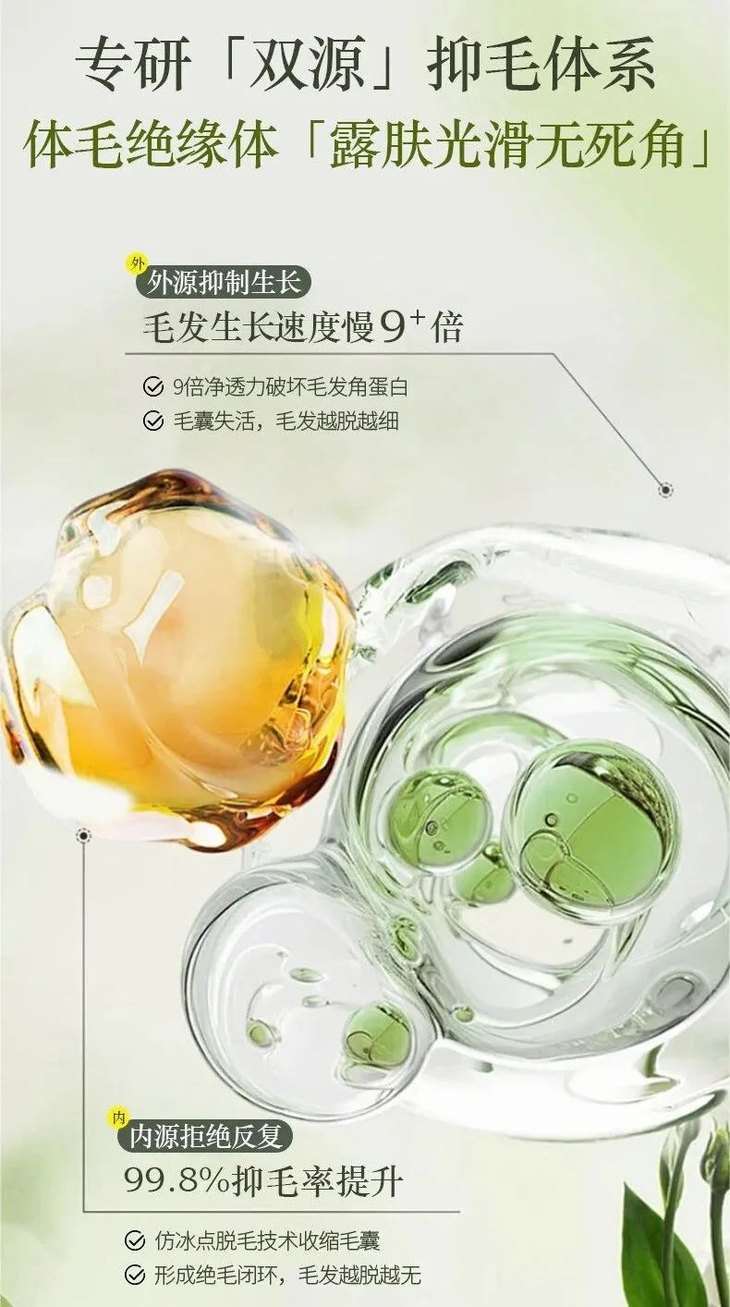 团队牛+用料猛,效果贼好 下的都是有用且好用的成分 实现【脱毛+养肤】,双专利养肤级脱毛 双管齐下抑制毛发生长同时还能滋润舒缓皮肤 预防毛囊红肿,体验感真是很多大牌都很难做到的