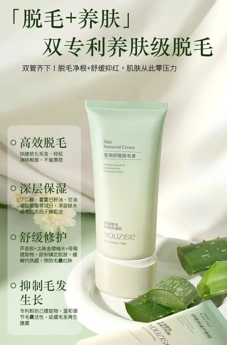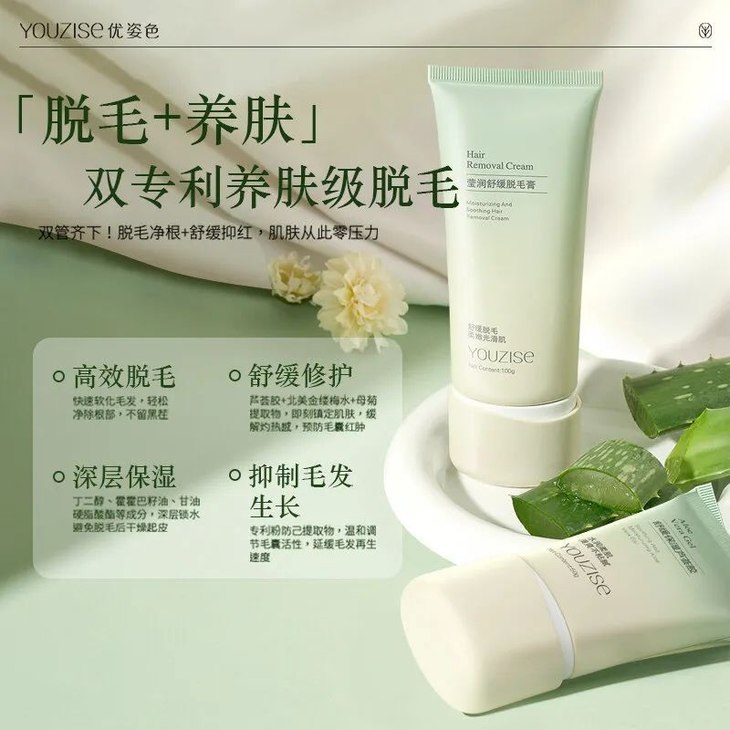 在试了十几款脱毛膏后,有一款脱毛膏深得 整个办公室男女同胞的心,直接掳获芳心那种! 去毛干净还不留黑点,超温和、敏感肌也可以用 它就是—— YOUZISE优姿色--植萃脱毛膏润肤系列