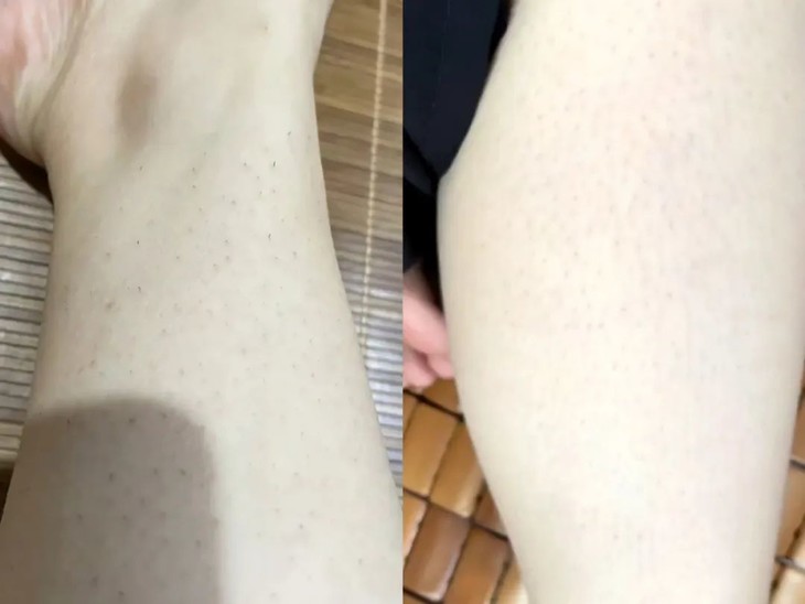 别的不说,先来看看效果。 这是在办公室随便找的男同事 在半边试用完后👇不管多粗硬的腿毛 都被一擦而净一整个「光洁如新」 好像肤色都亮了一个度
