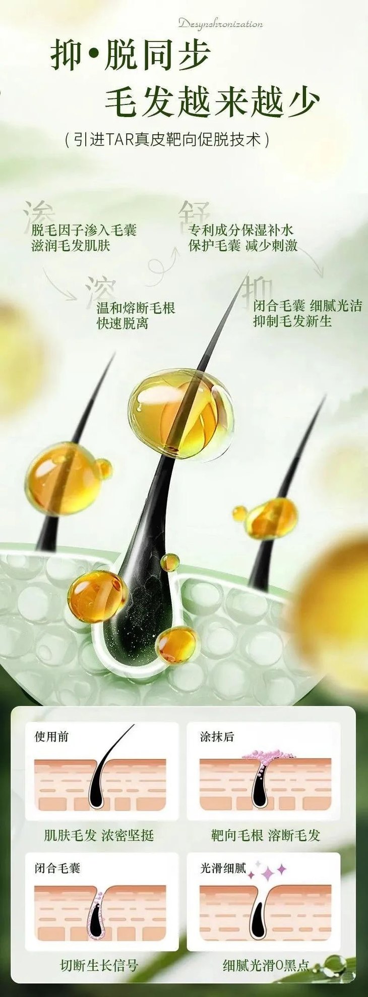 ✨猕猴桃女孩成功上岸!【🇨🇳国货精品】YOUZISE优姿色植萃脱毛润肤系列 「脱毛+养肤」真有你的❗️不留黑点,🌈粗硬毛毛都没了