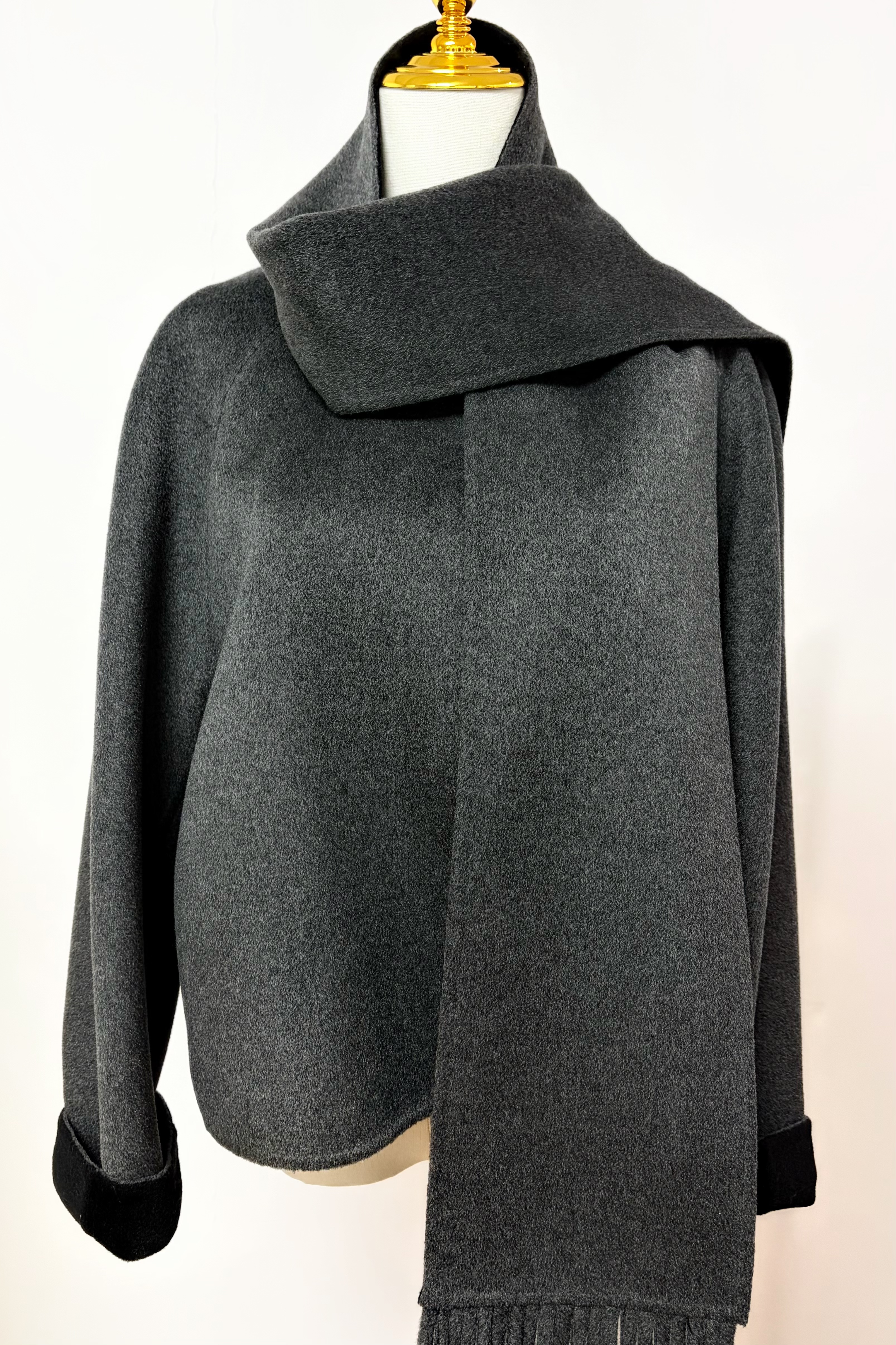 【直播大场福利】编号119 新中式带围巾 短款大衣 小个子友好 100%纯山羊绒 不退不换