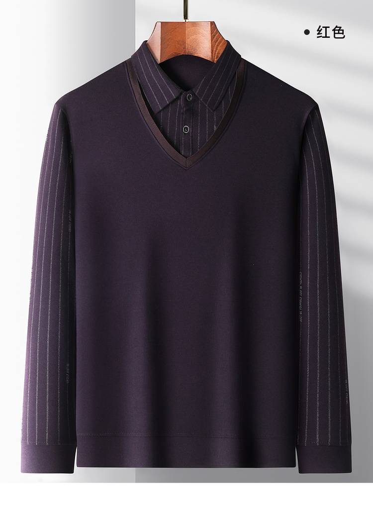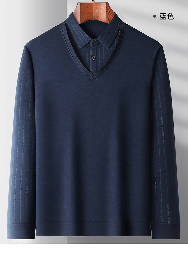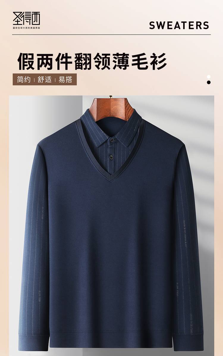 圣得西假两件翻领轻暖毛衫男2025秋季新款中年爸爸商务针织衫毛衣