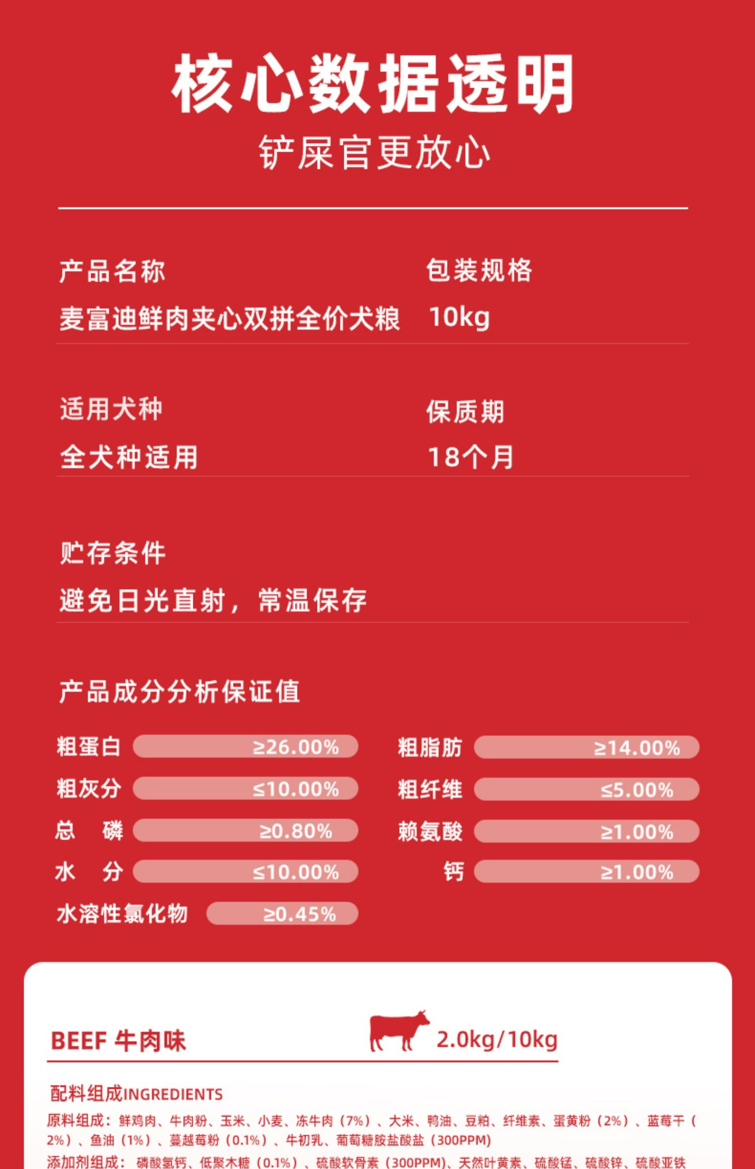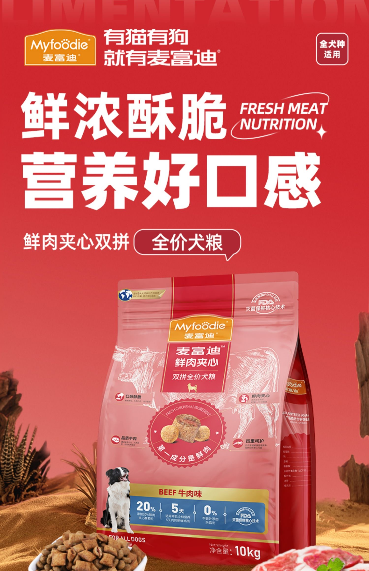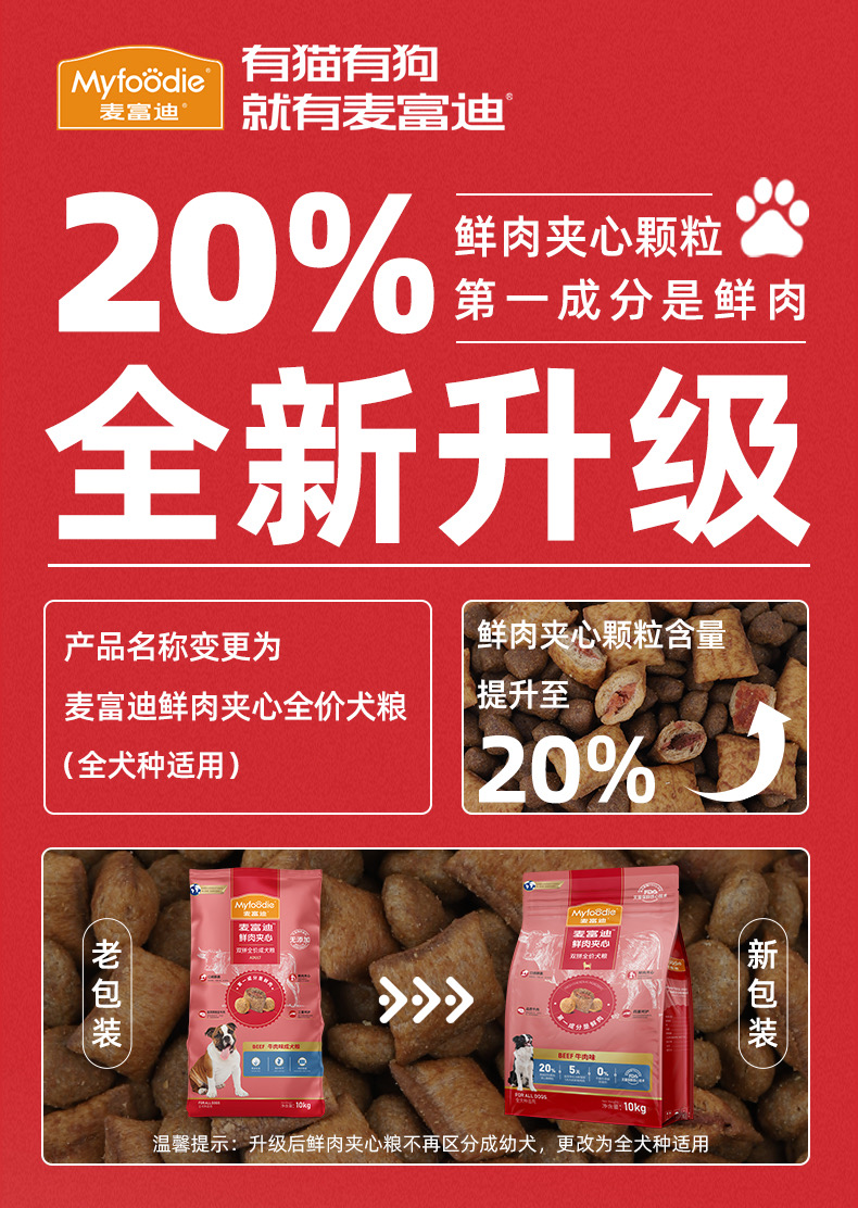 麦富迪狗粮通用型2kg牛肉夹心宠物成幼犬泰迪金毛贵宾专用
