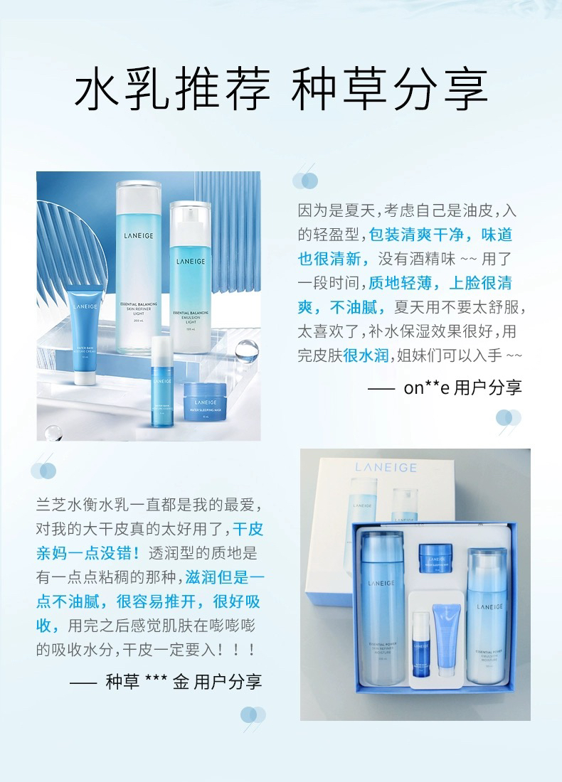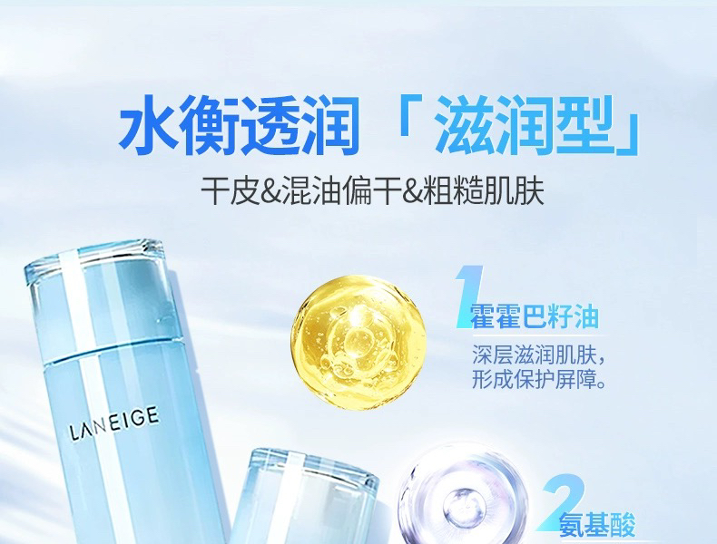 【孕妇可用 】韩国 LΛNEIGE兰芝 水衡透润保湿水乳2件套 套盒 滋润版/清爽版(水200ml+25ml+乳120ml+25ml+睡眠面膜15ml)