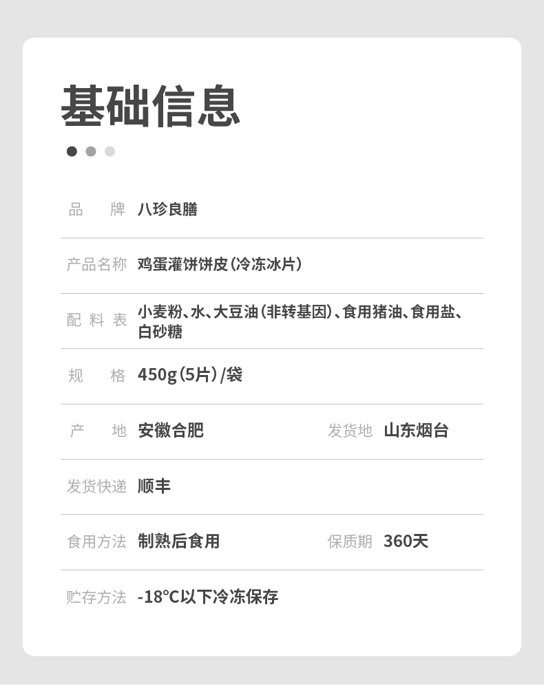 八珍良膳鸡蛋灌饼饼皮 5张/袋 450g*2