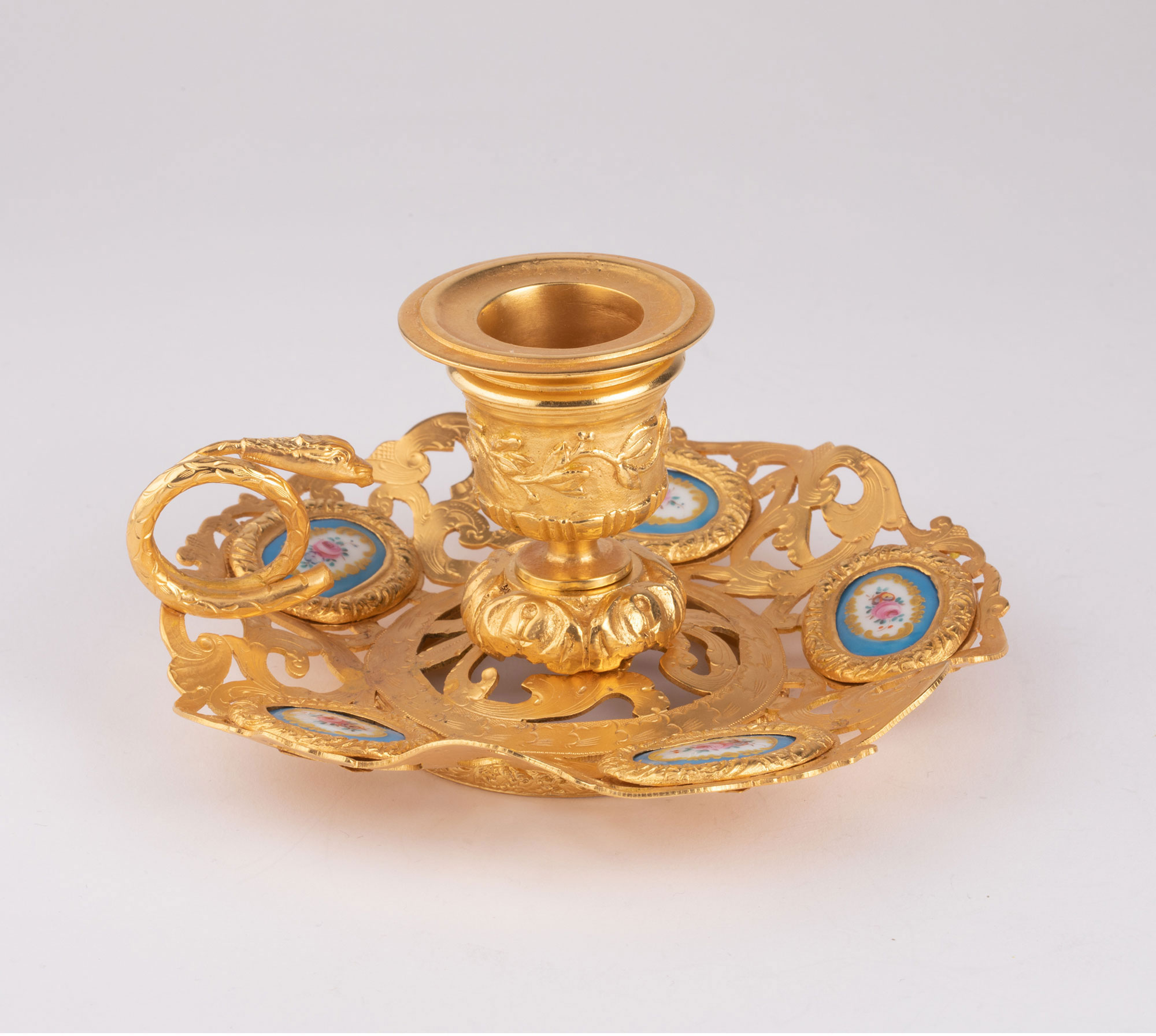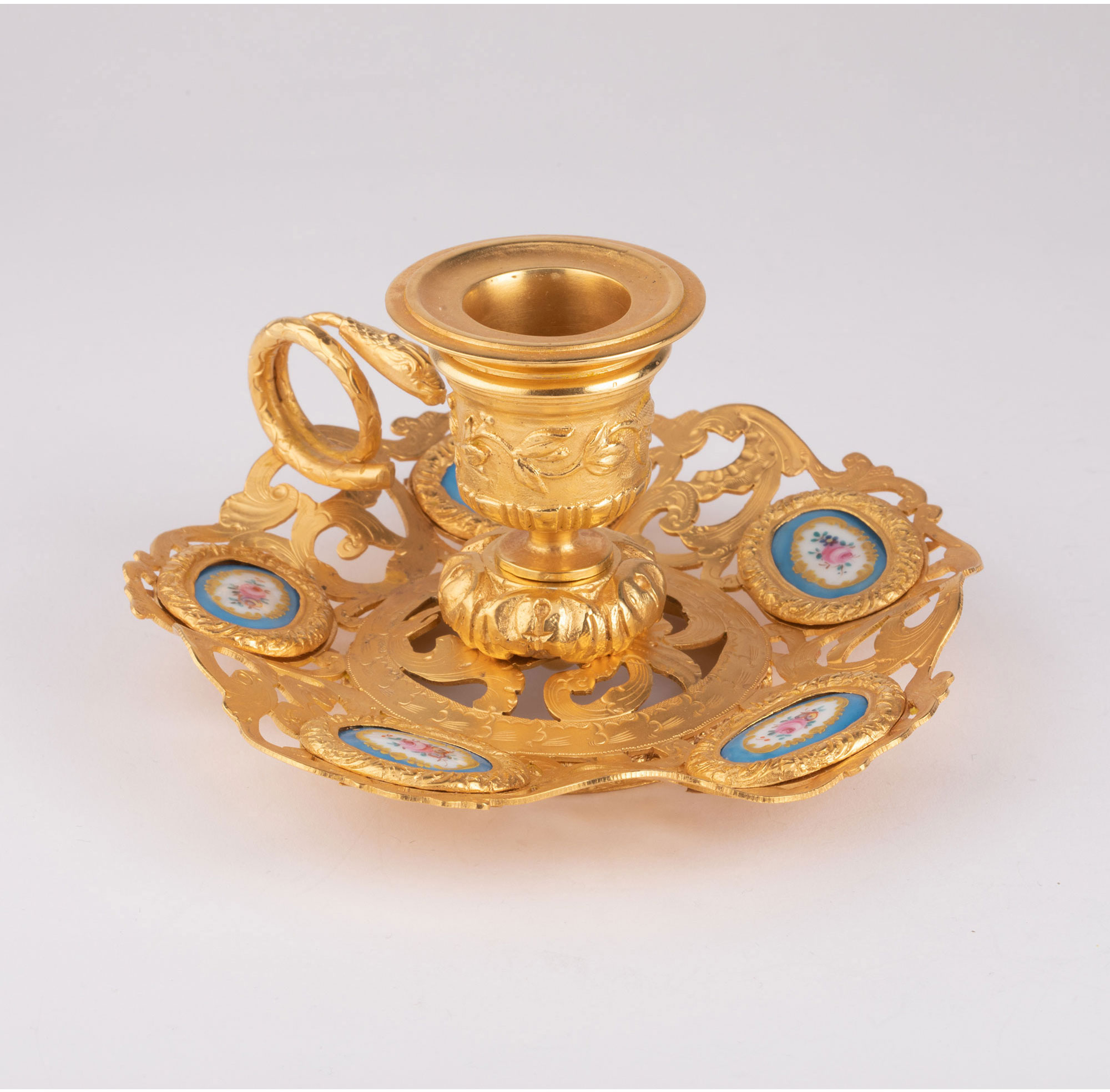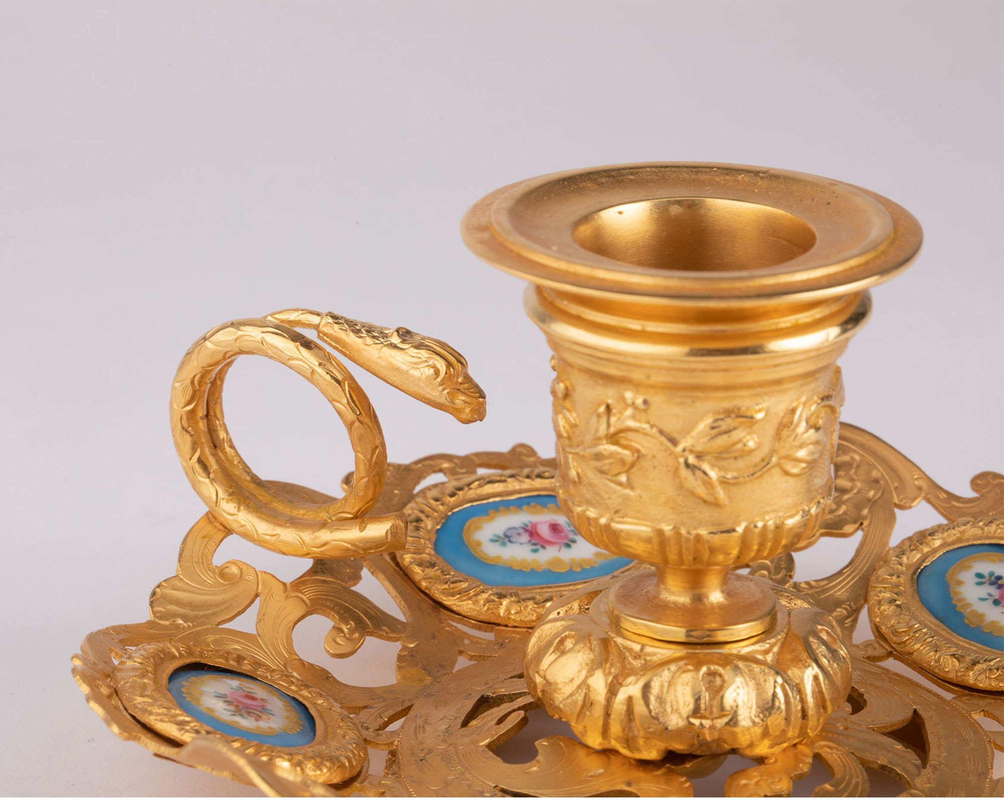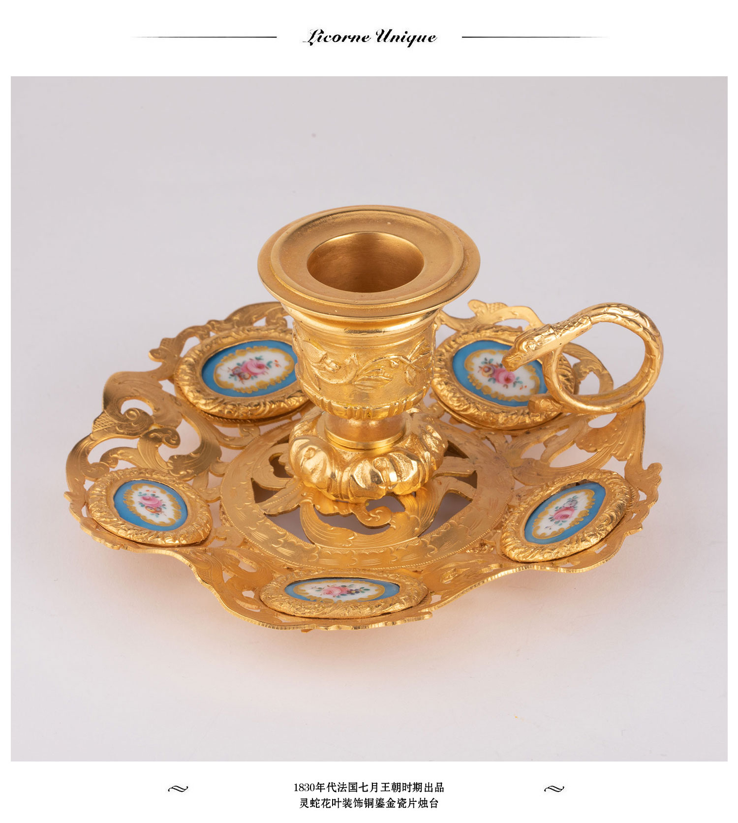 独角鹿西洋古董欧式烛台摆件铜鎏金雕饰瓷片装饰灵蛇花叶法式
