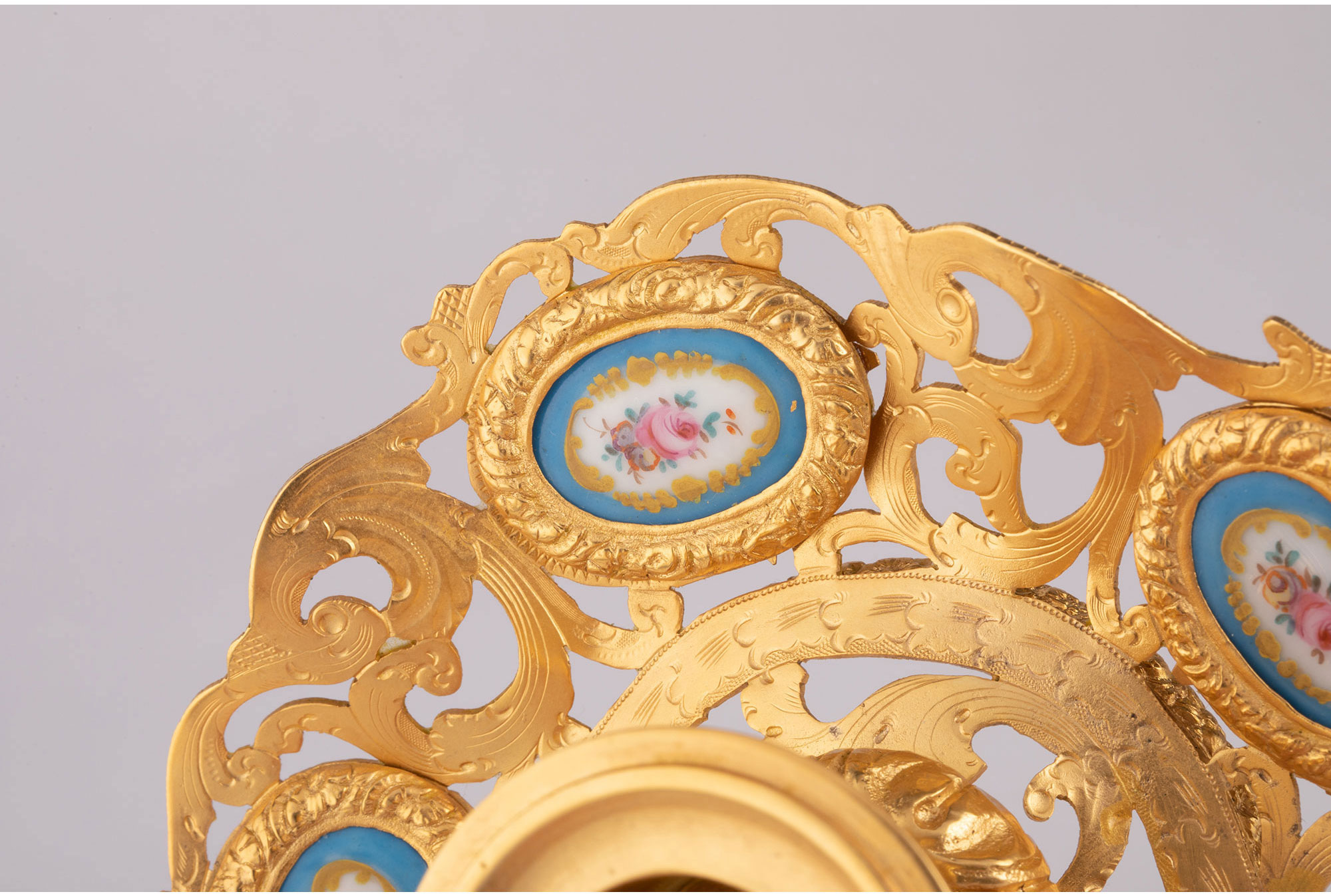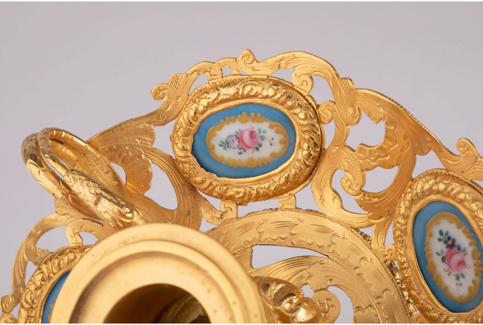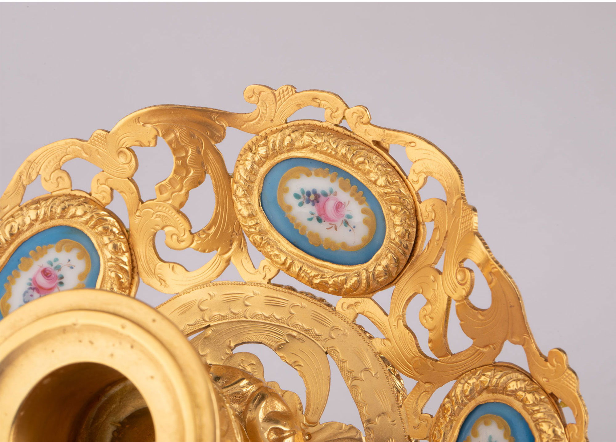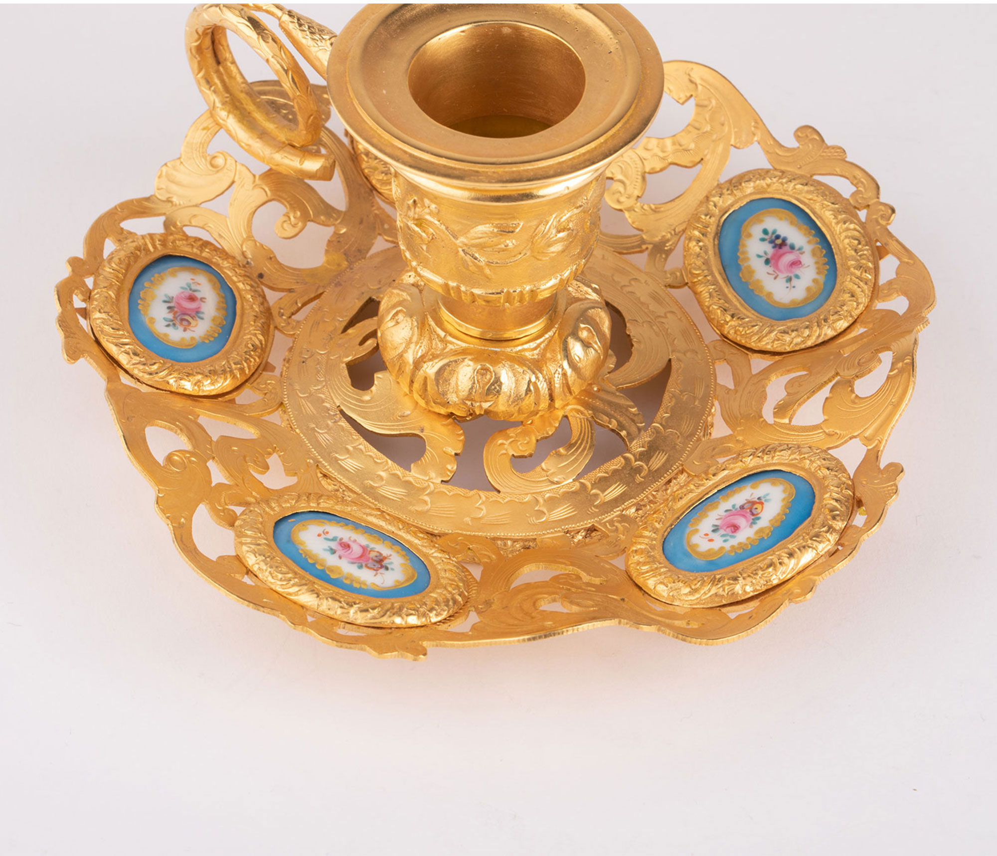 独角鹿西洋古董欧式烛台摆件铜鎏金雕饰瓷片装饰灵蛇花叶法式