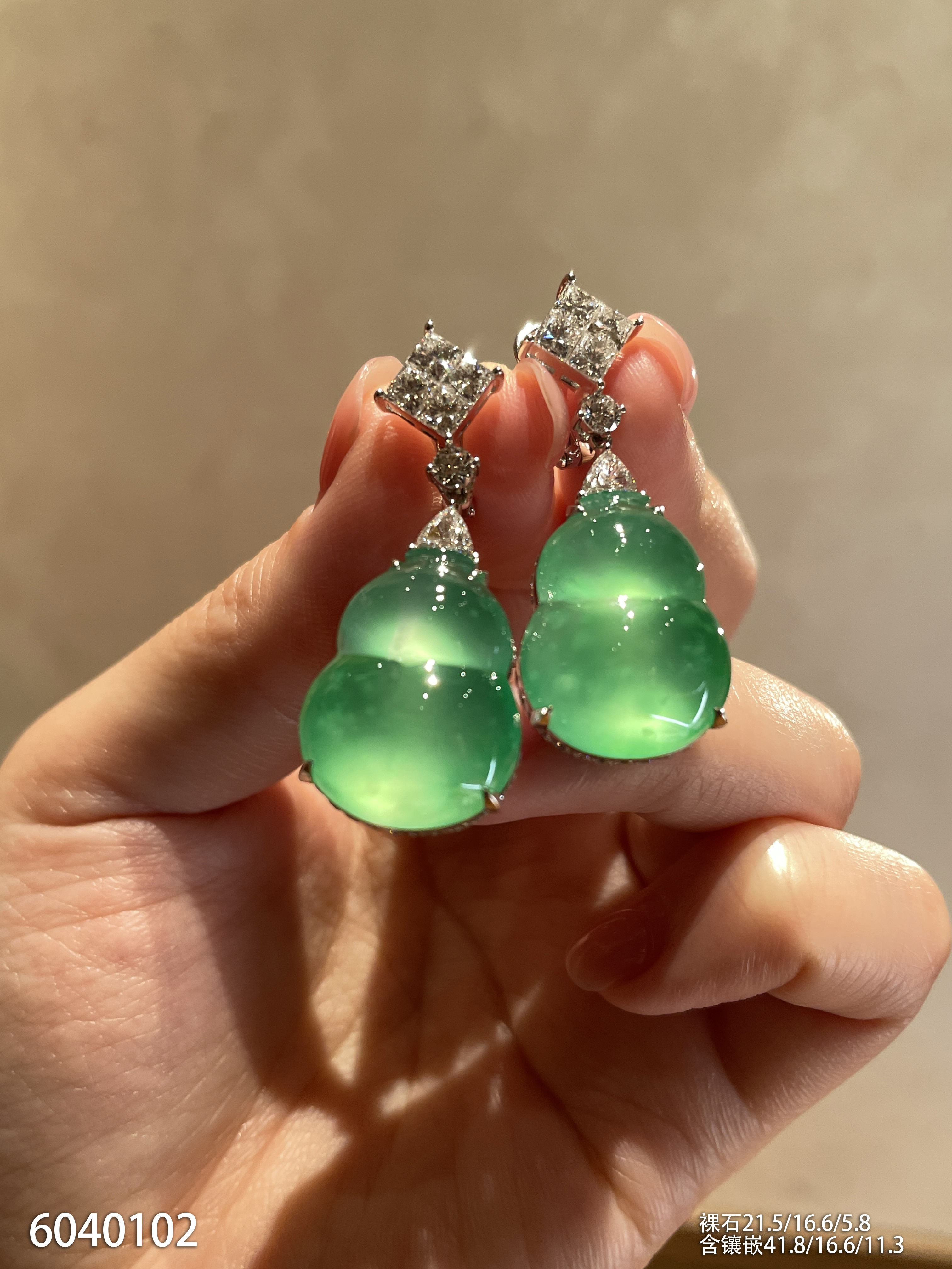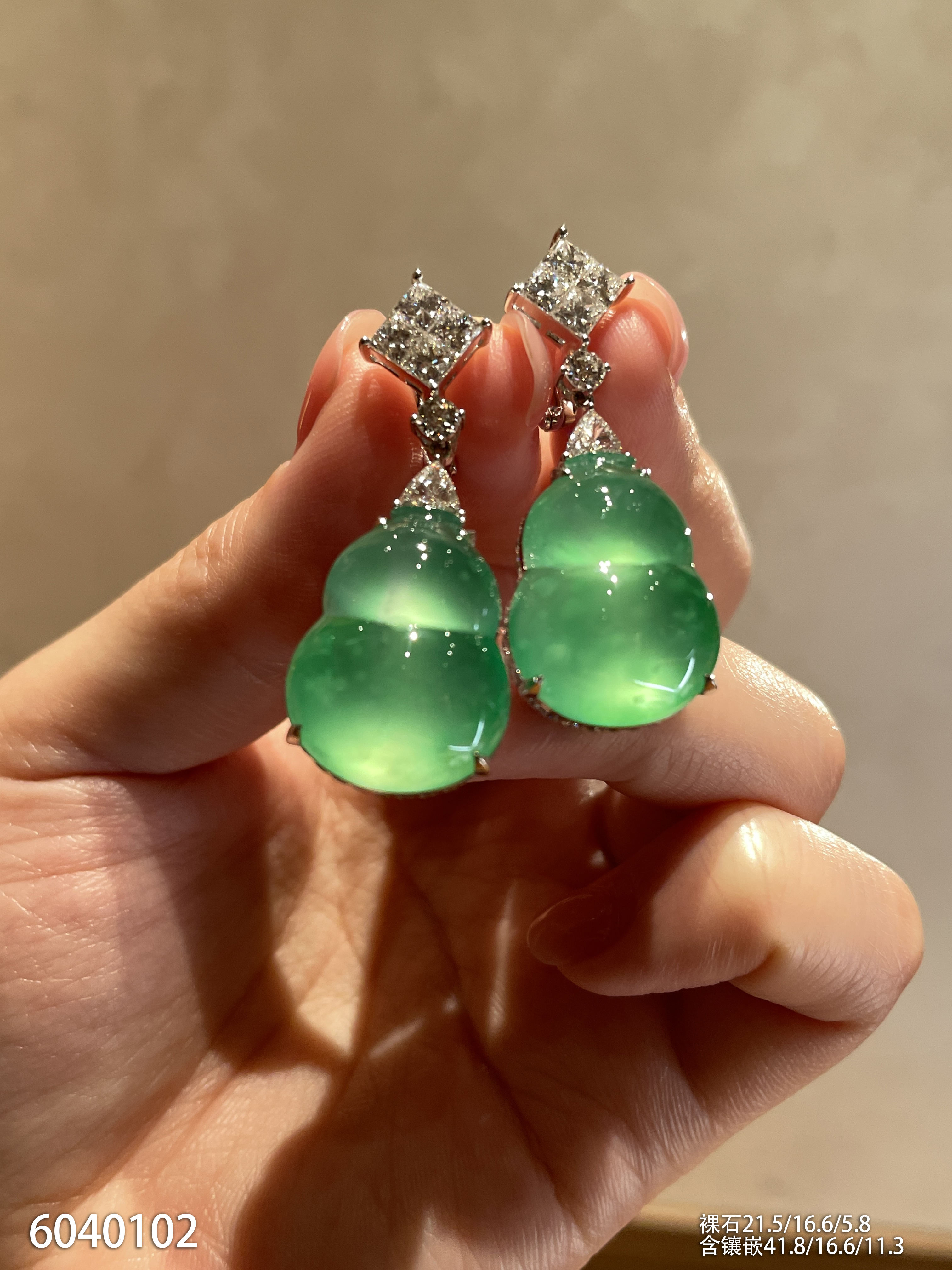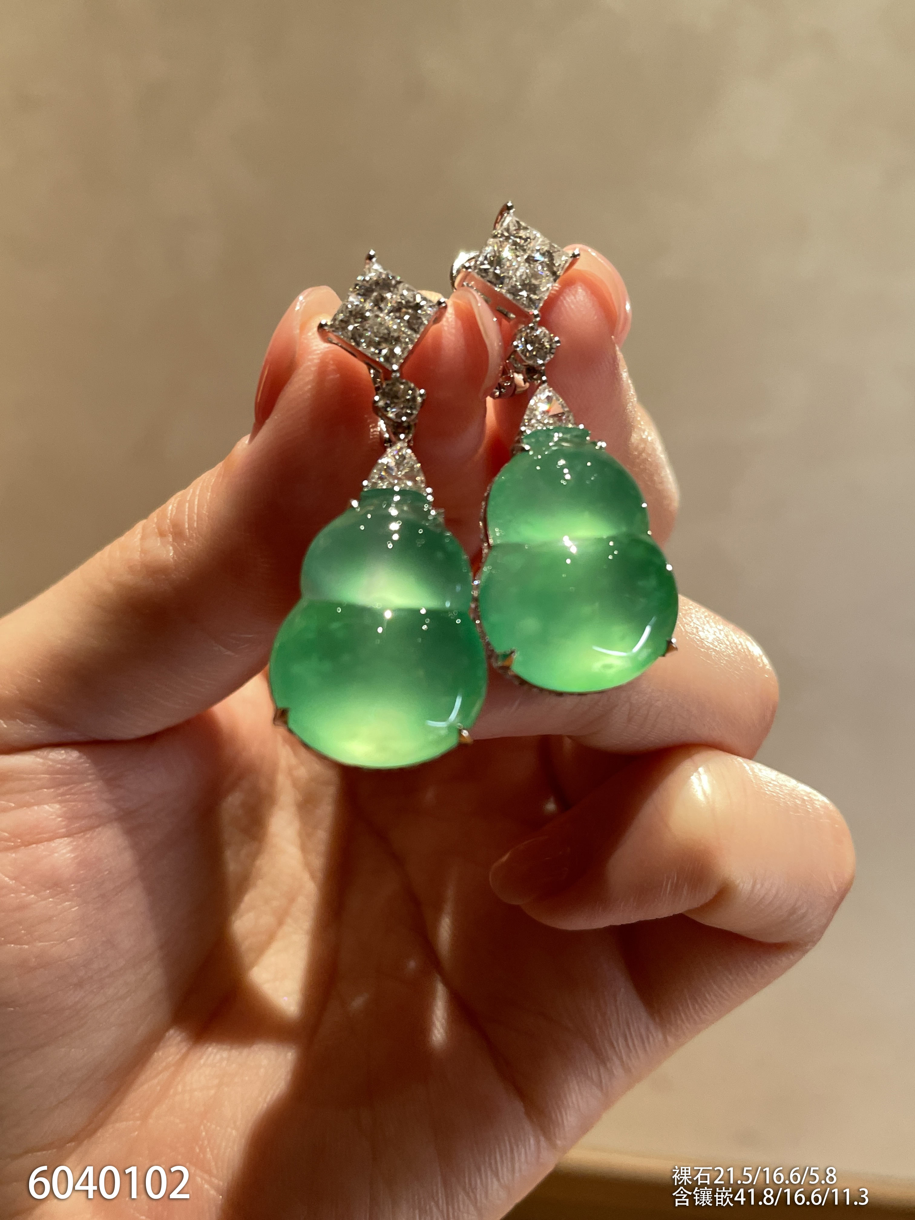 玻璃种阳绿葫芦耳坠【6040102】具体价格微信咨询