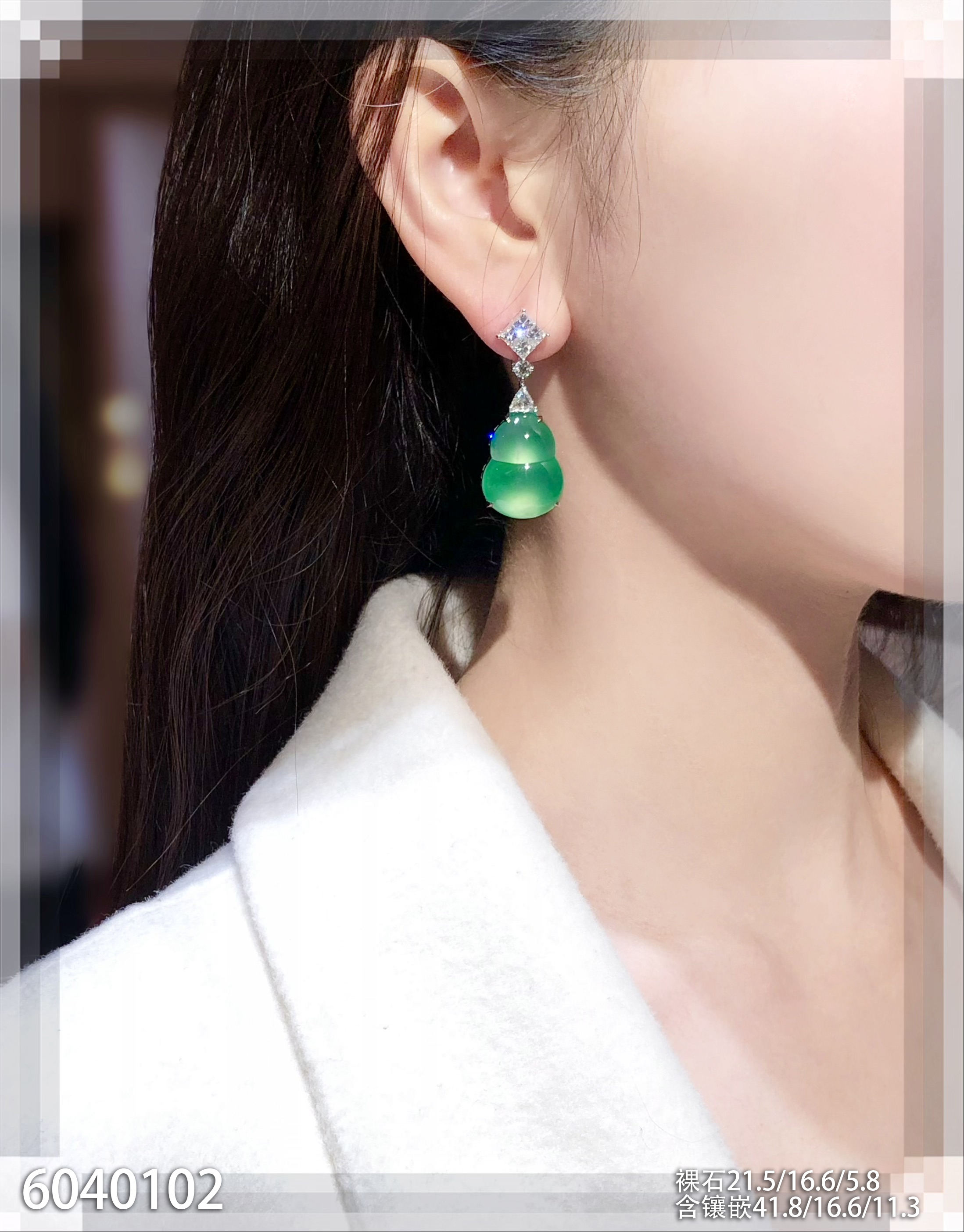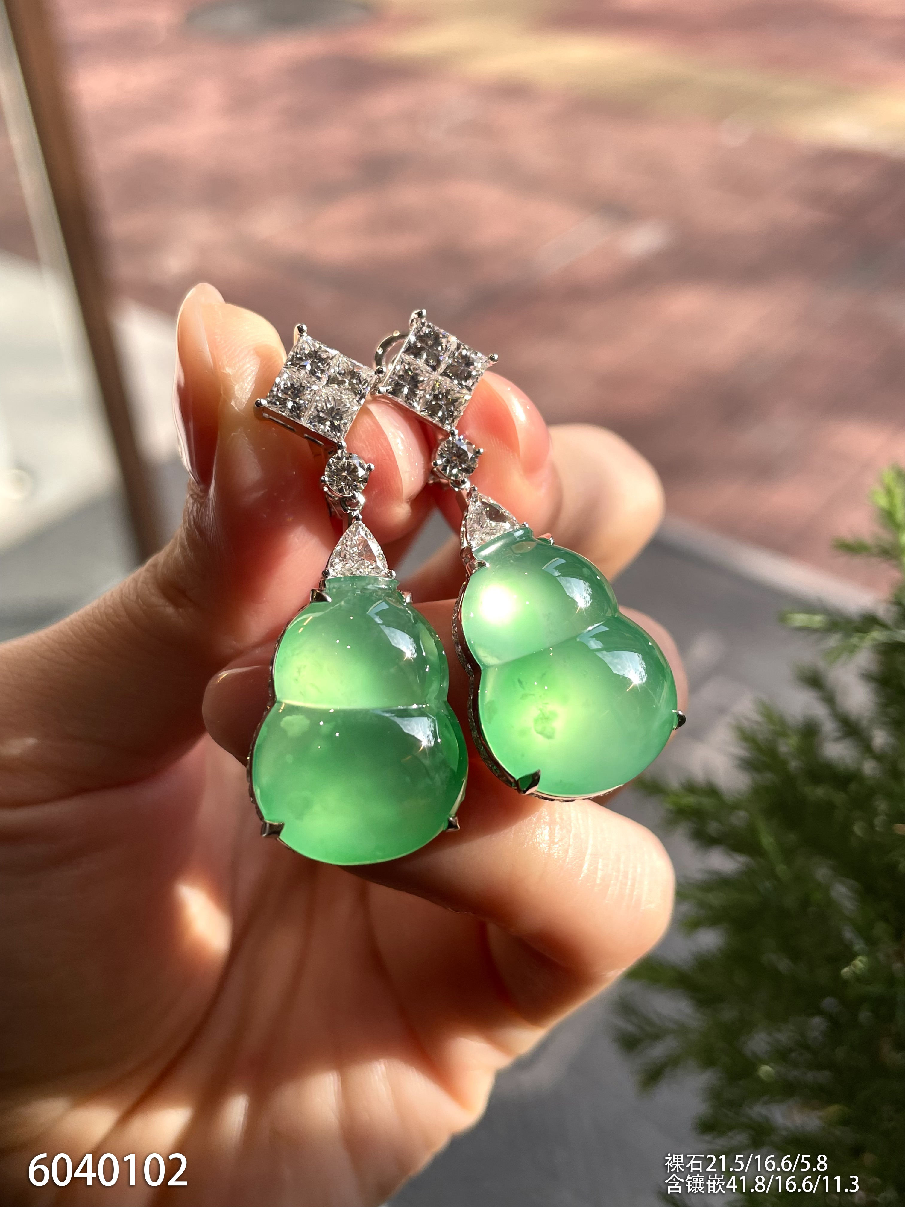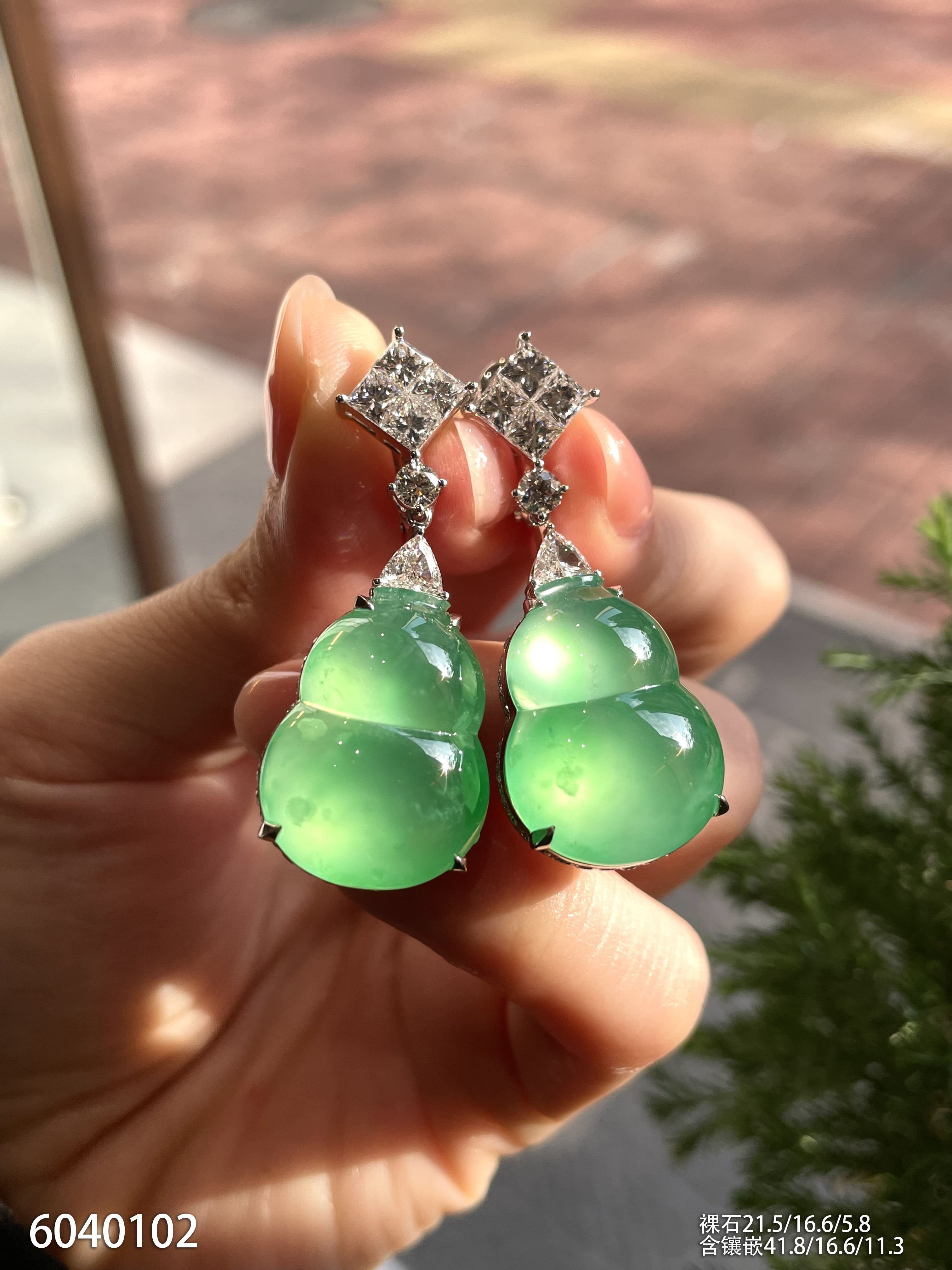 玻璃种阳绿葫芦耳坠【6040102】具体价格微信咨询