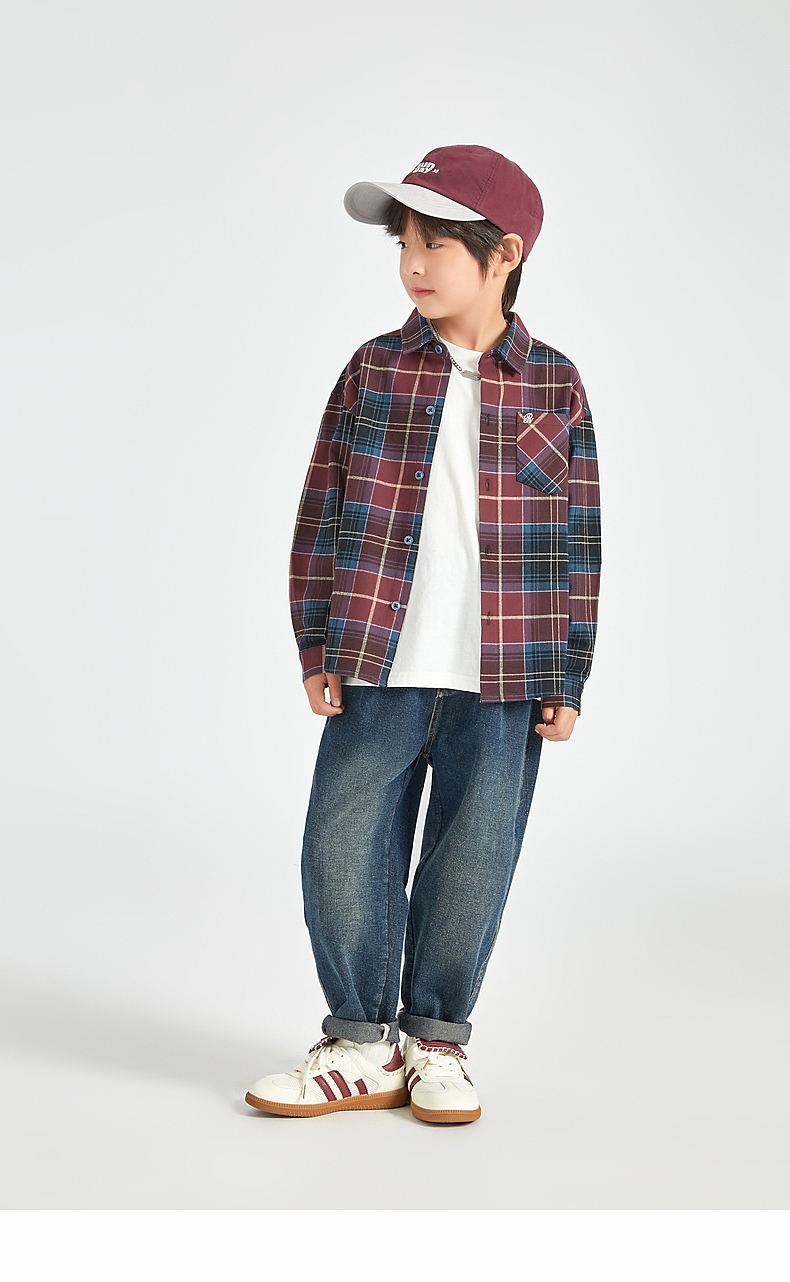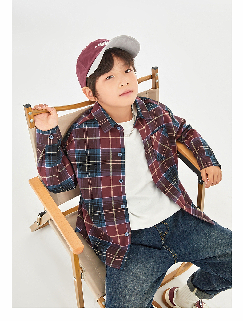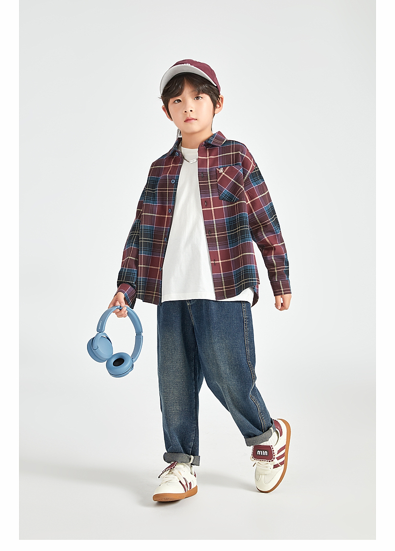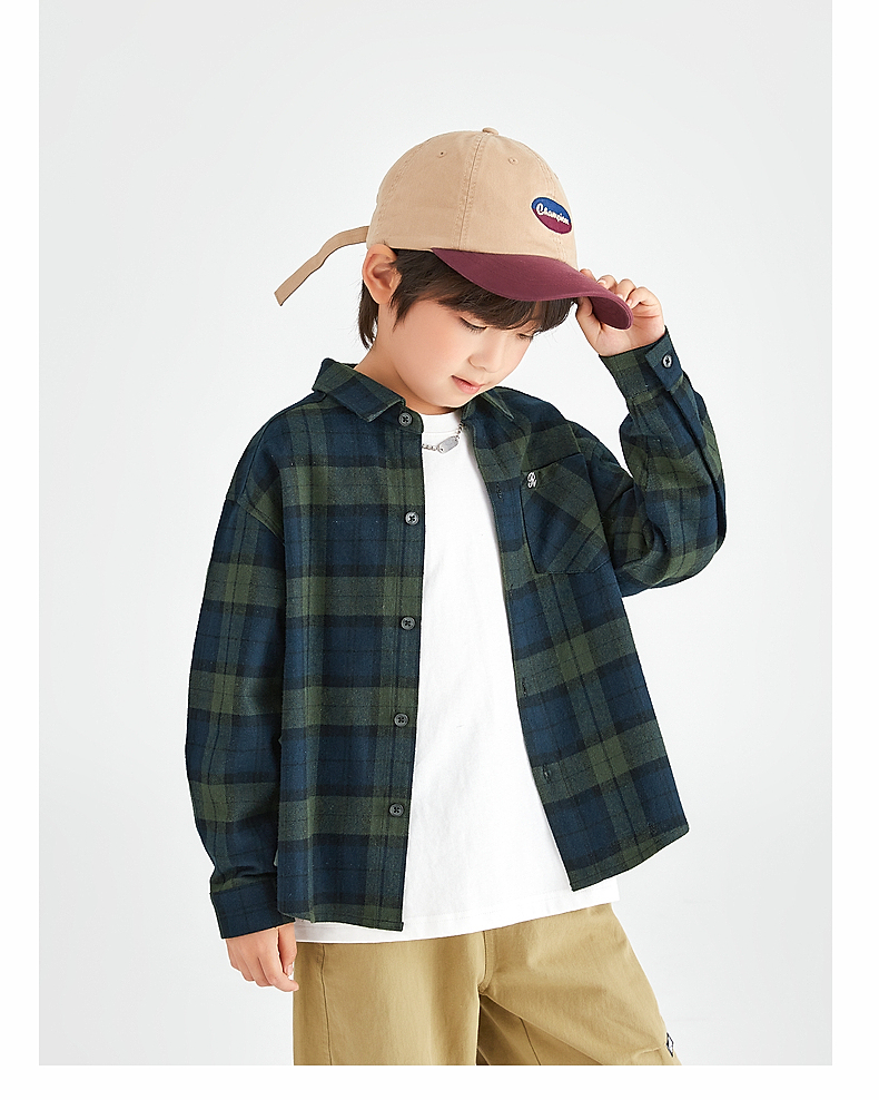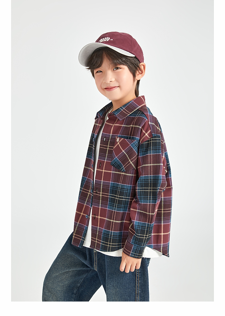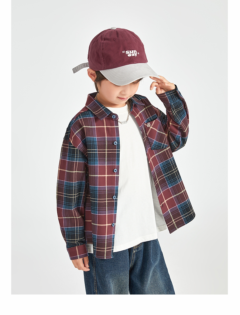 【团购价69.9】多多家男童格子衬衫2024新款春秋季儿童复古纯棉长袖秋装外套衬衣9689