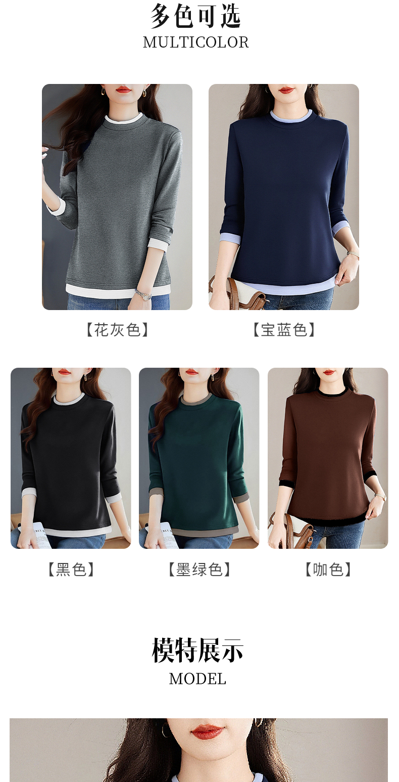 德绒半高领打底衫女士2026新款大码长袖t恤加厚保暖上衣可外穿秋