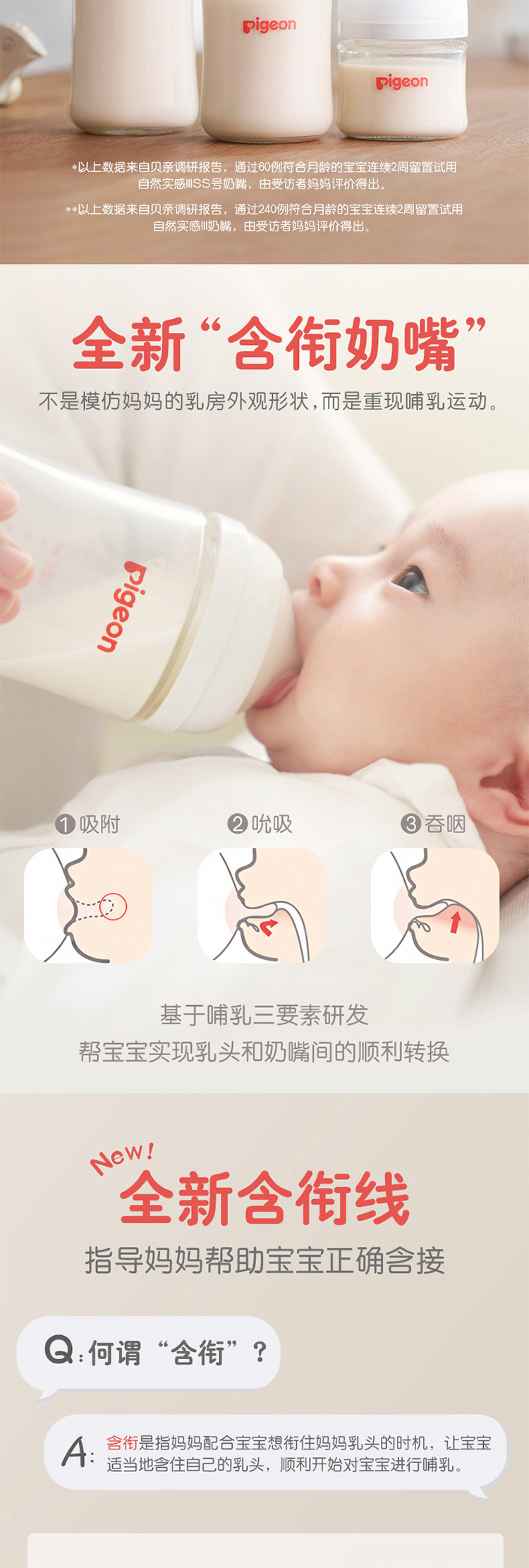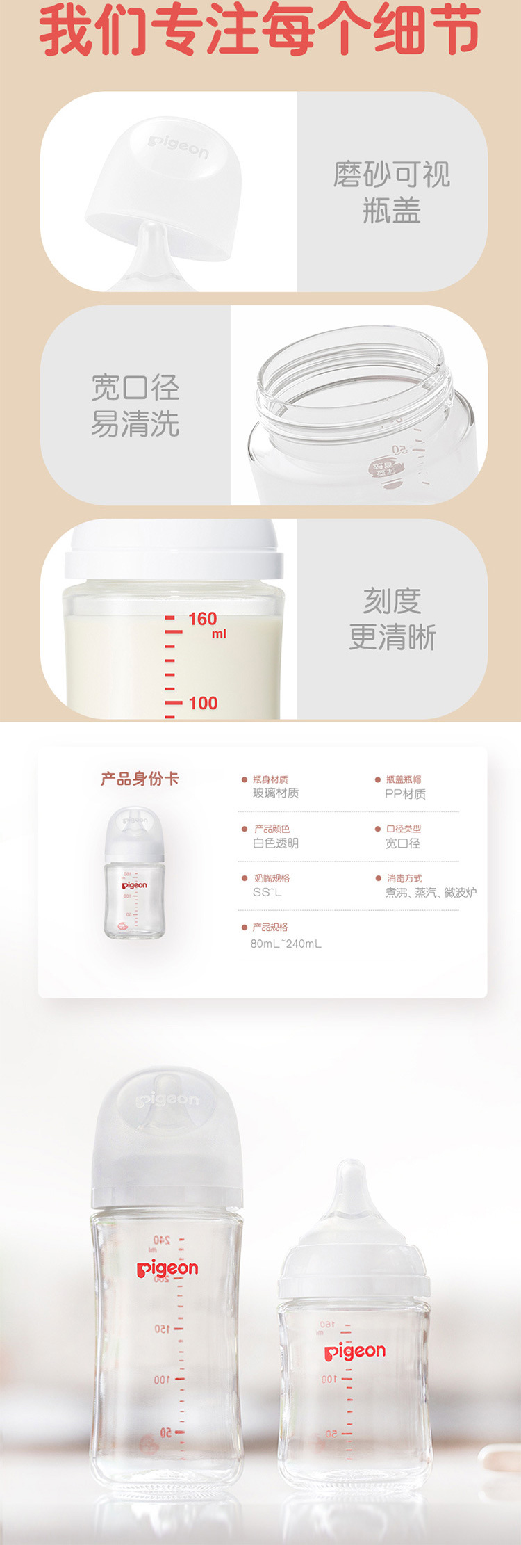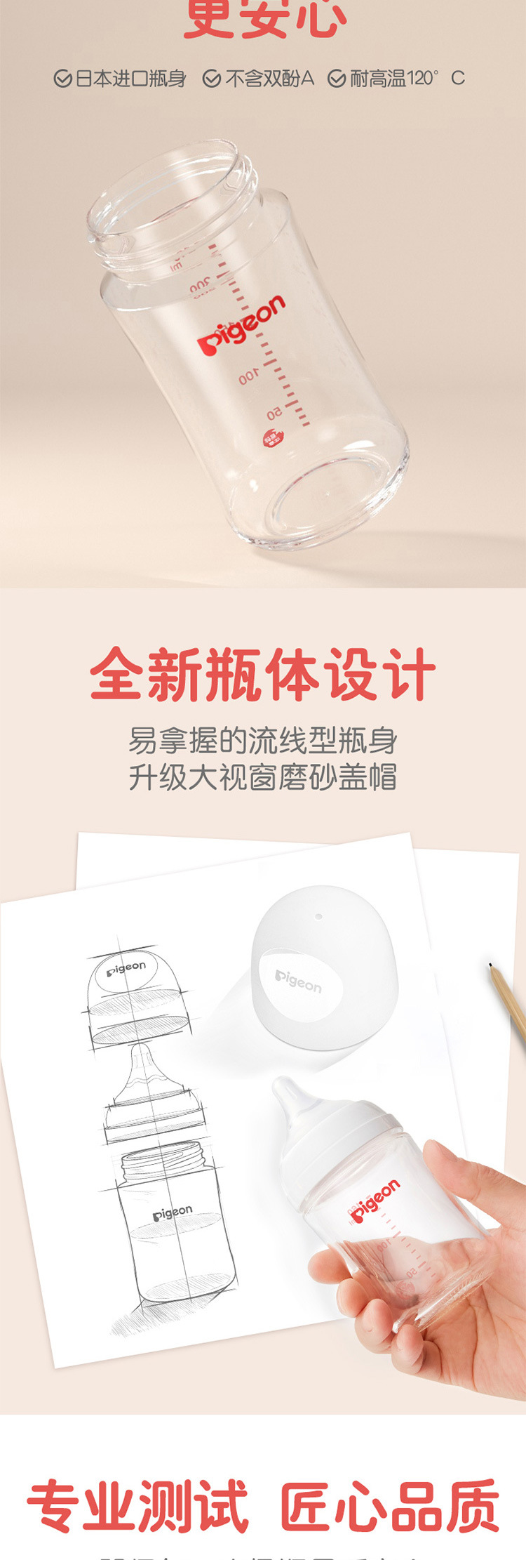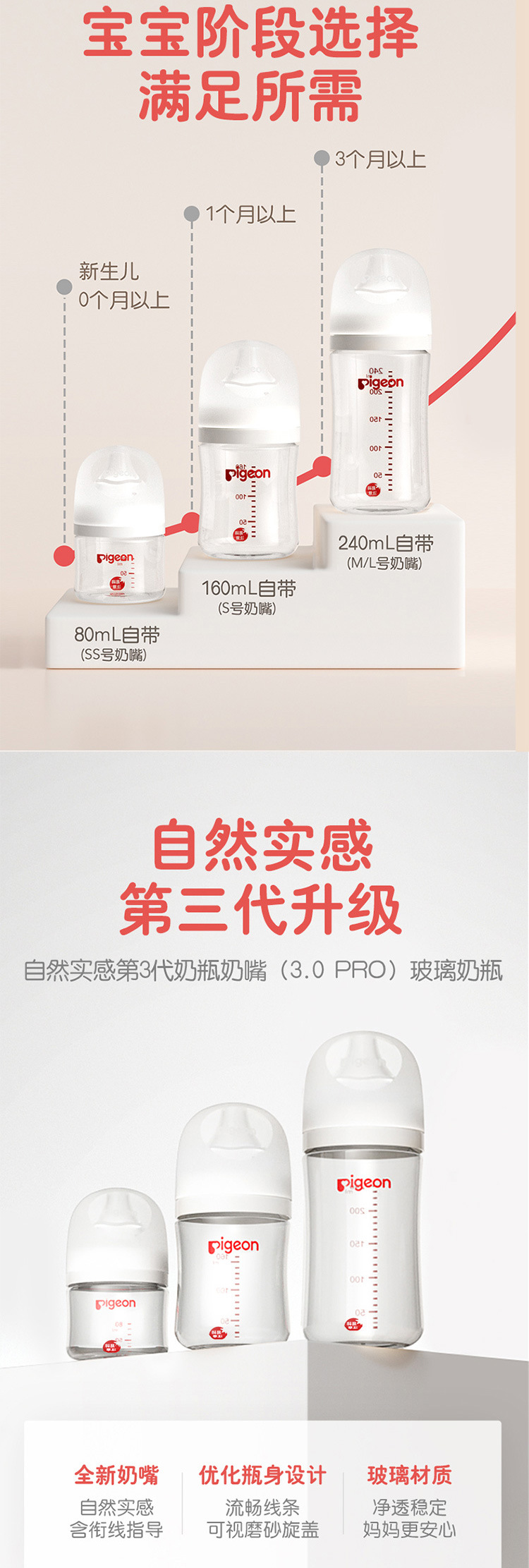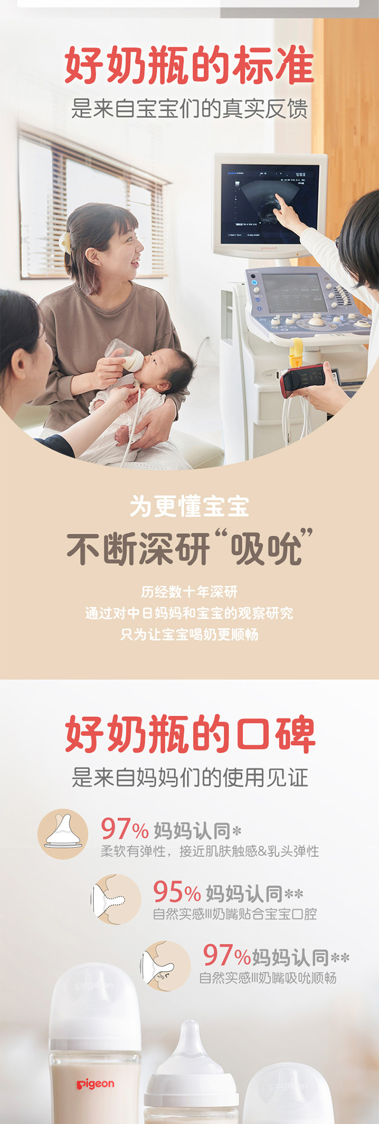 【官方正品支持查验】【PPSU材质】Pigeon/贝亲 奶瓶 PPSU 自然实感第3代奶瓶 宽口径 婴儿奶瓶