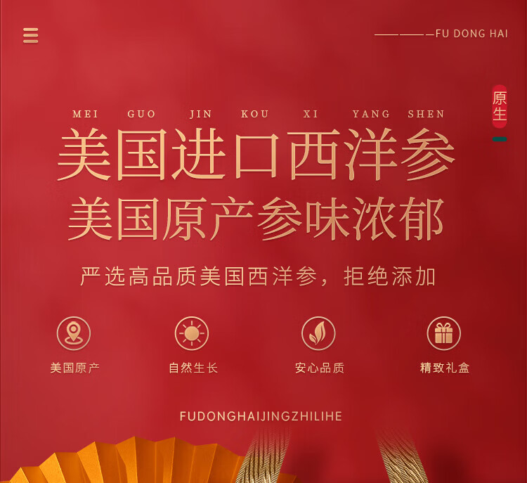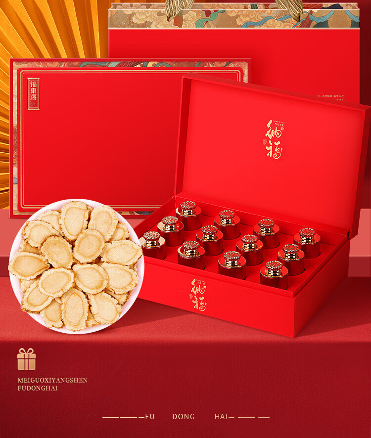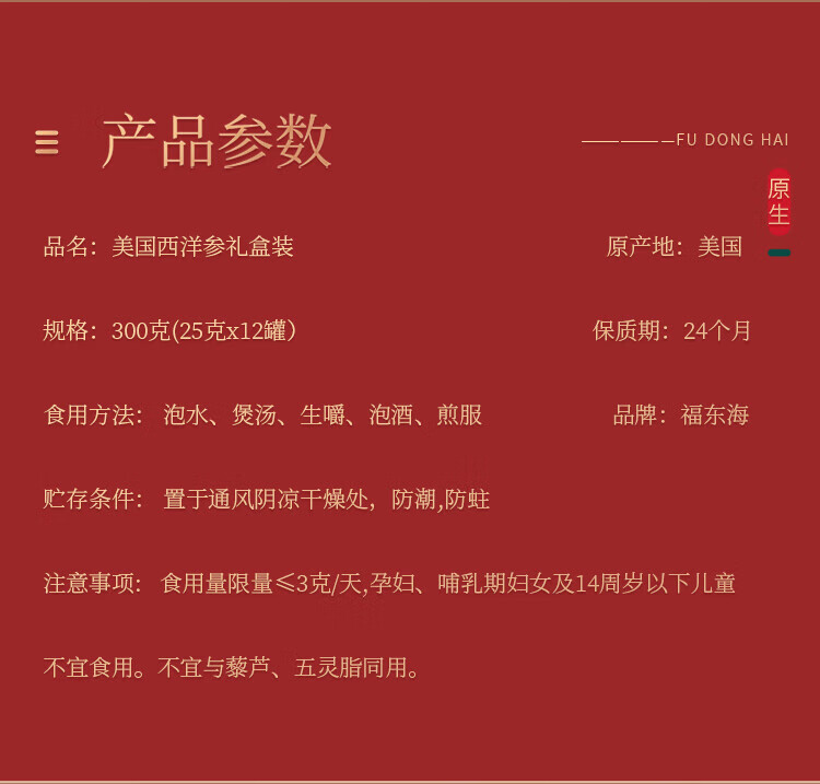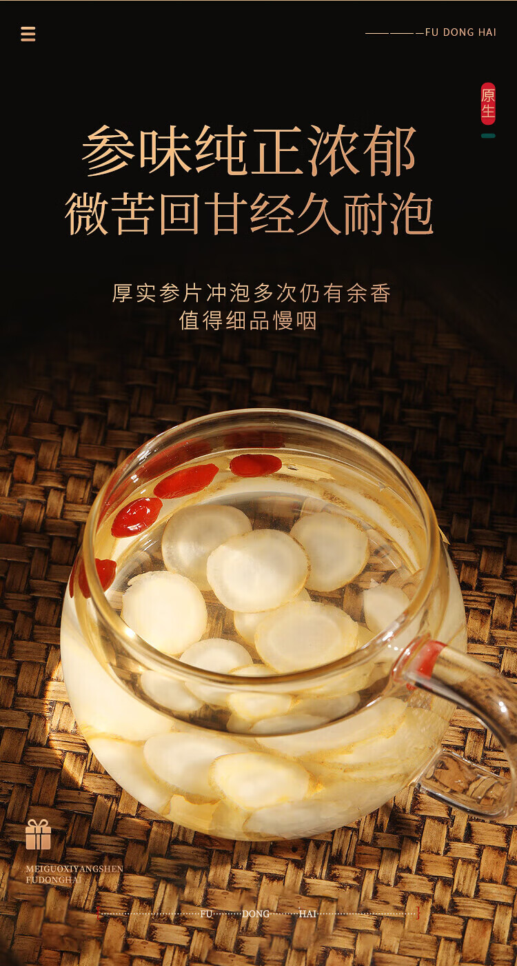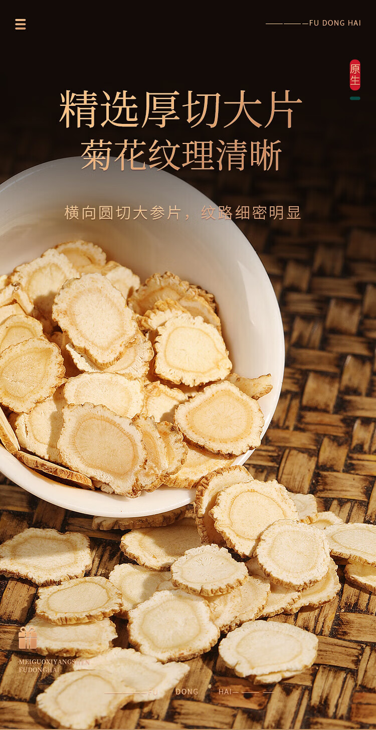 【分仓直发包邮】福东海西洋参300克/盒(25克x12罐)1.2-1.4厚片(大)
