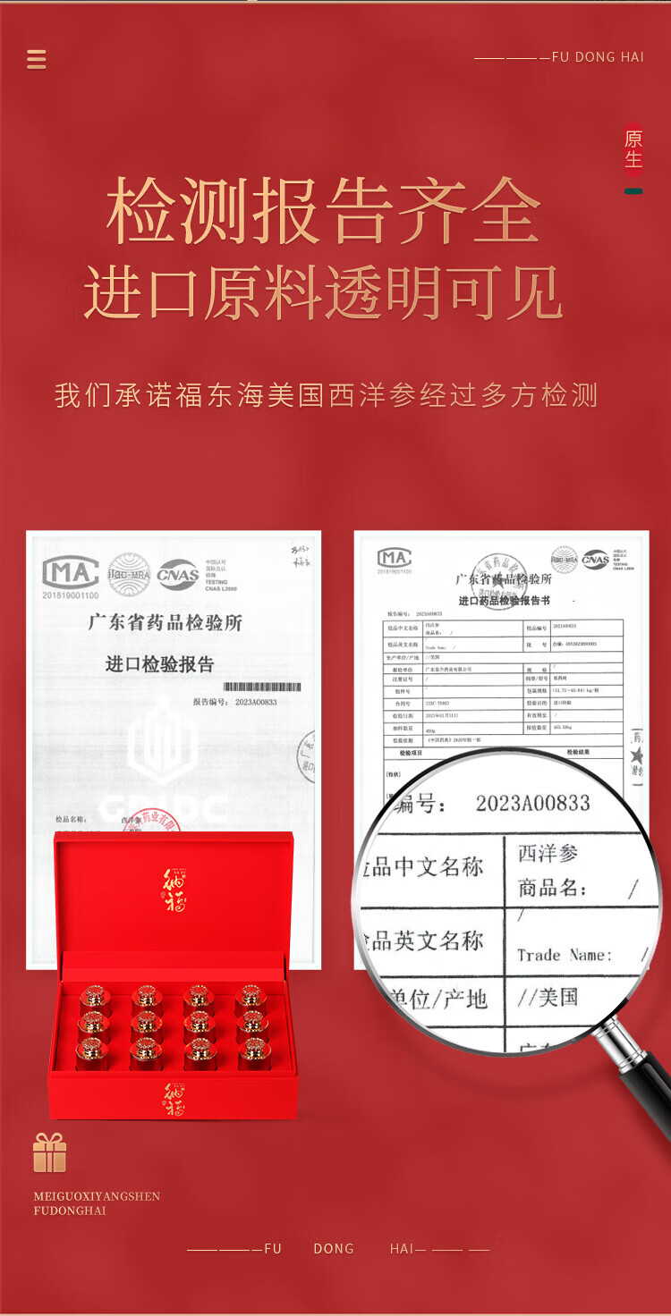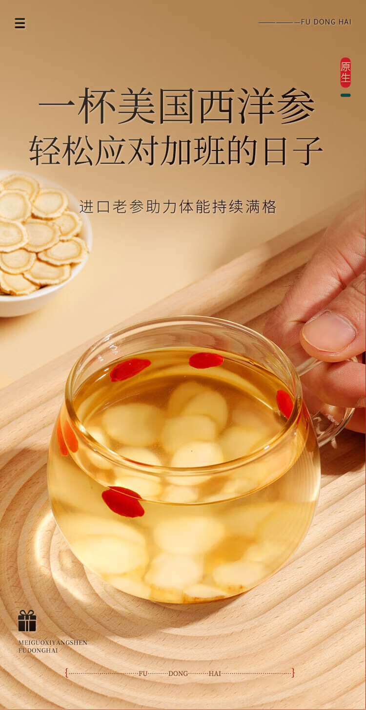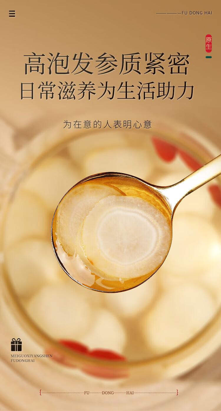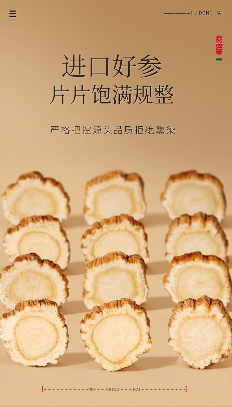 【分仓直发包邮】福东海西洋参300克/盒(25克x12罐)1.2-1.4厚片(大)