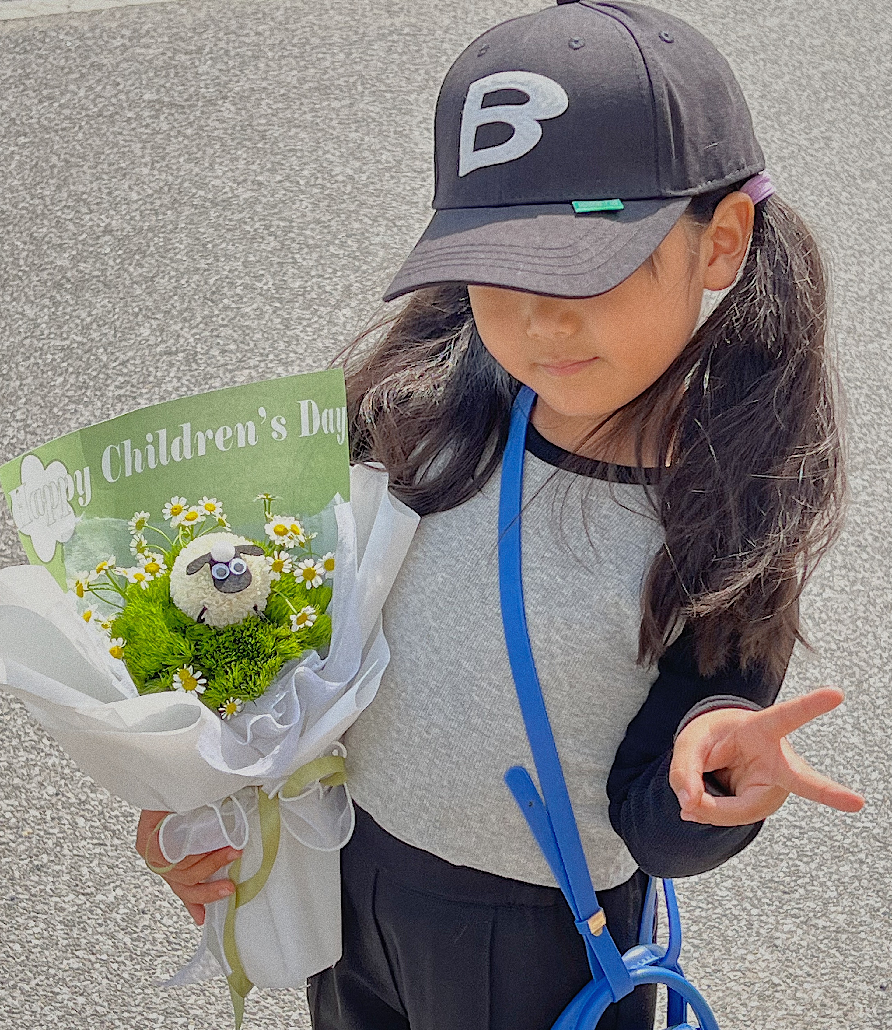抱着萌萌的小花束