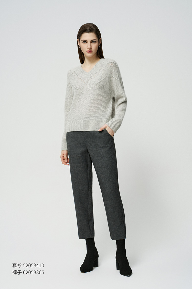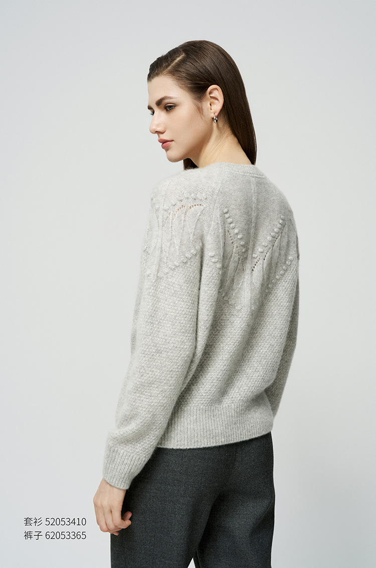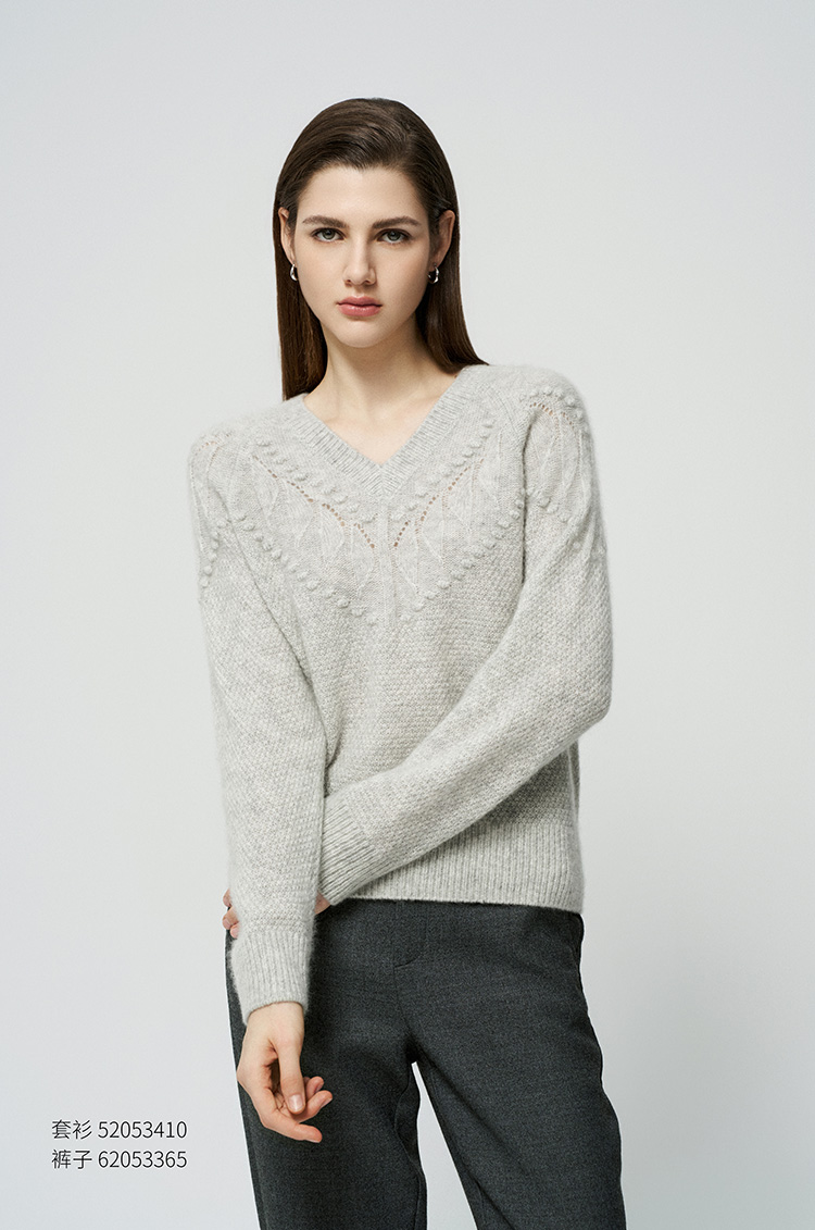 【羊绒+桑蚕丝镂空套衫】羊绒世家秋冬新品女士V领针织内搭保暖套衫